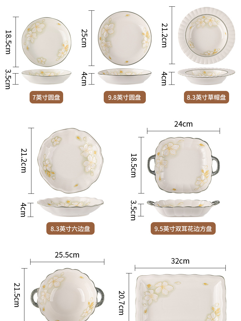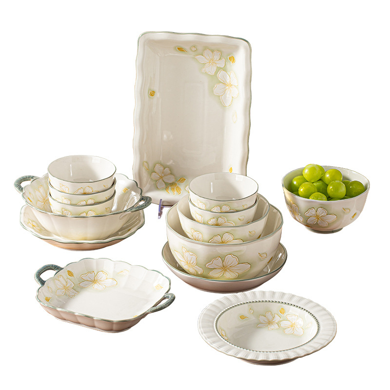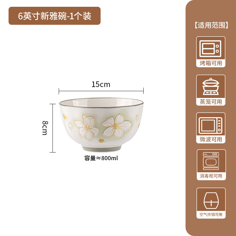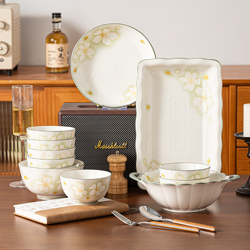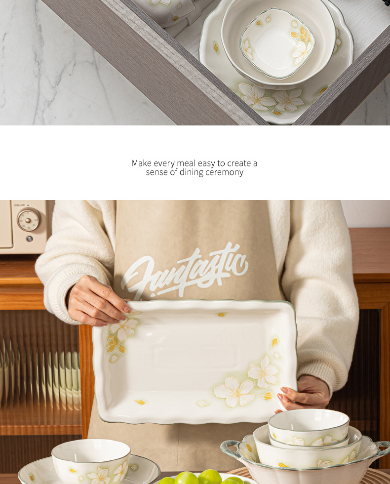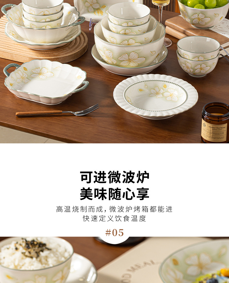 日式小清新碗碟套装家用釉下彩陶瓷碗米饭碗汤碗盘子鱼盘陶瓷餐具
