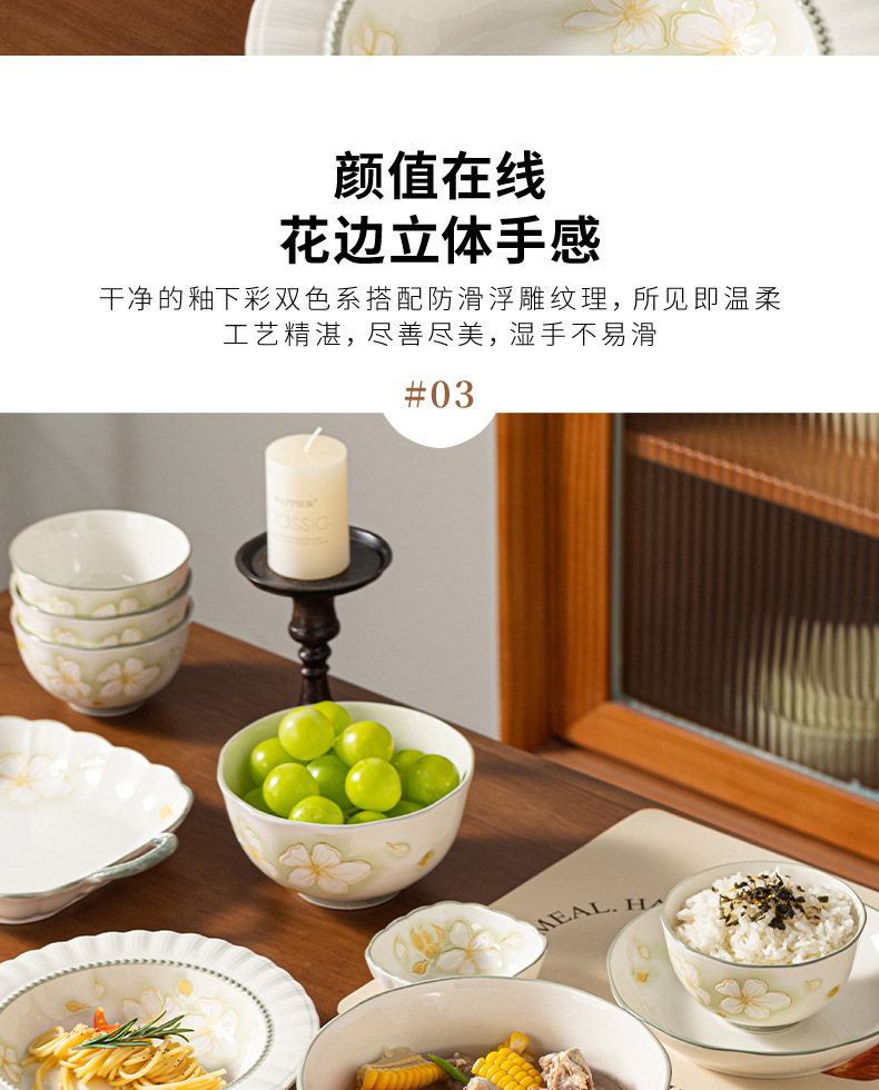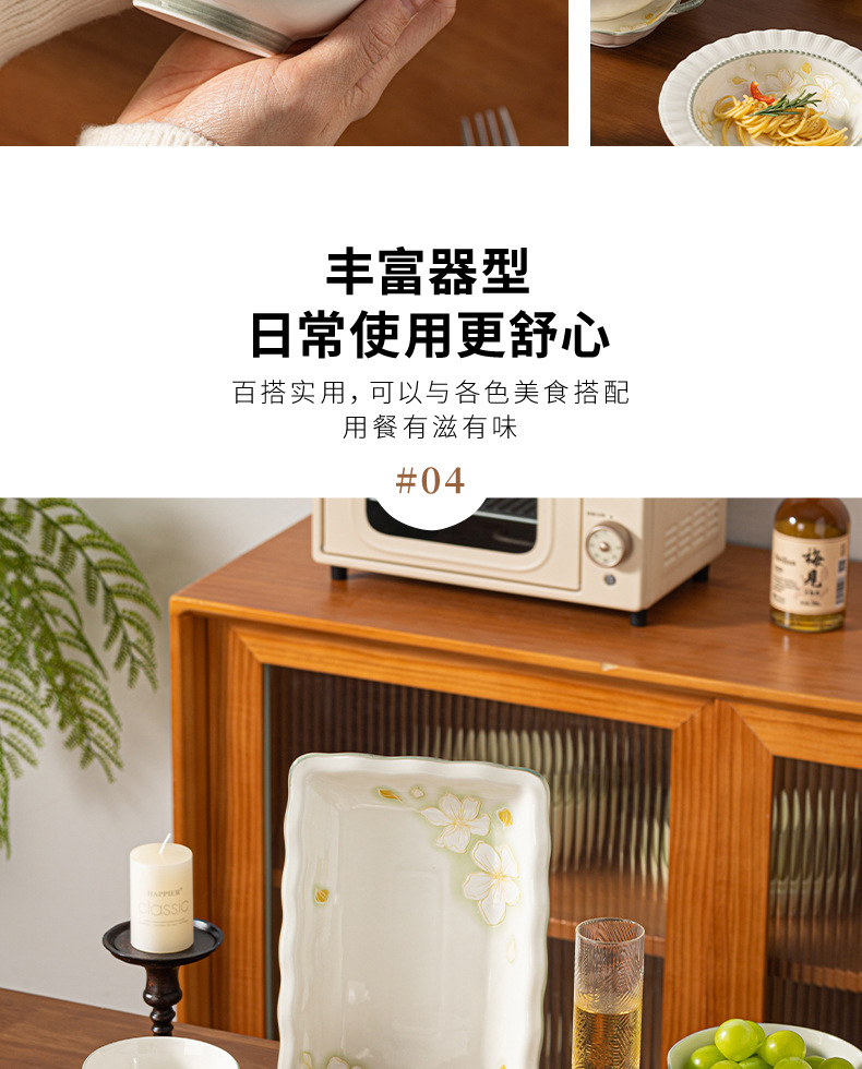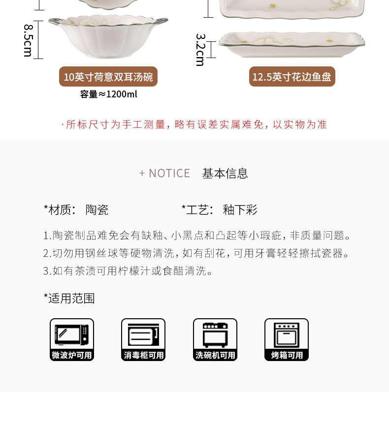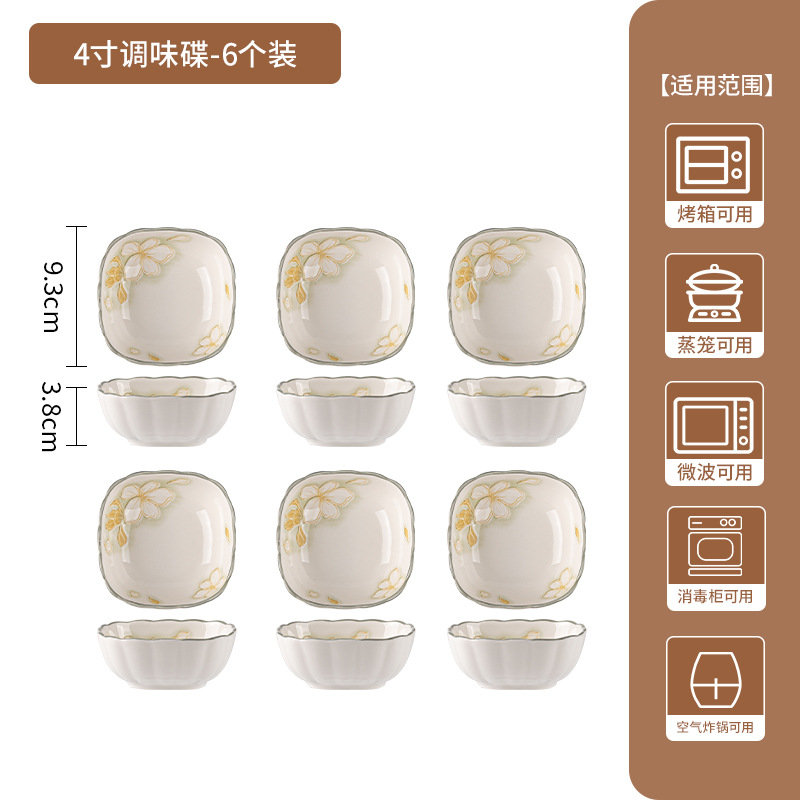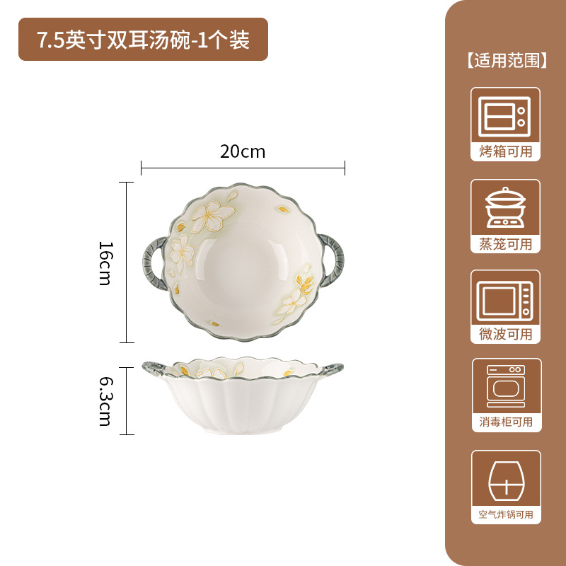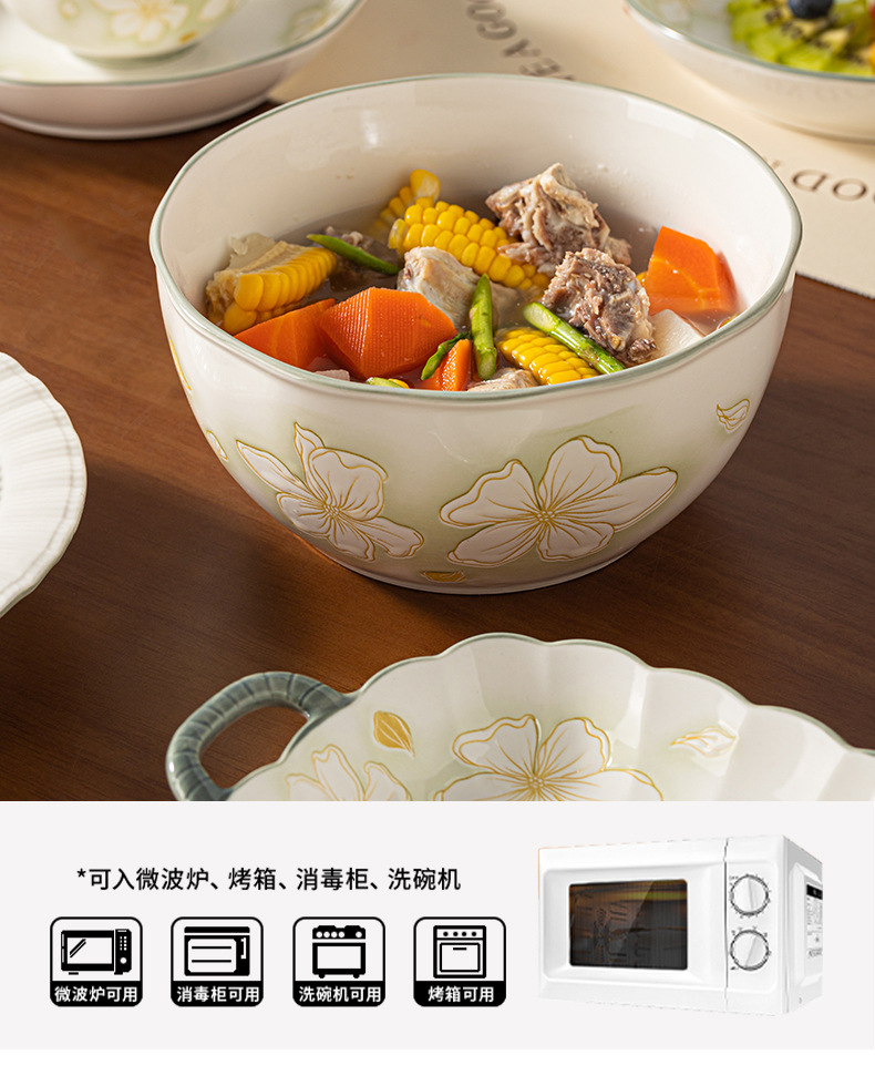 日式小清新碗碟套装家用釉下彩陶瓷碗米饭碗汤碗盘子鱼盘陶瓷餐具
