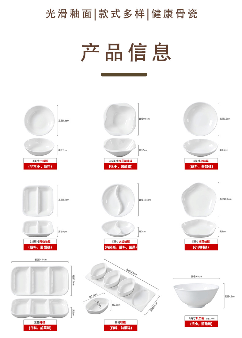 骨瓷味碟吃碟纯白陶瓷酒店调味碟饭店酱油碟蘸料碟烤肉料碟醋碟