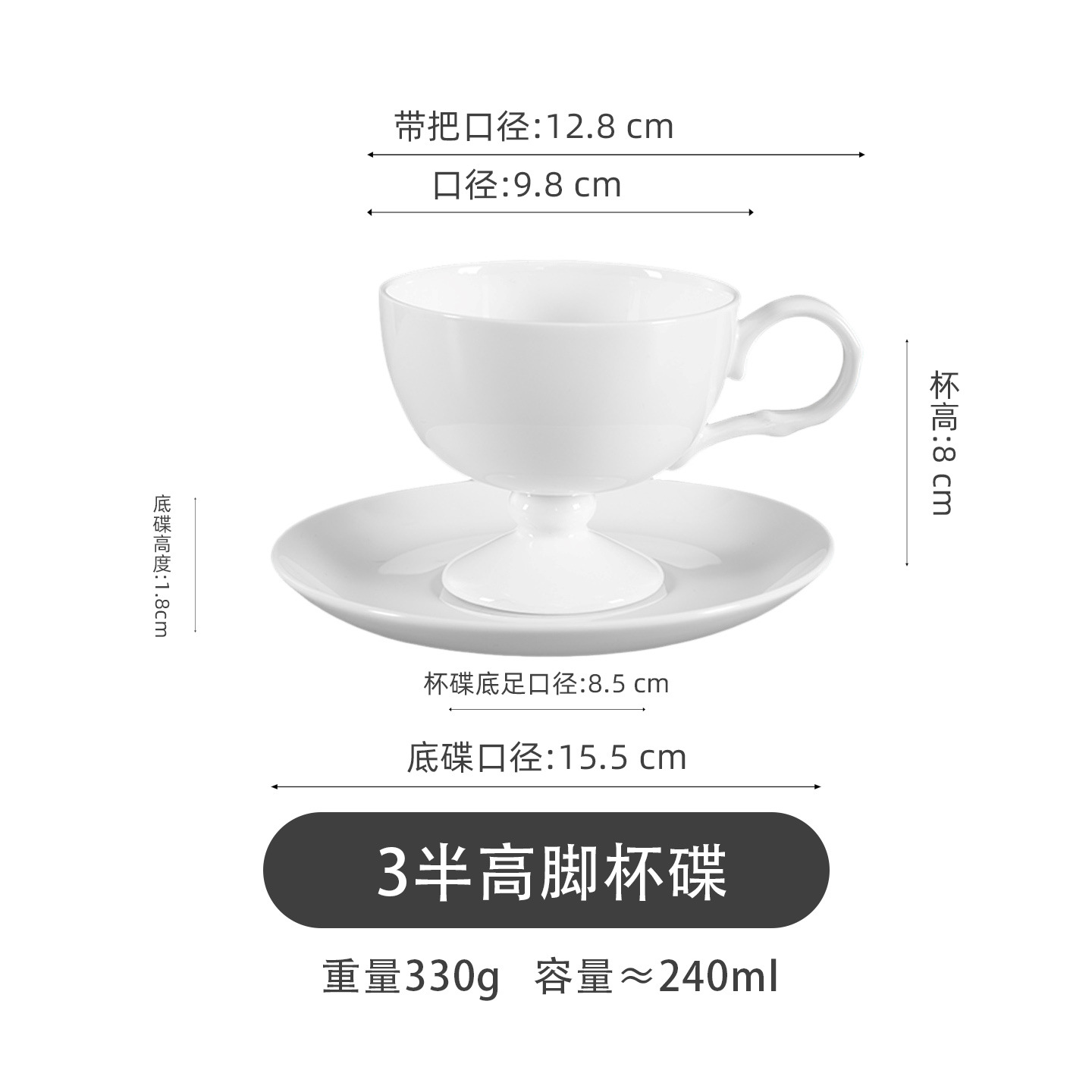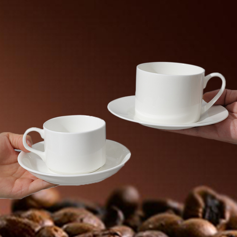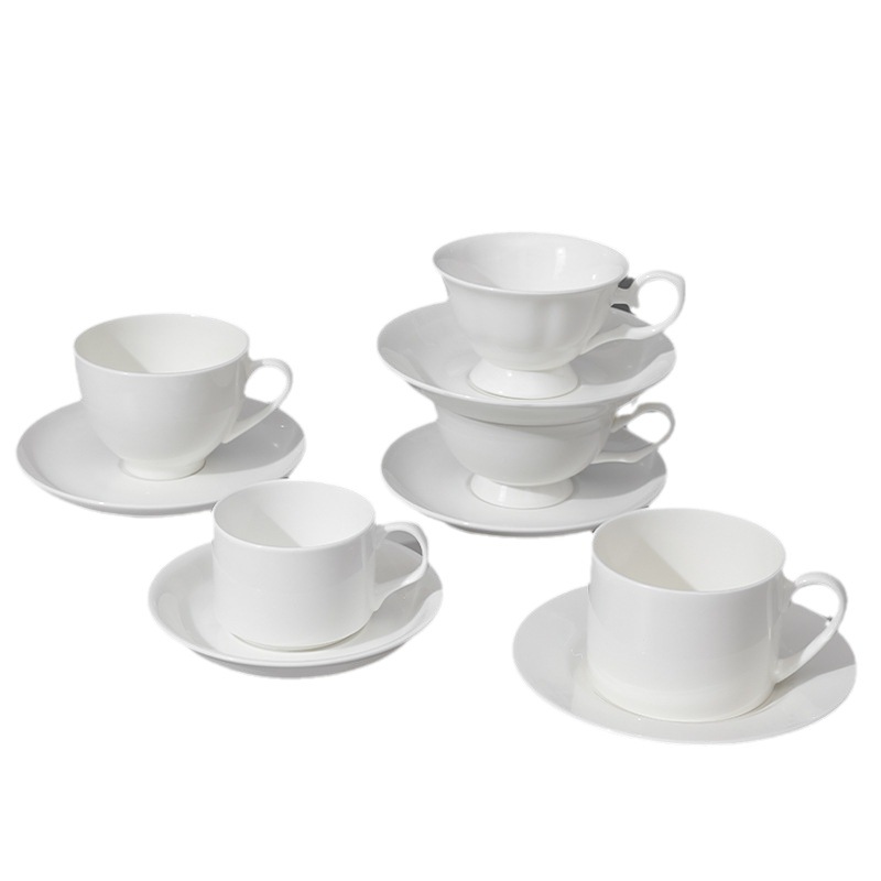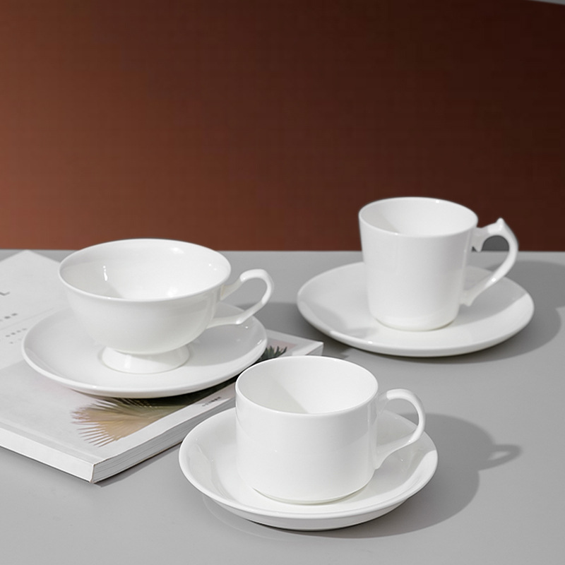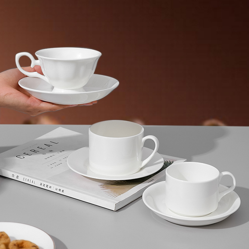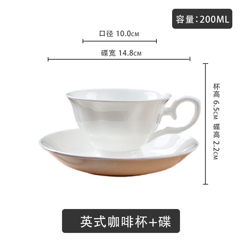 bone china pure white coffee cup, european-style luxury gold-gilded cup and saucer, ceramic coffee set, exquisite teacup for afternoon tea, refined.