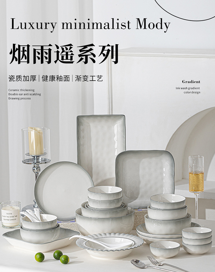 日式碗碟套装家用2025新款简约碗盘乔迁碗筷陶瓷釉下彩餐具盘子