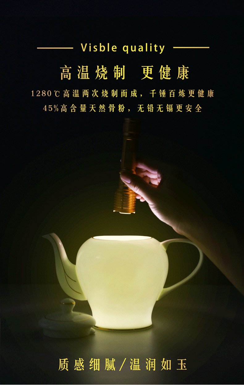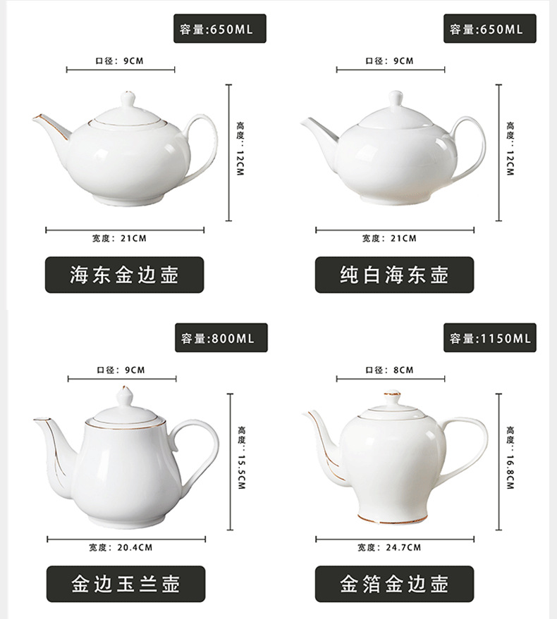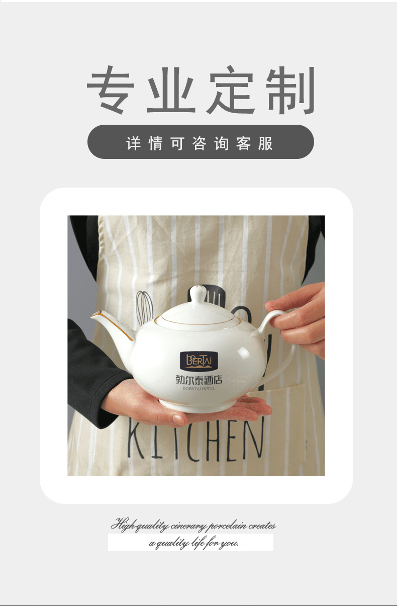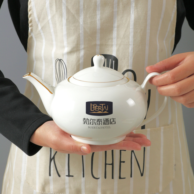 骨瓷茶壶咖啡壶餐厅酒店饭店中式陶瓷餐饮凉水壶大容量印制logo