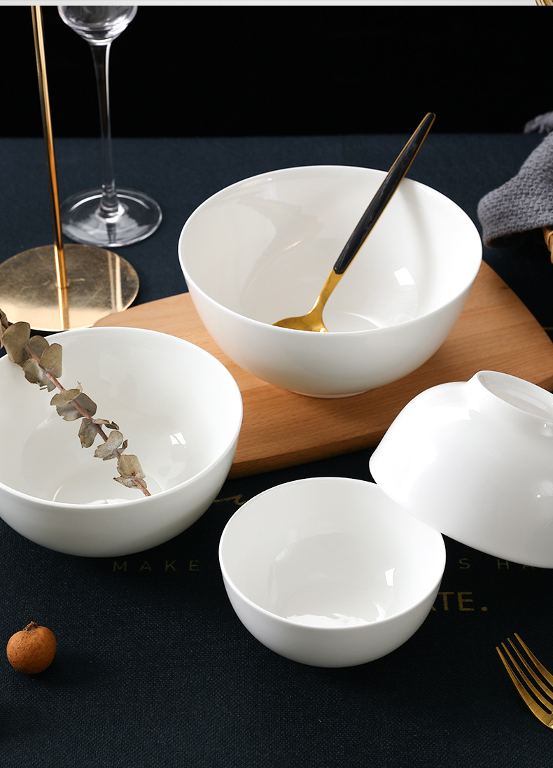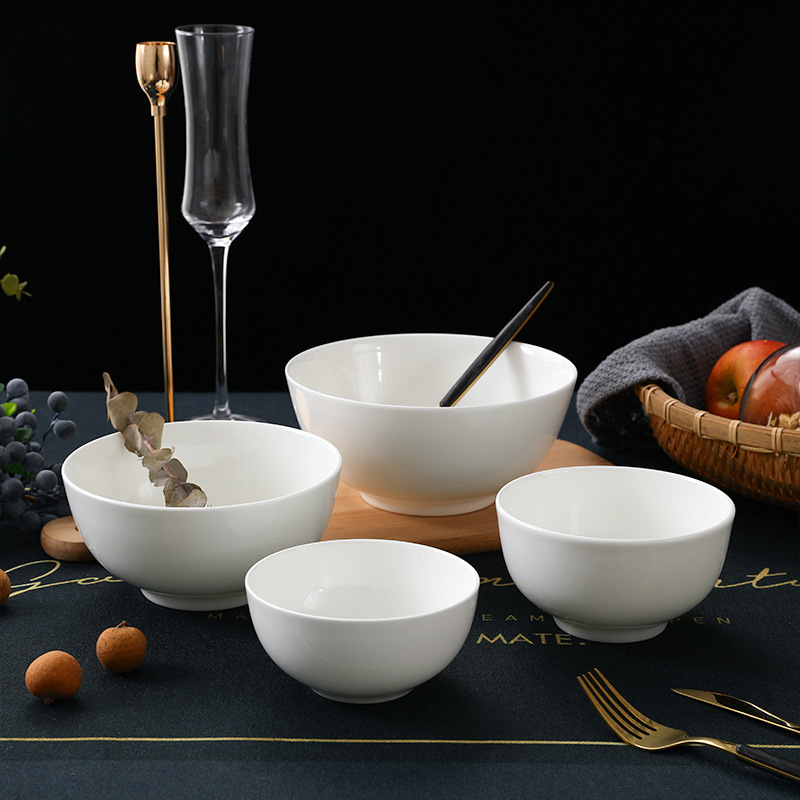 唐山骨瓷碗家用套装白色饭碗米饭碗陶瓷碗2025新款面碗餐具白瓷碗