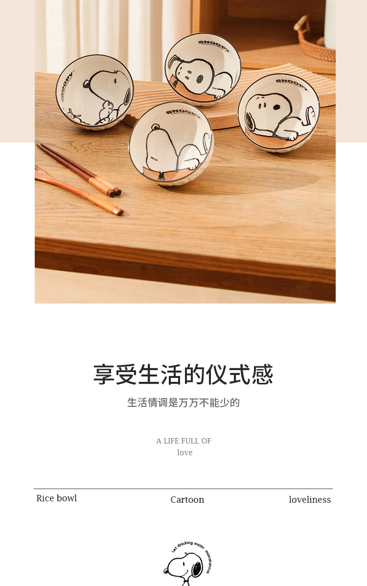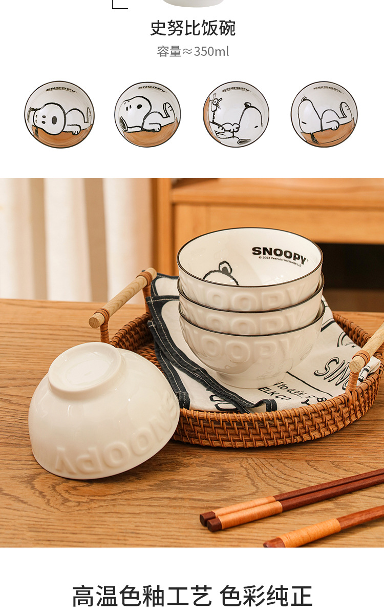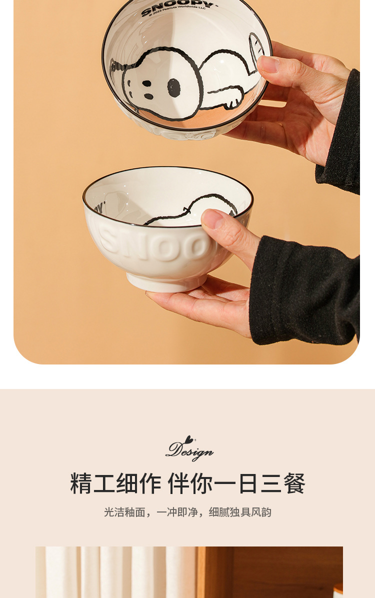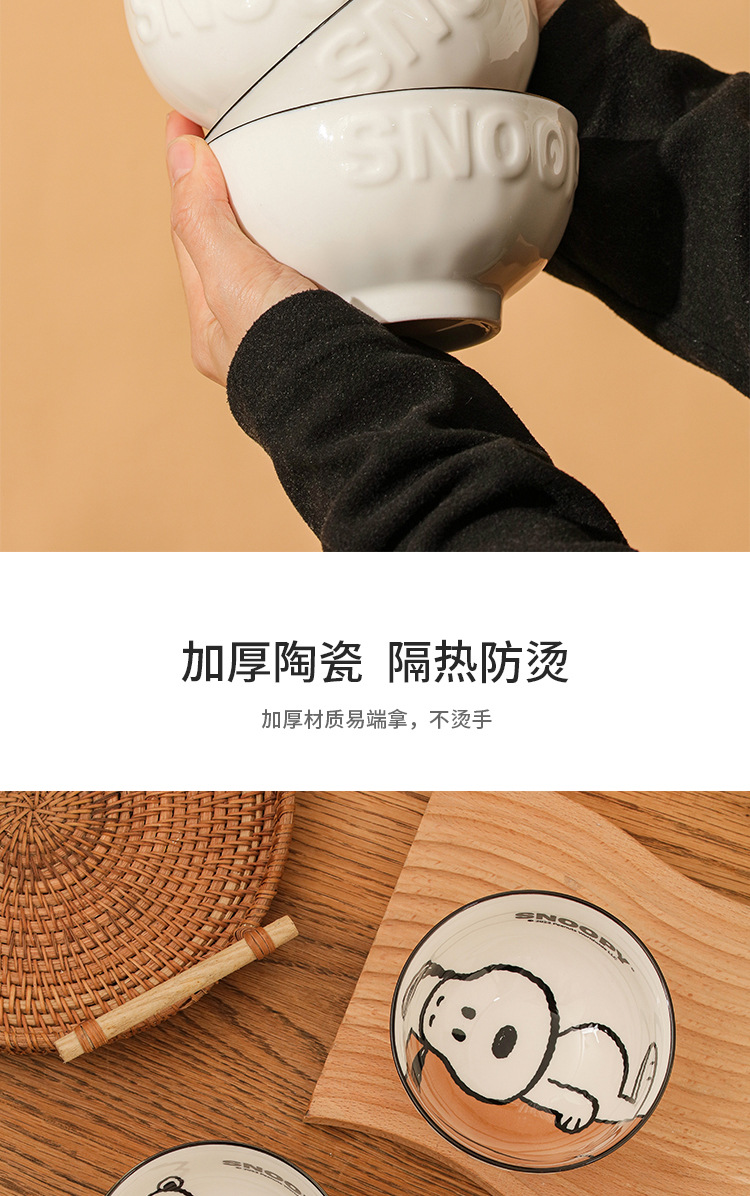 机印系列史努比可爱卡通浮雕日式碗情侣早餐陶瓷餐具釉下彩饭碗