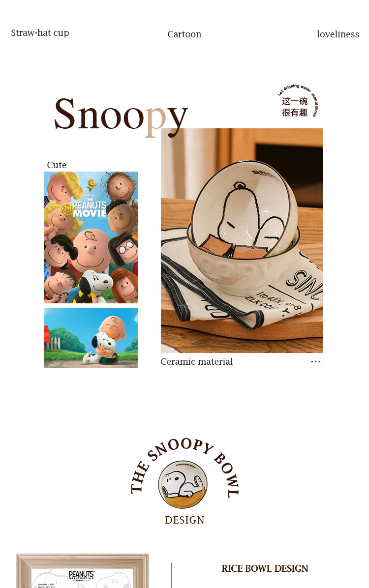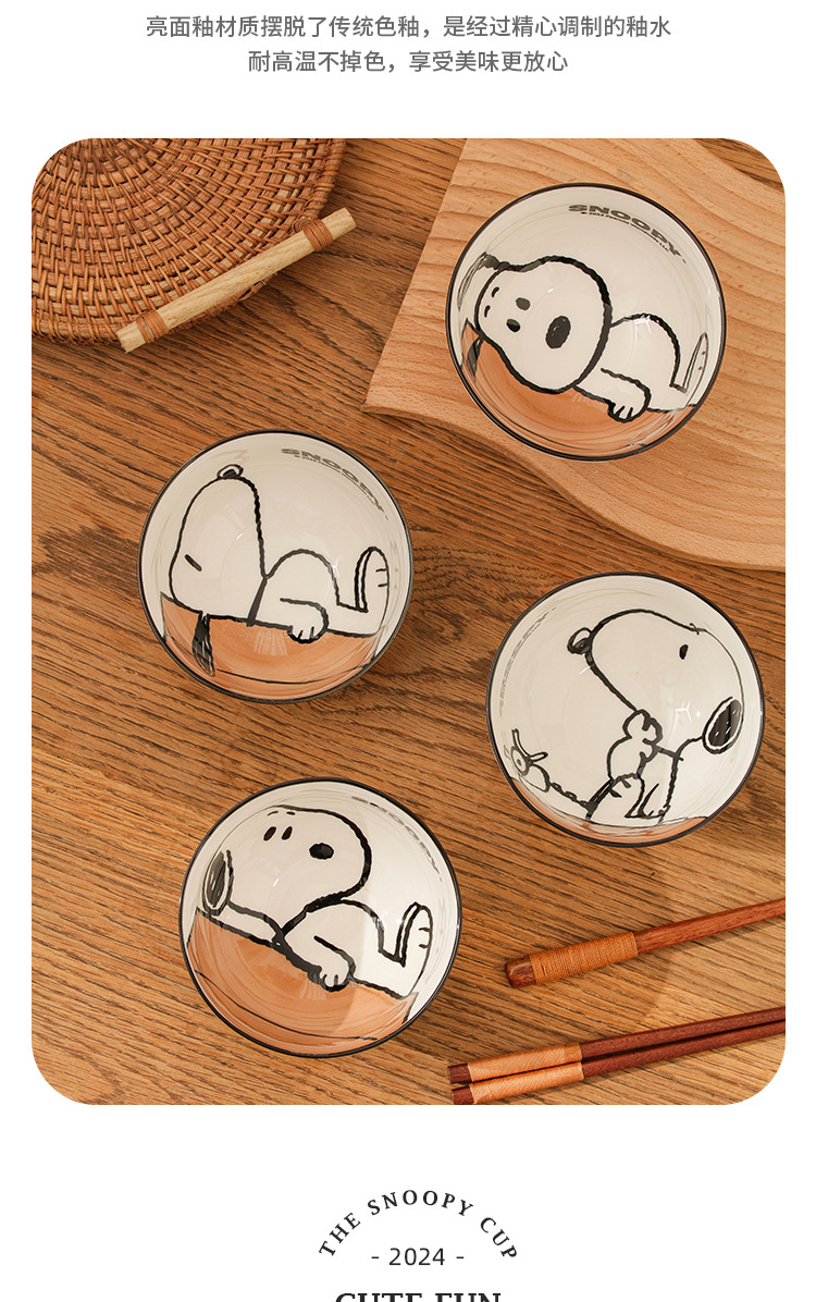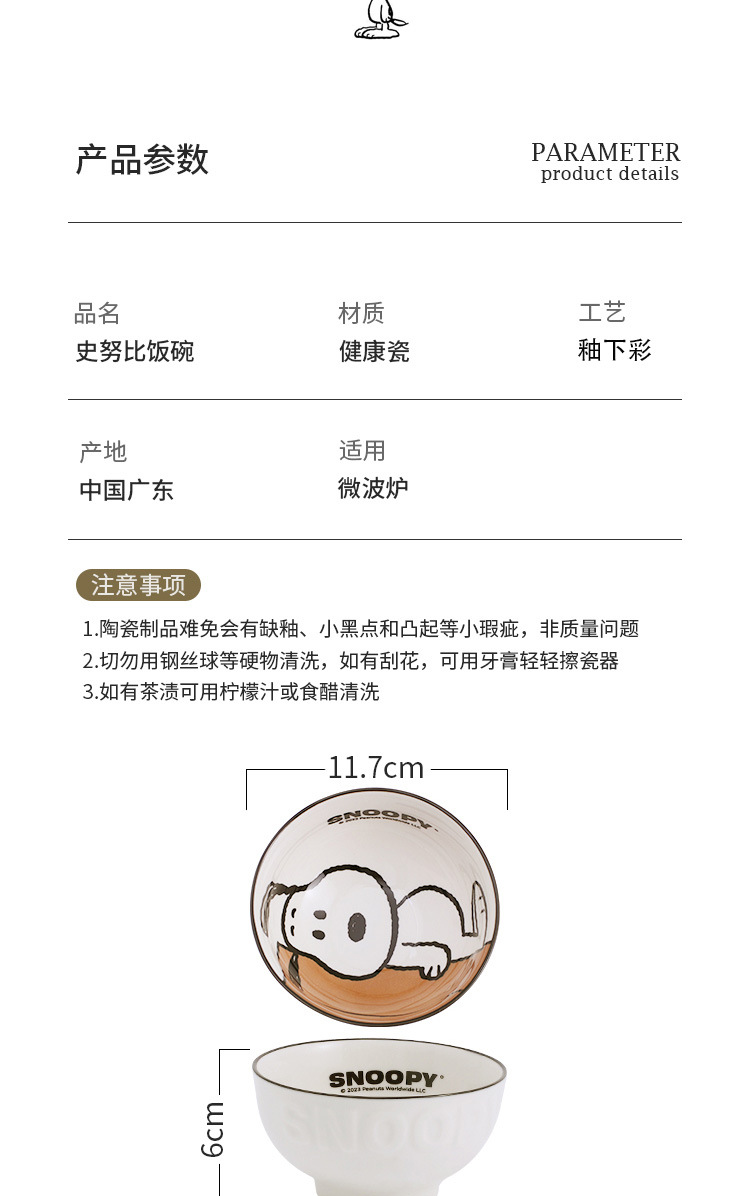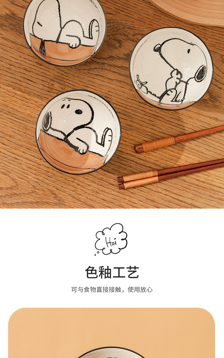 机印系列史努比可爱卡通浮雕日式碗情侣早餐陶瓷餐具釉下彩饭碗