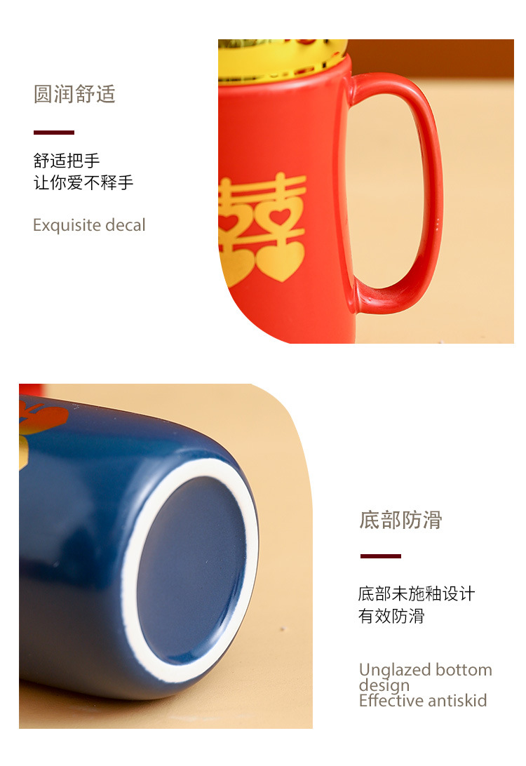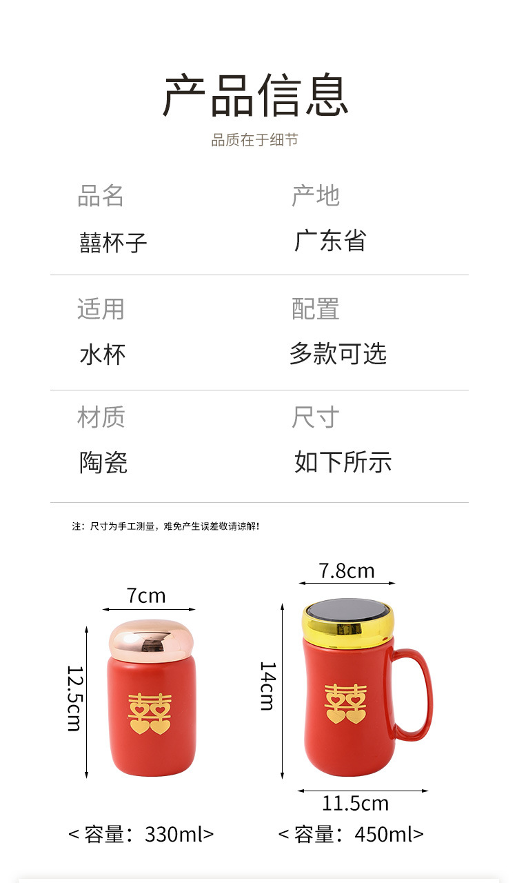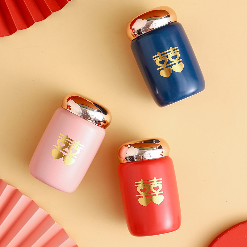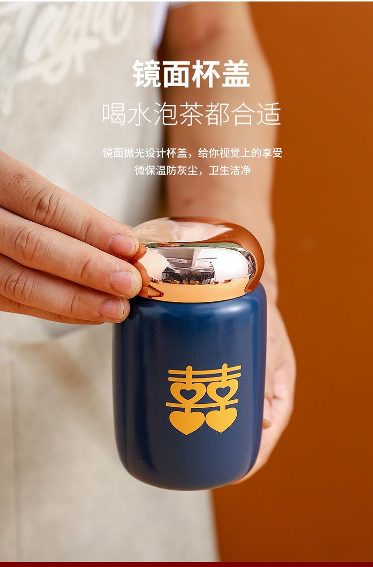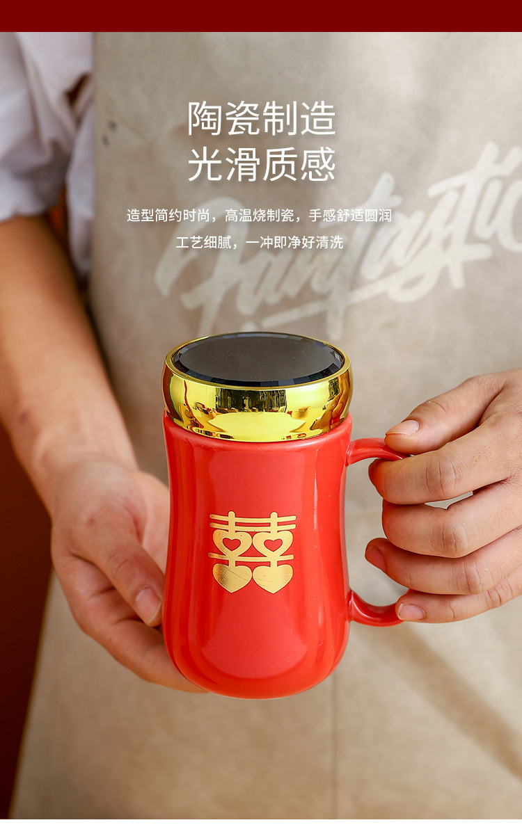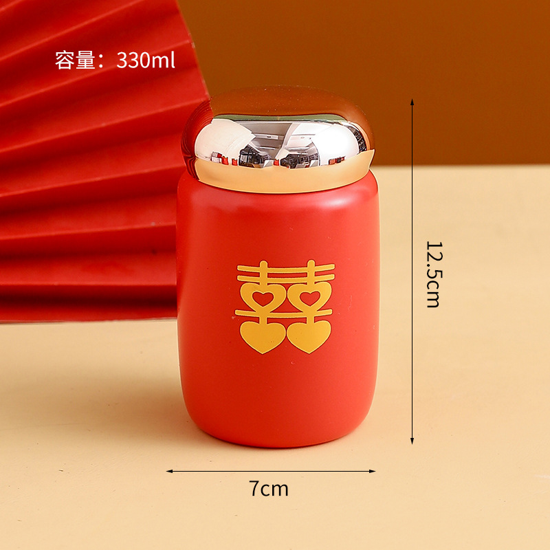 结婚伴手礼陶瓷喜杯子带蘑菇盖杯婚庆银行会销礼品陶瓷马克杯批发