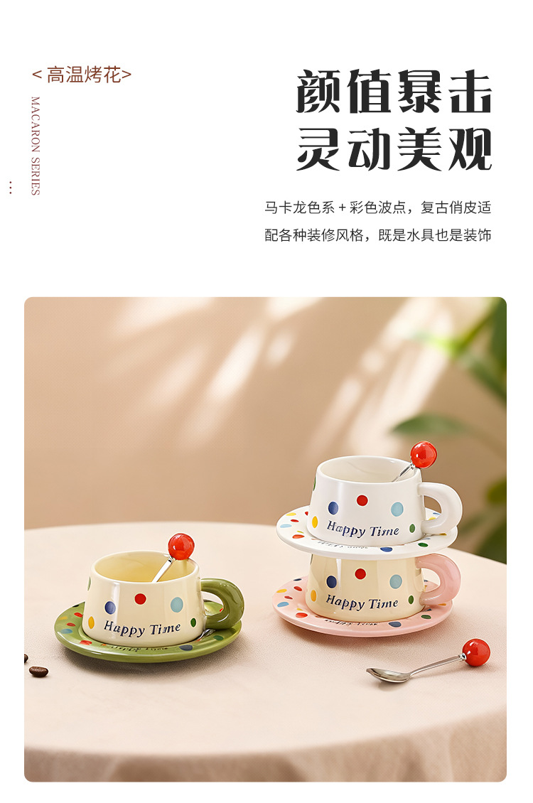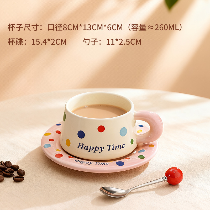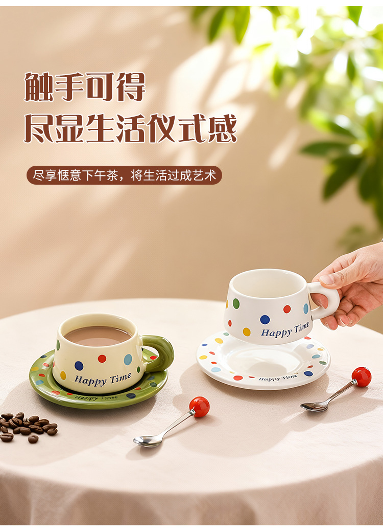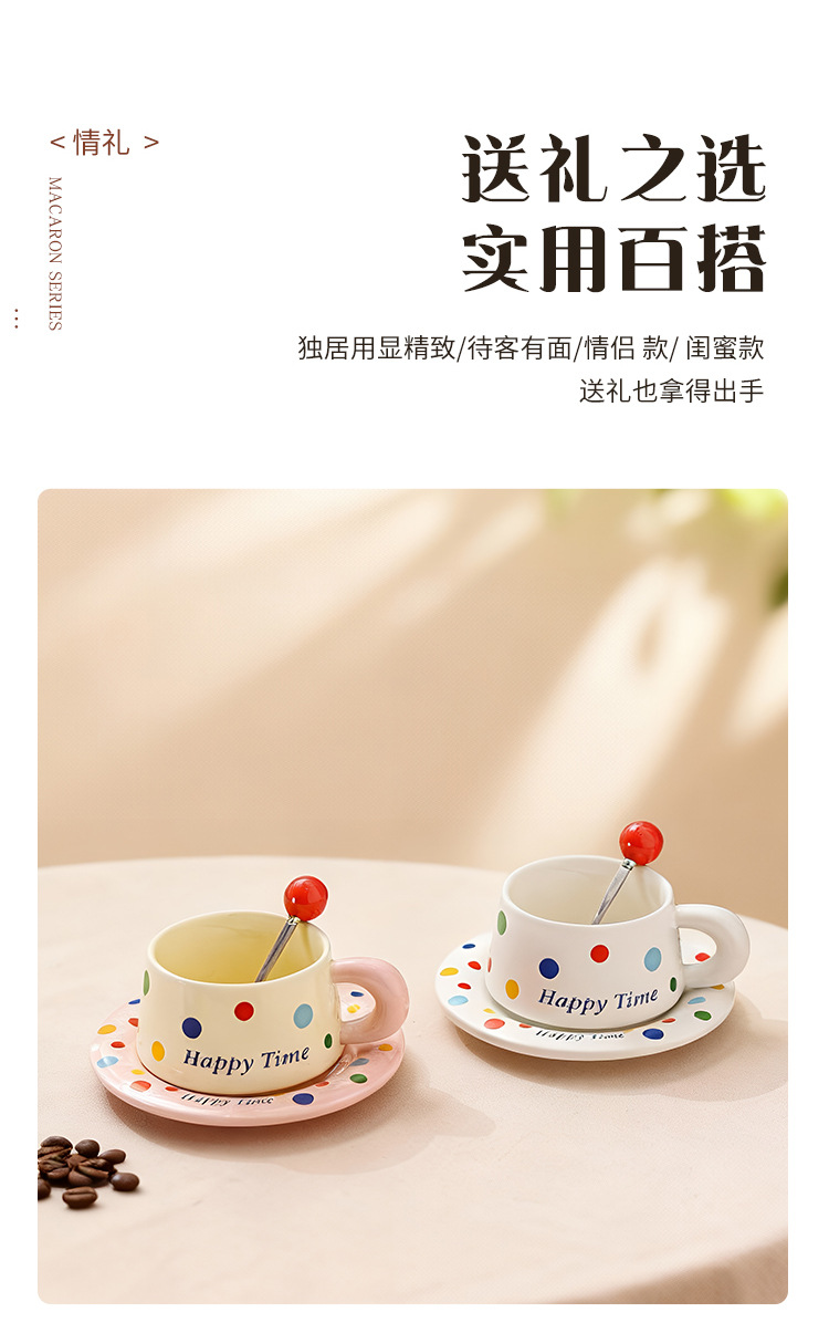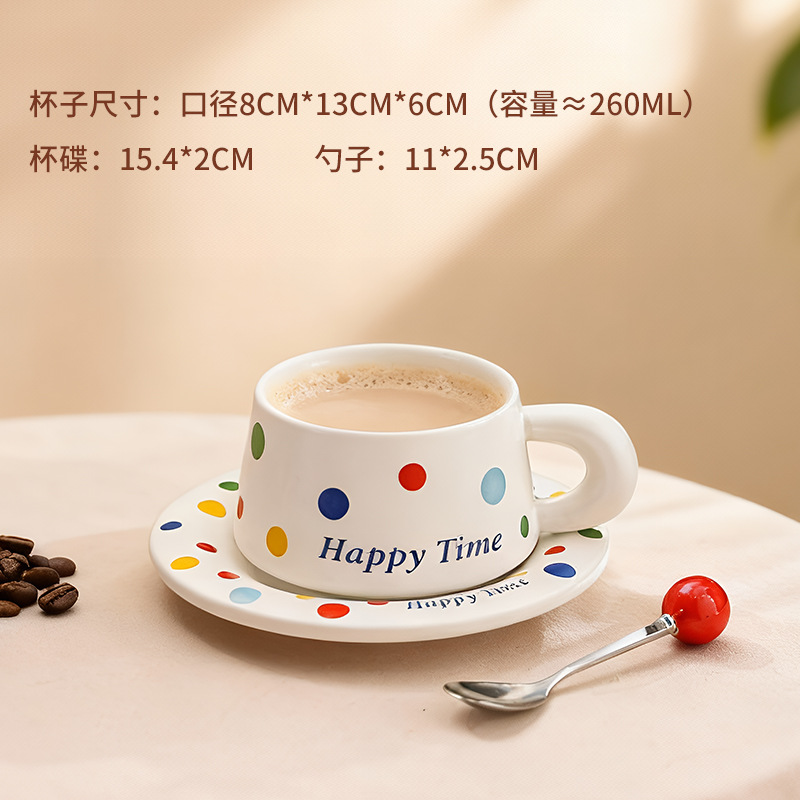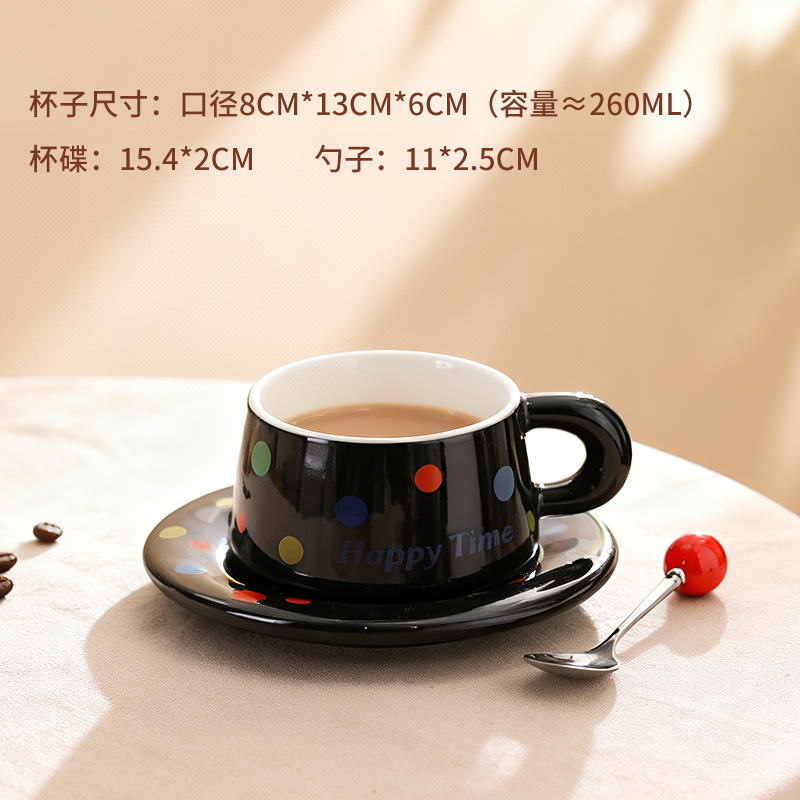 跨境北欧风波点咖啡杯带勺杯碟高颜值创意陶瓷杯办公室水杯伴手礼