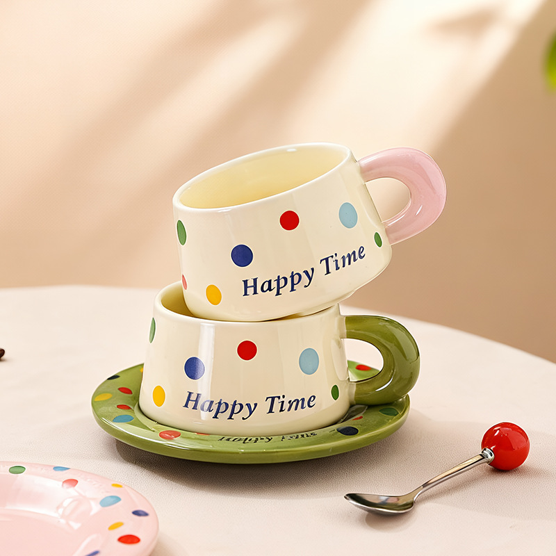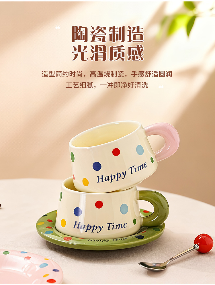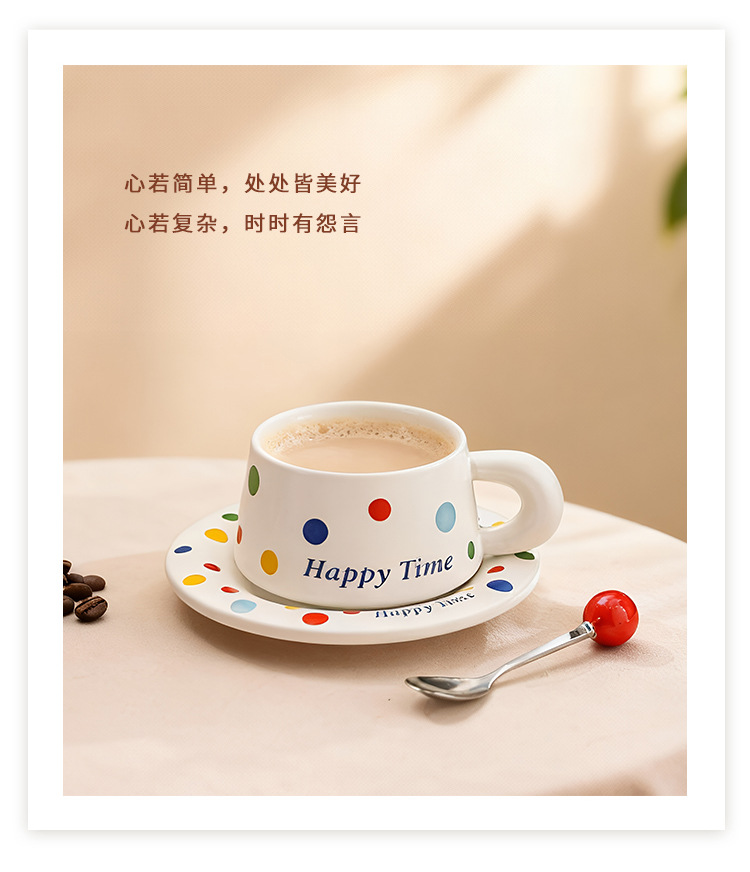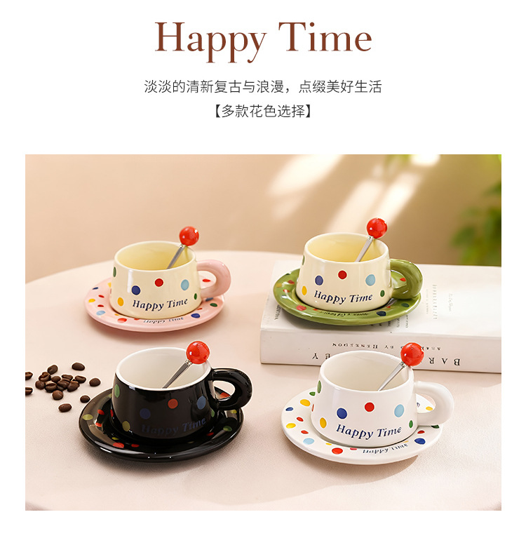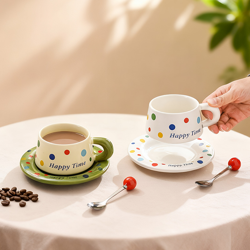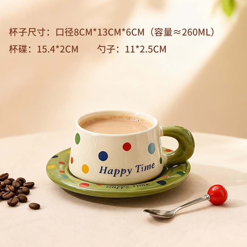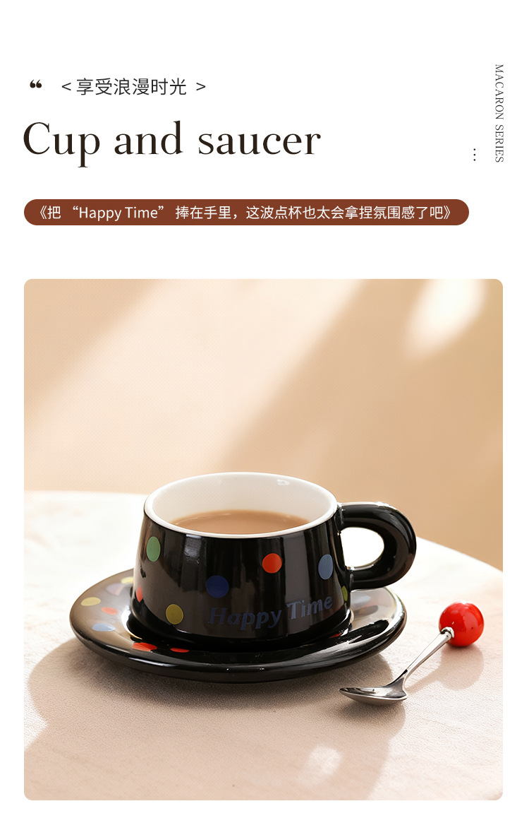 跨境北欧风波点咖啡杯带勺杯碟高颜值创意陶瓷杯办公室水杯伴手礼
