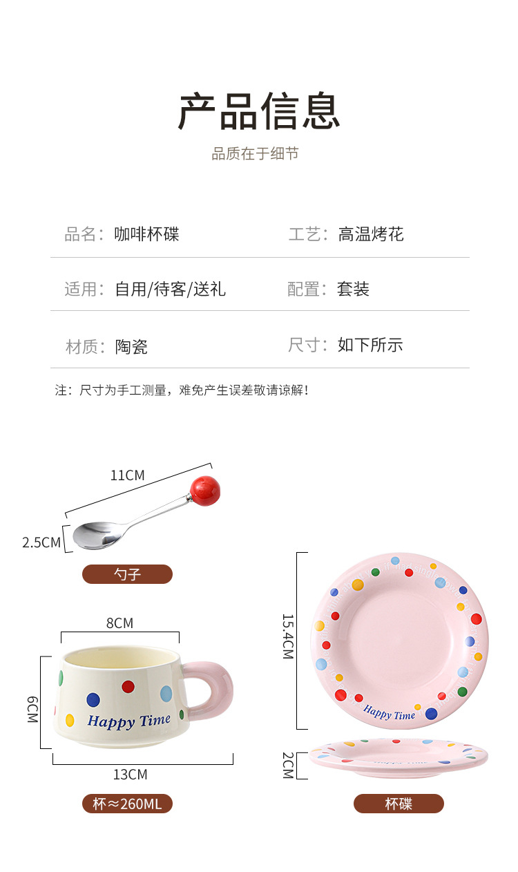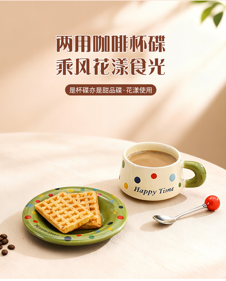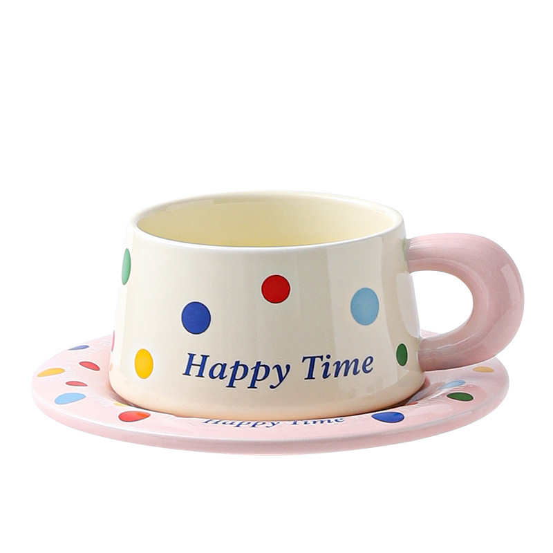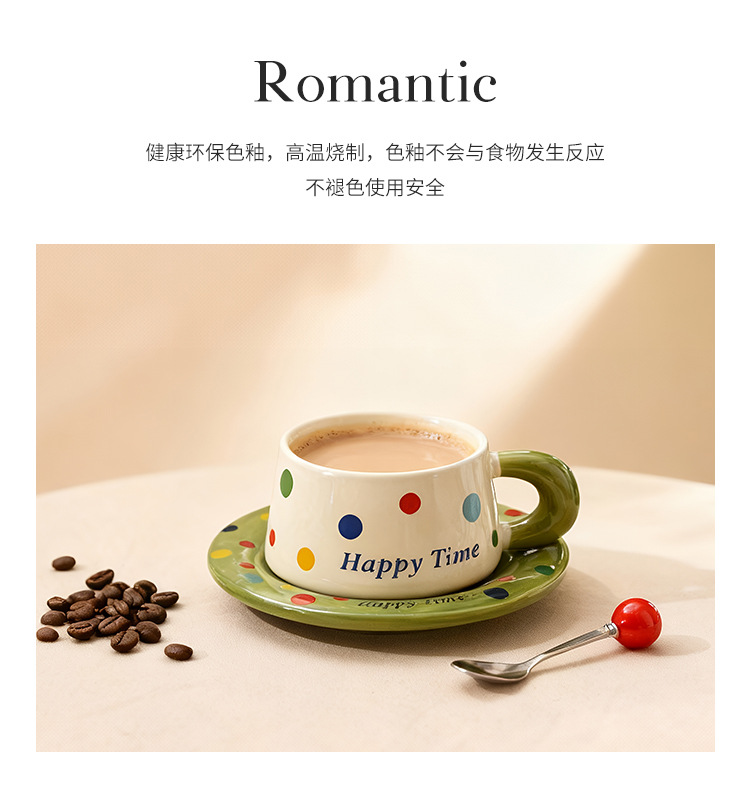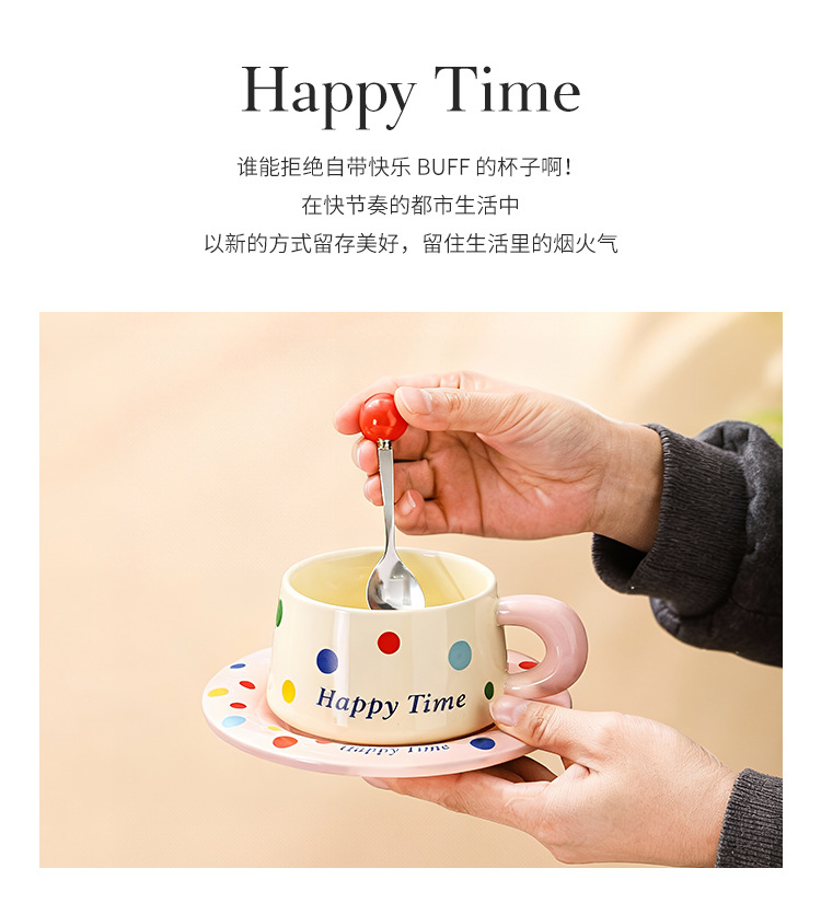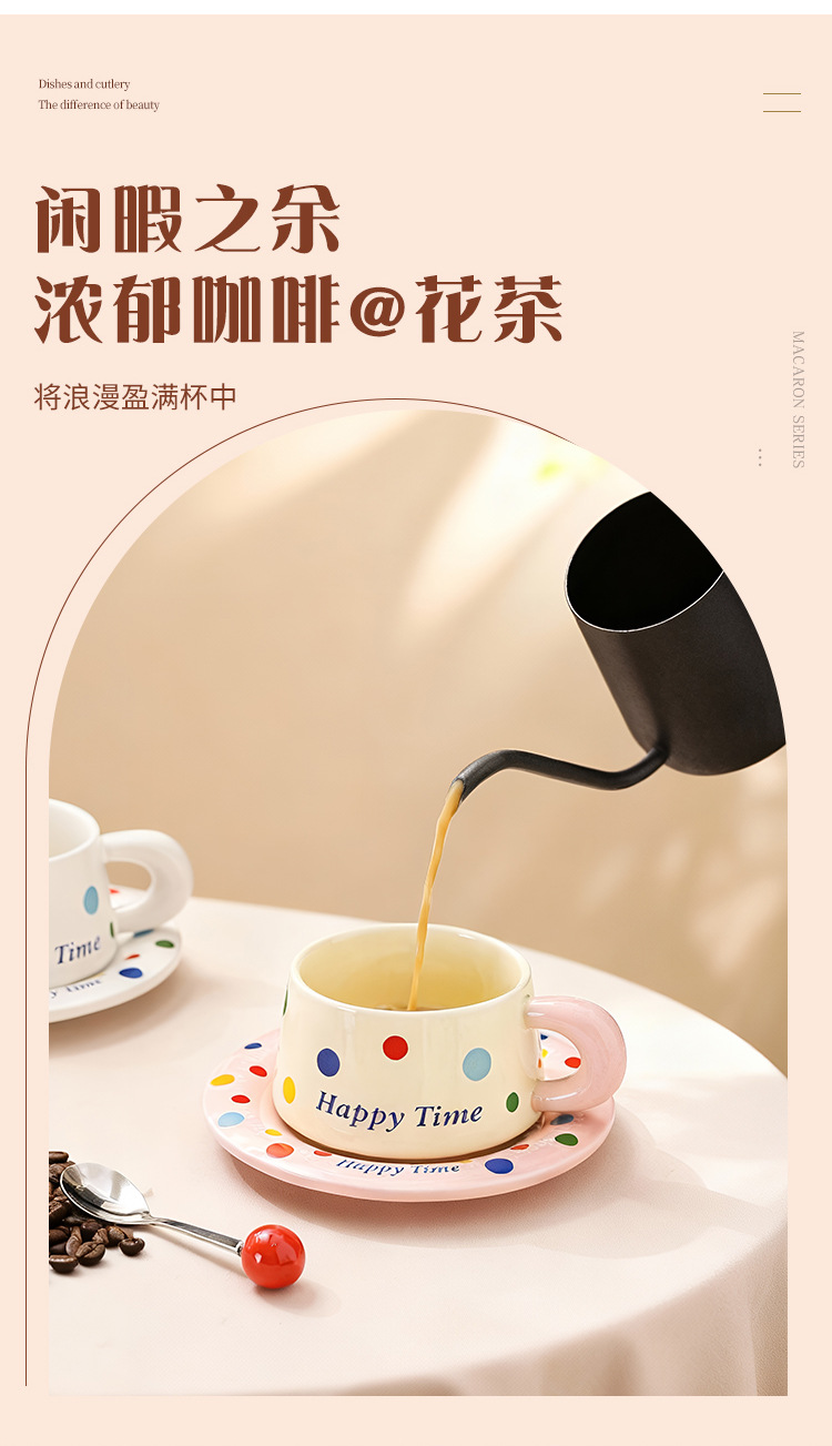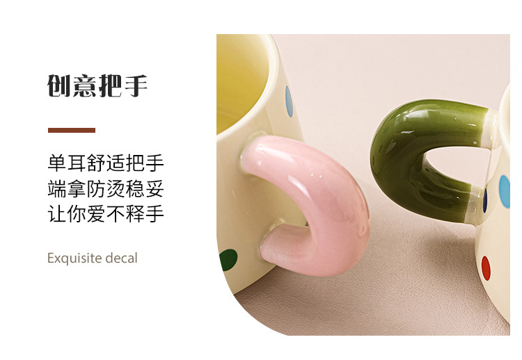 跨境北欧风波点咖啡杯带勺杯碟高颜值创意陶瓷杯办公室水杯伴手礼