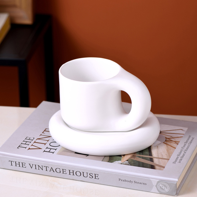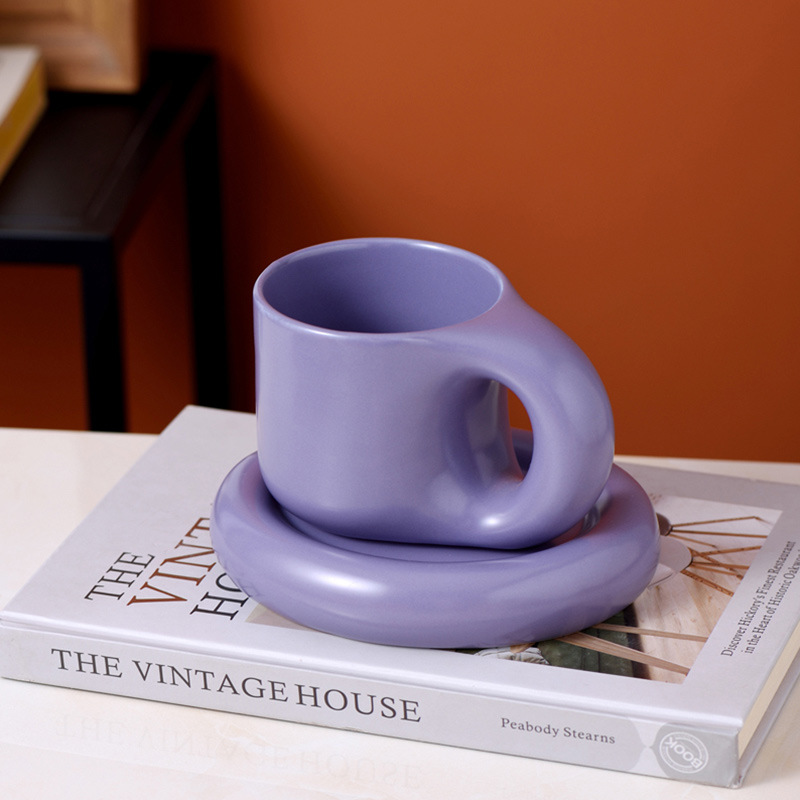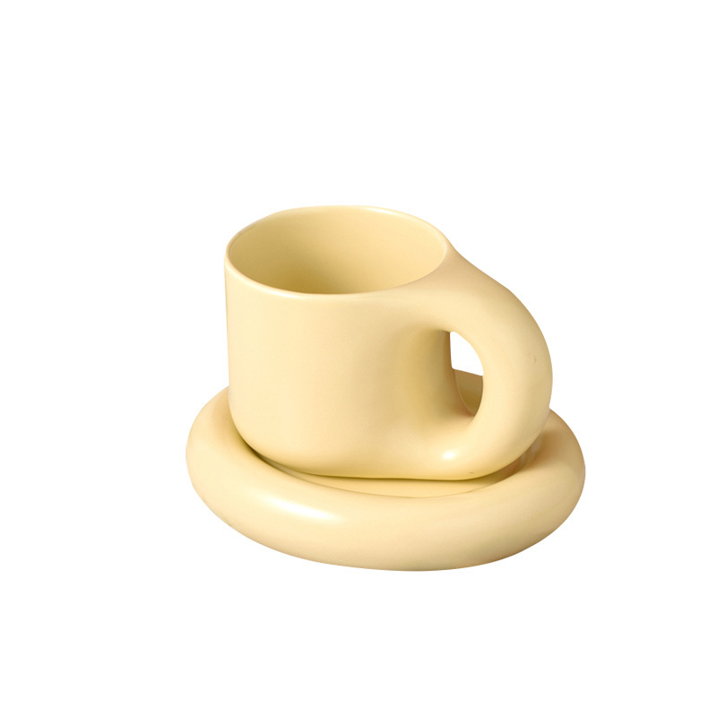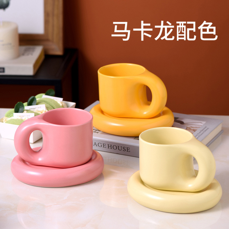 网红胖胖杯陶瓷马克杯高颜值大肚杯马卡龙色办公室咖啡杯碟套装