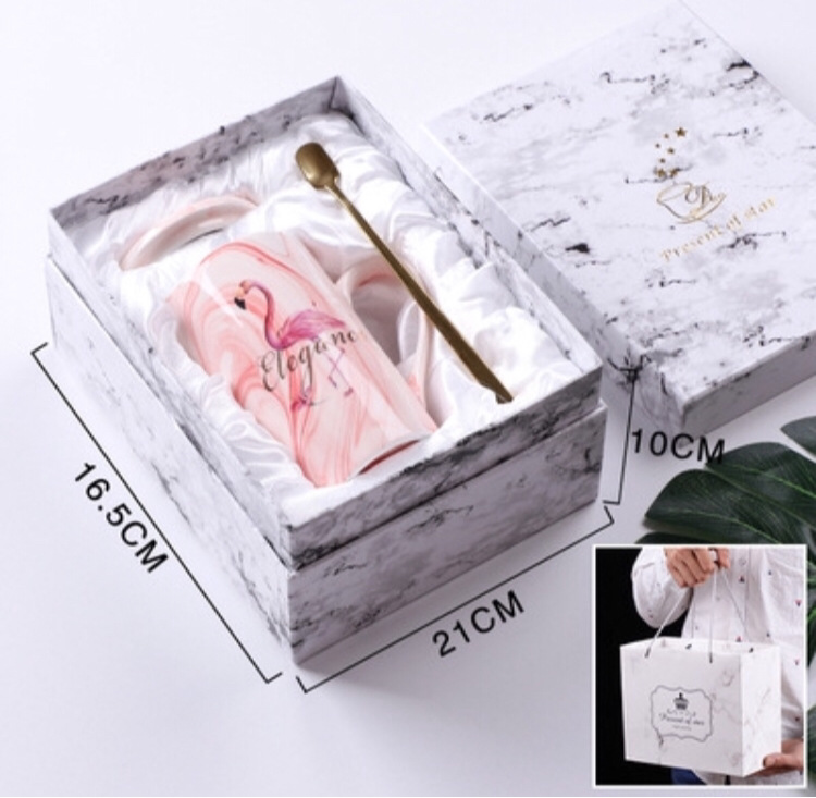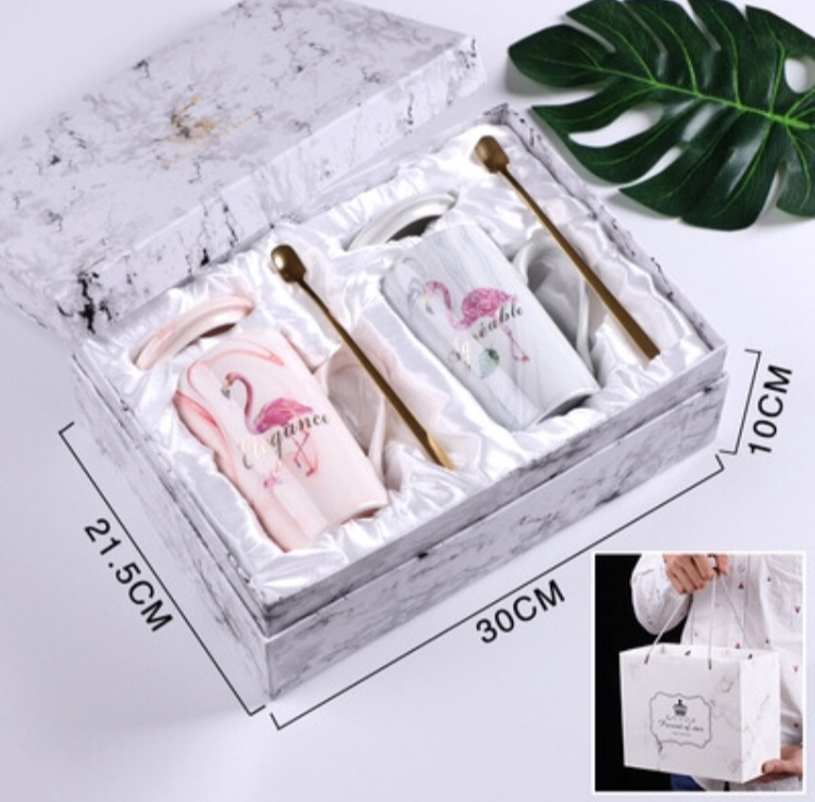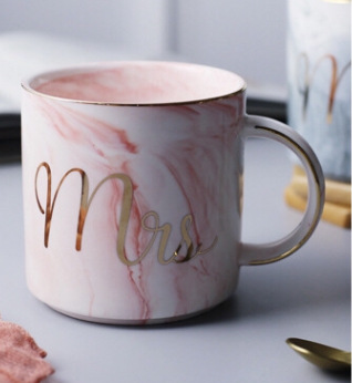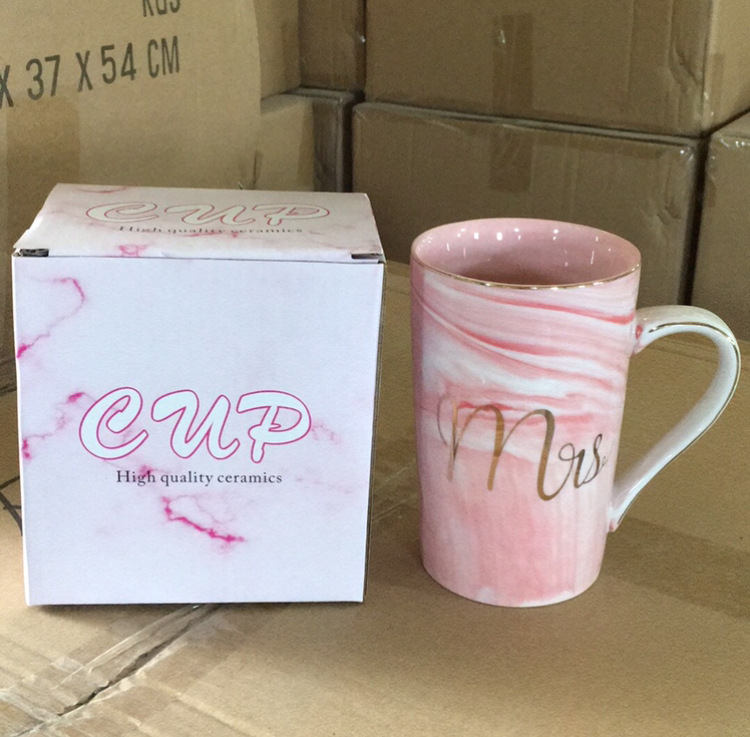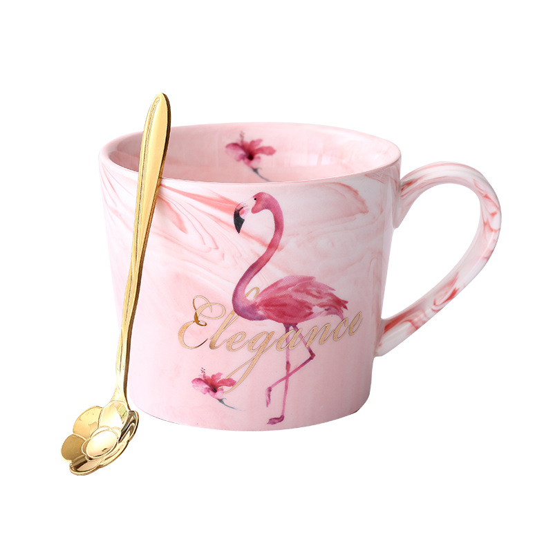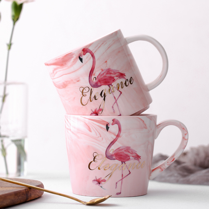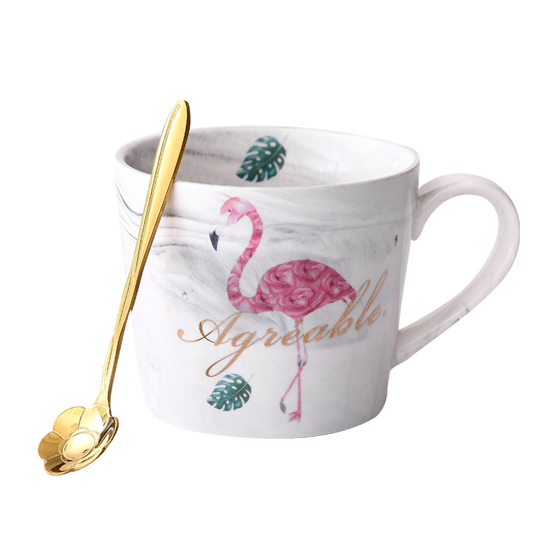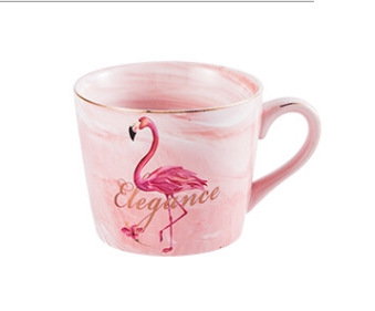 跨境爆款火烈鸟烫金大理石杯子陶瓷早餐杯牛奶杯情侣杯咖啡马克杯