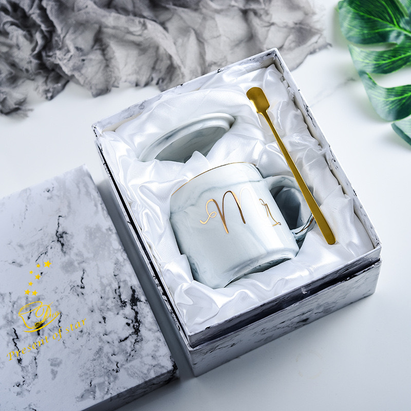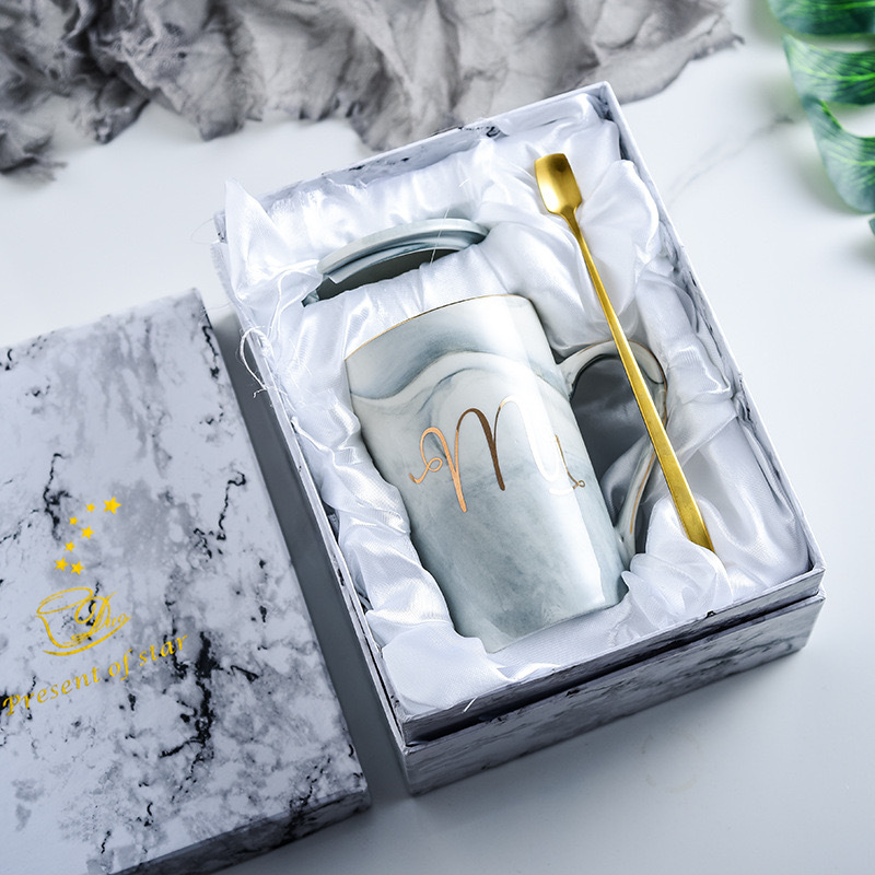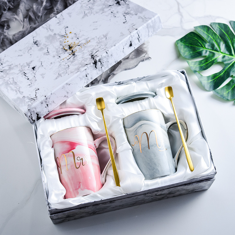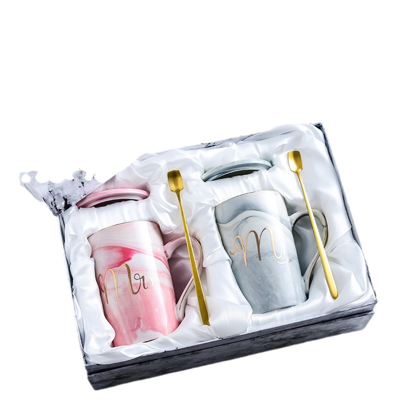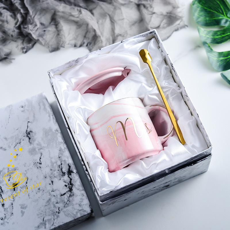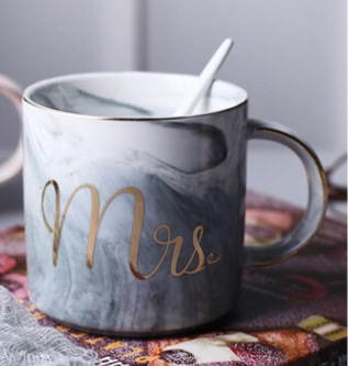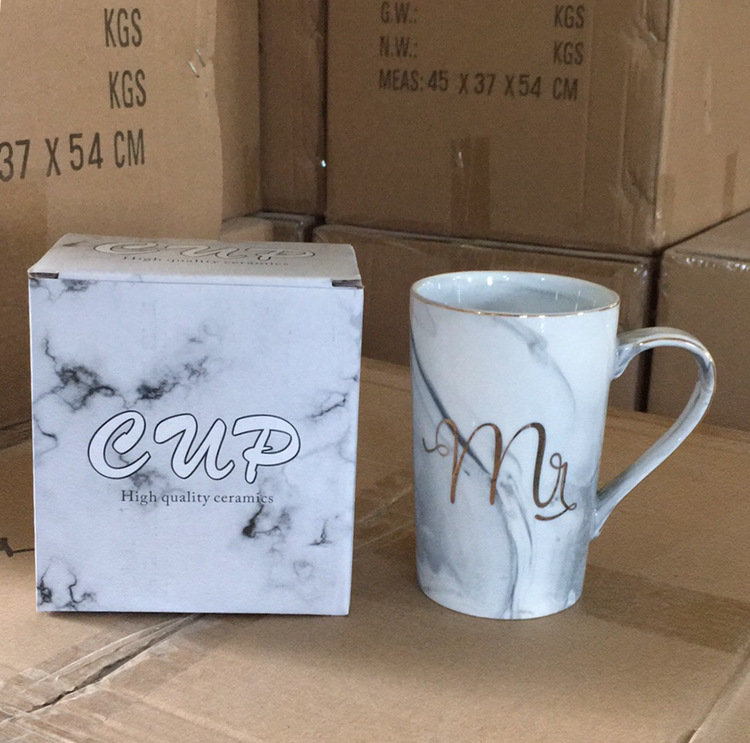 跨境爆款火烈鸟烫金大理石杯子陶瓷早餐杯牛奶杯情侣杯咖啡马克杯