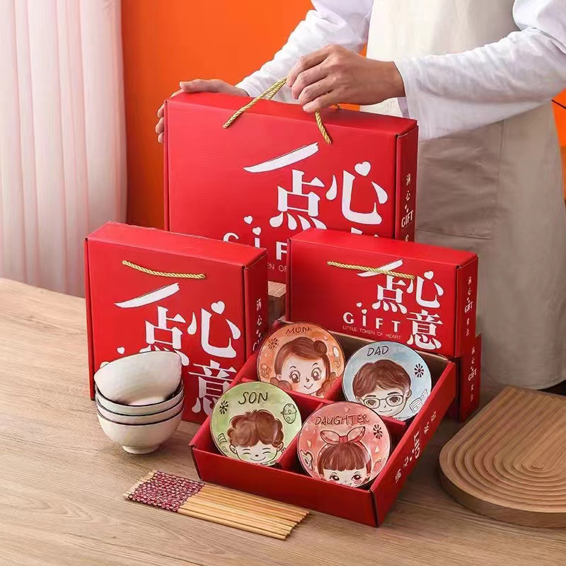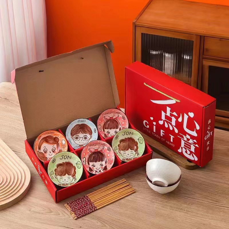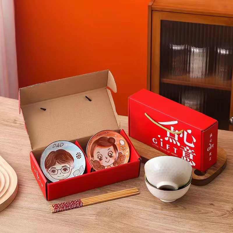 满心欢喜碗筷套装创意陶瓷餐具礼品碗礼盒装公司活动年会伴手礼