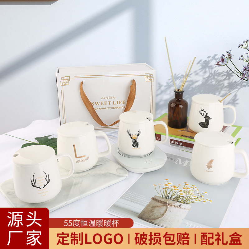 55度暖暖杯恒温杯圣诞节礼物加热杯垫牛奶杯马克杯陶瓷水杯简约杯