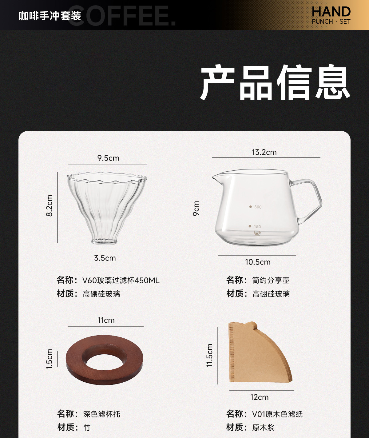 手冲咖啡过滤杯咖啡壶分享壶冲泡壶V60滴漏式滤杯咖啡器具套装