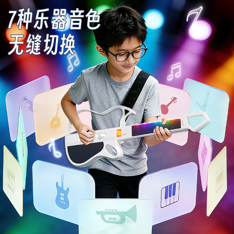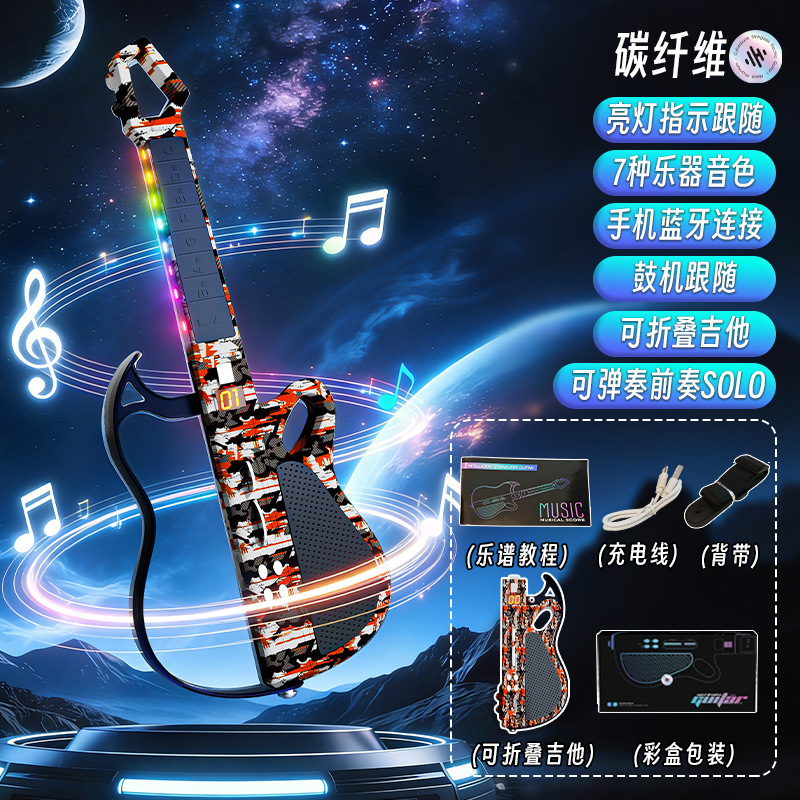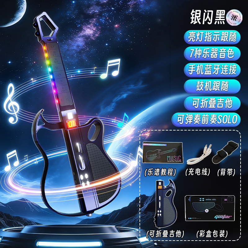 新款蓝牙无弦电子吉他可折叠智能伴奏自动挡弹唱儿童音乐乐器玩具