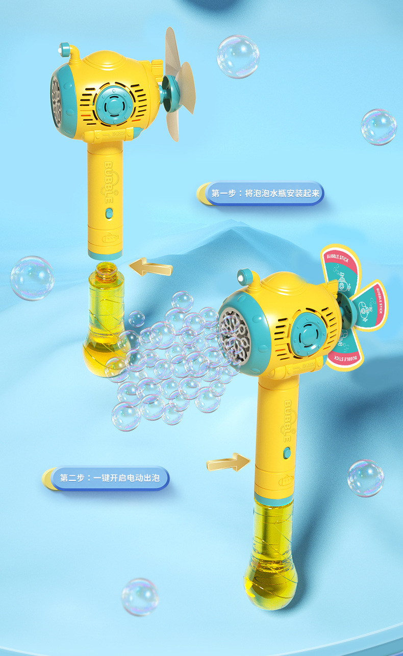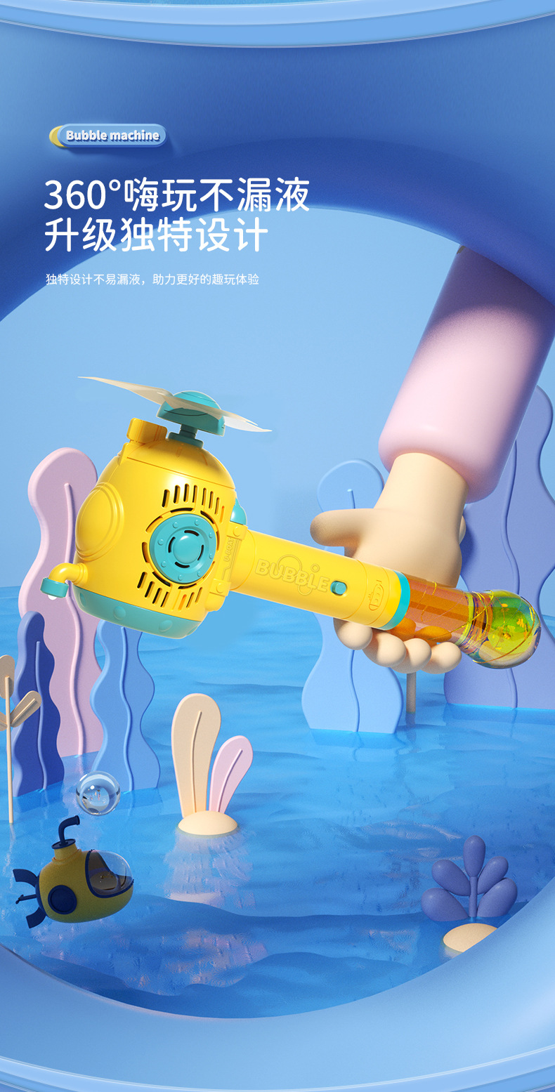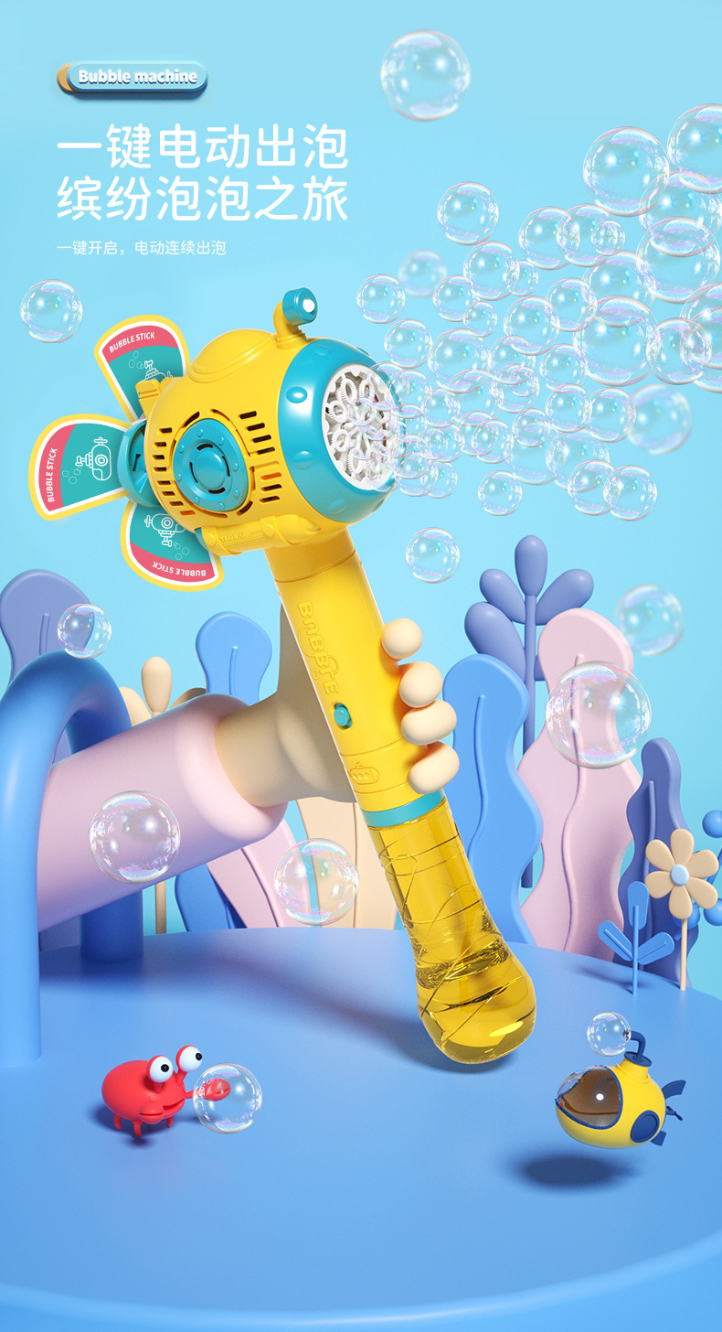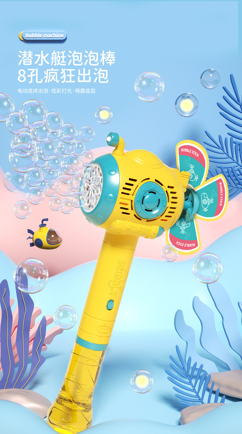 网红风车潜水艇泡泡机儿童手持共享灯光音乐魔法棒泡泡玩具摆摊批