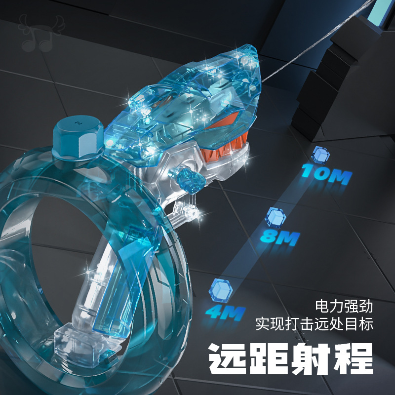 跨境灯光鲨鱼聚能环水枪大容量电动连发儿童喷水沙滩泳池男孩玩具