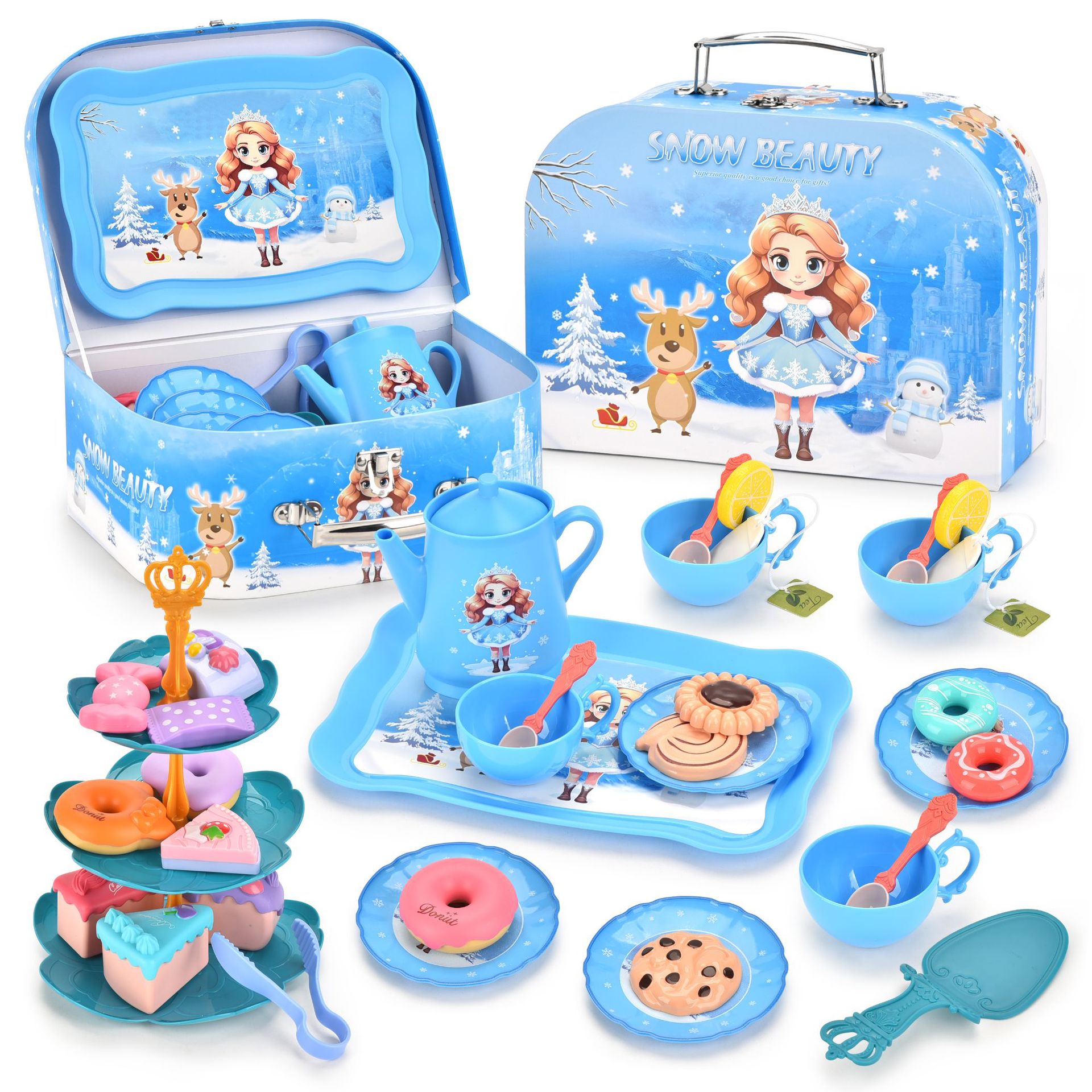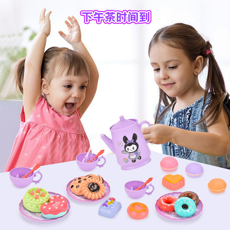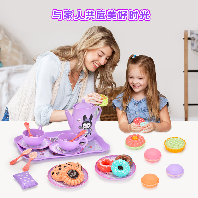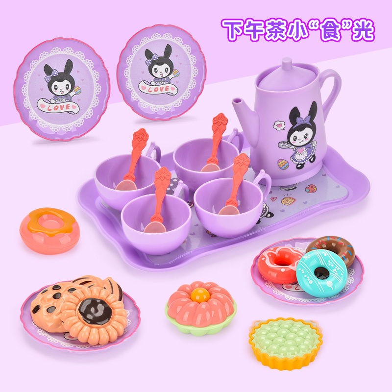 跨境新品紫小兔下午茶过家家玩具仿真甜品蛋糕切切乐茶具套装礼物