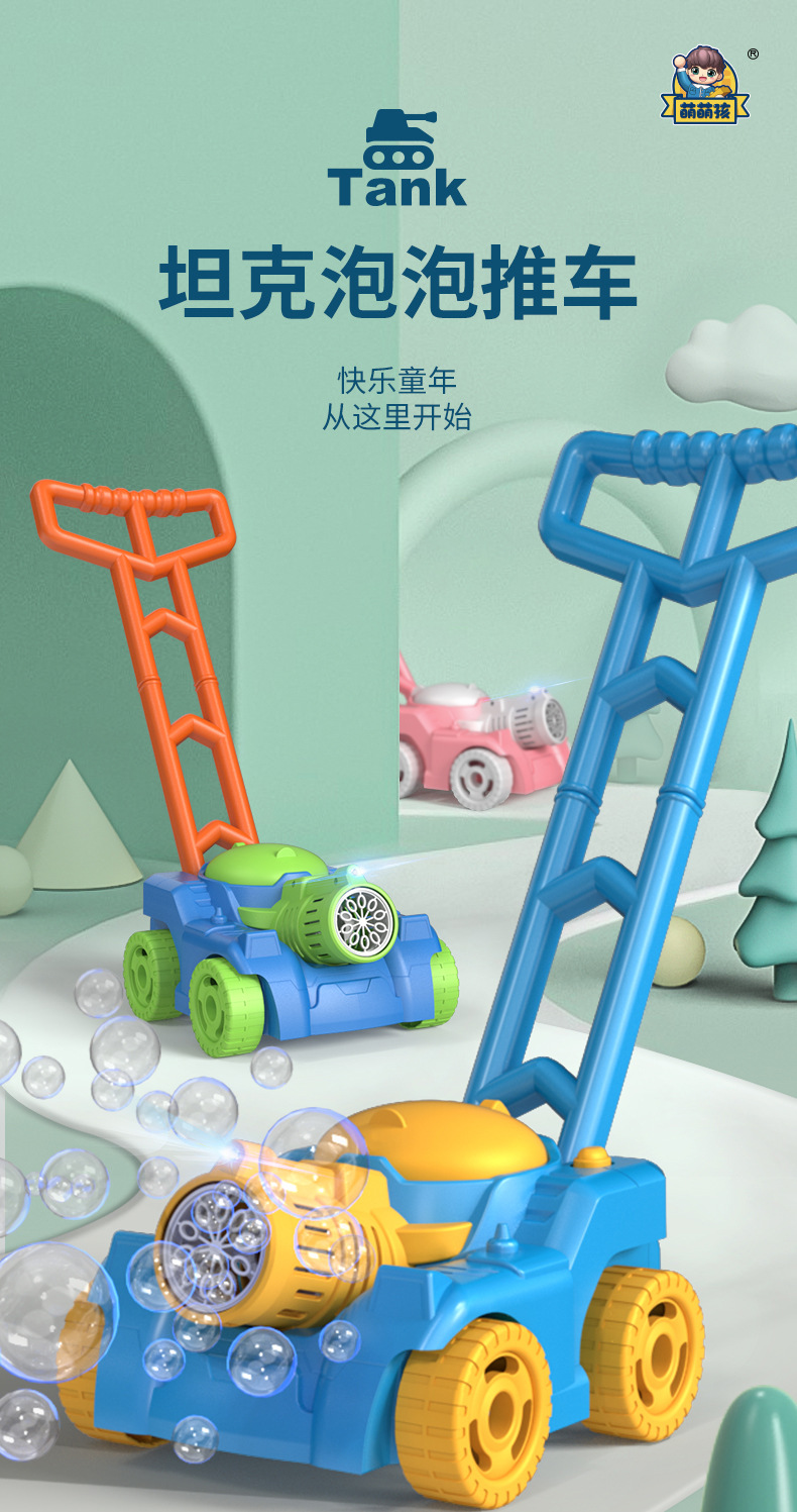 跨境儿童手推坦克泡泡推机电动全自动出泡泡夏季户外公园泡泡玩具