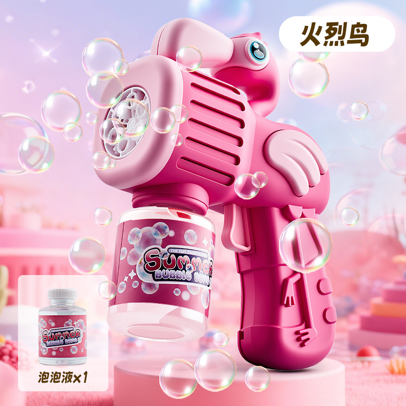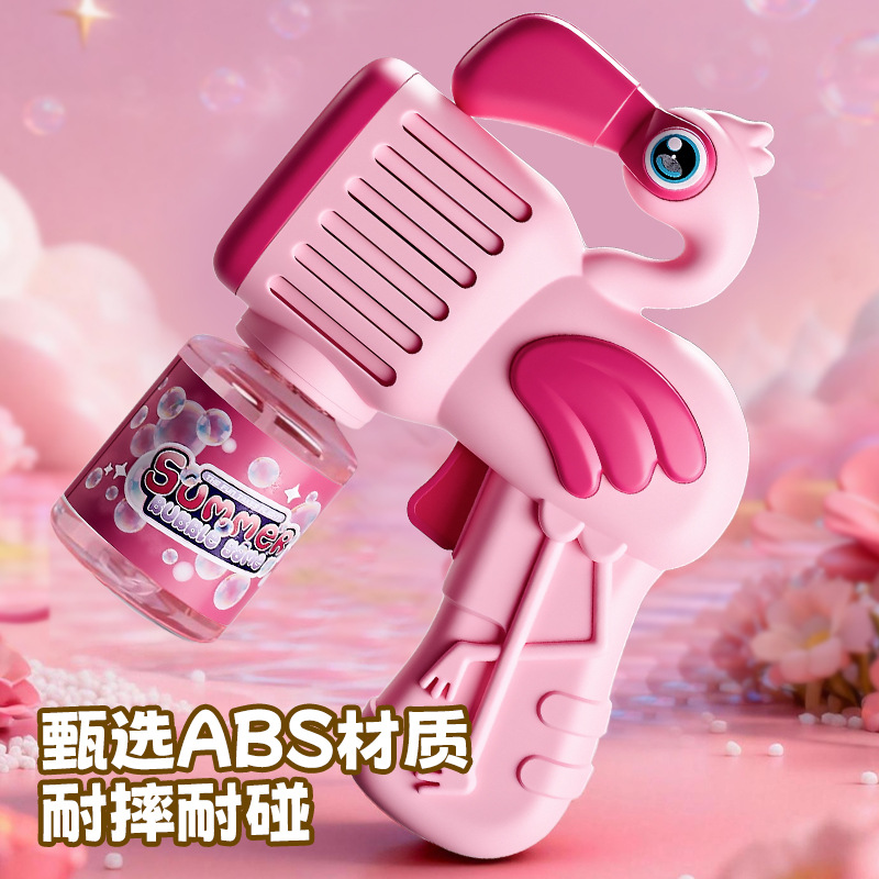 火烈鸟电动泡泡机全自动儿童手持多孔不漏带音效发光加特林泡泡枪