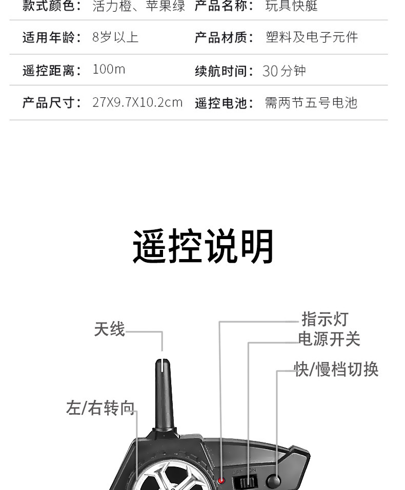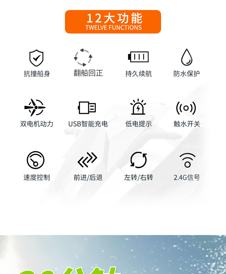 跨境高速遥控快艇双螺旋浆无线电动长续航2.4G水上rc遥控玩具船