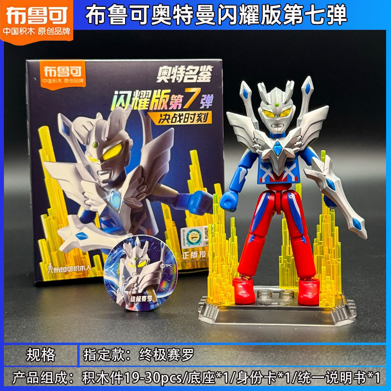 布鲁可奥特曼积木人闪耀版第七弹7代究极赛罗皇帝贝利亚发光盲盒