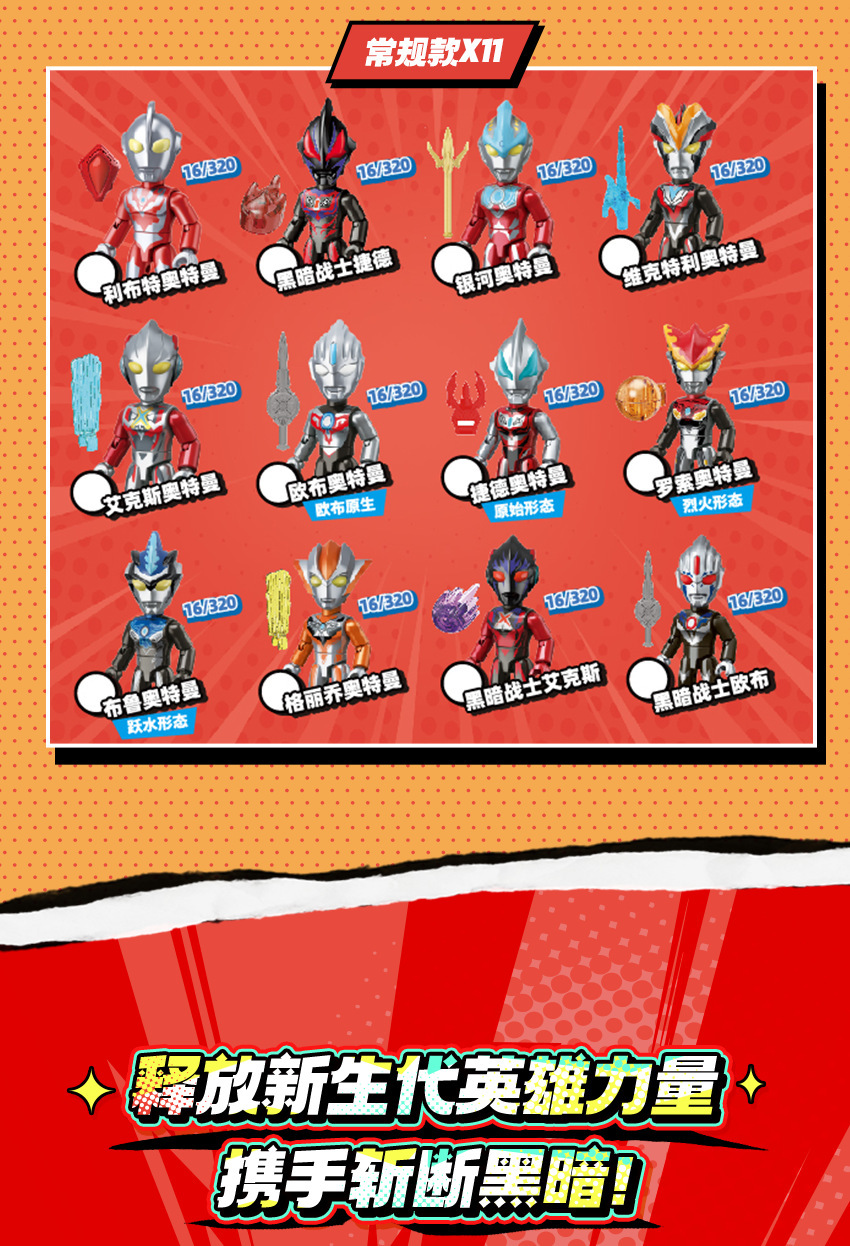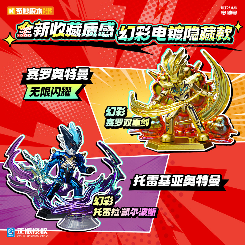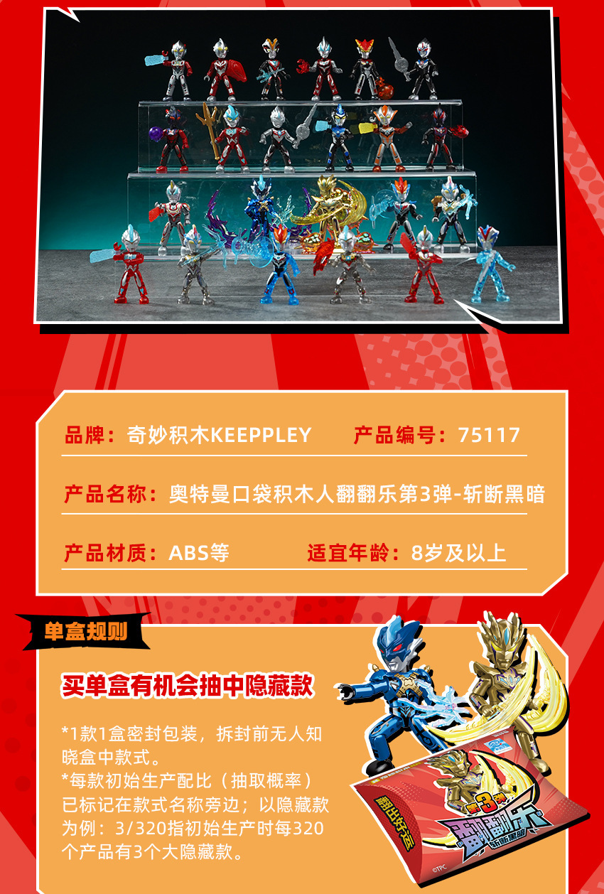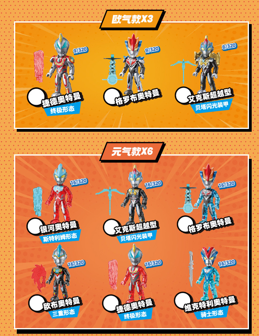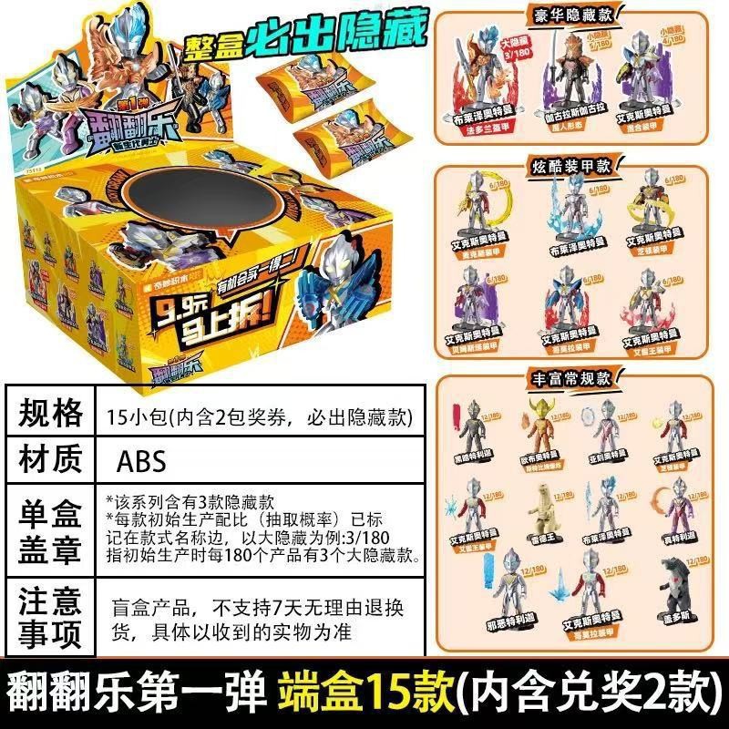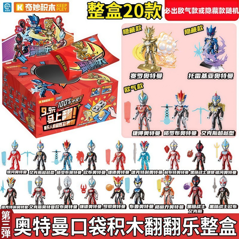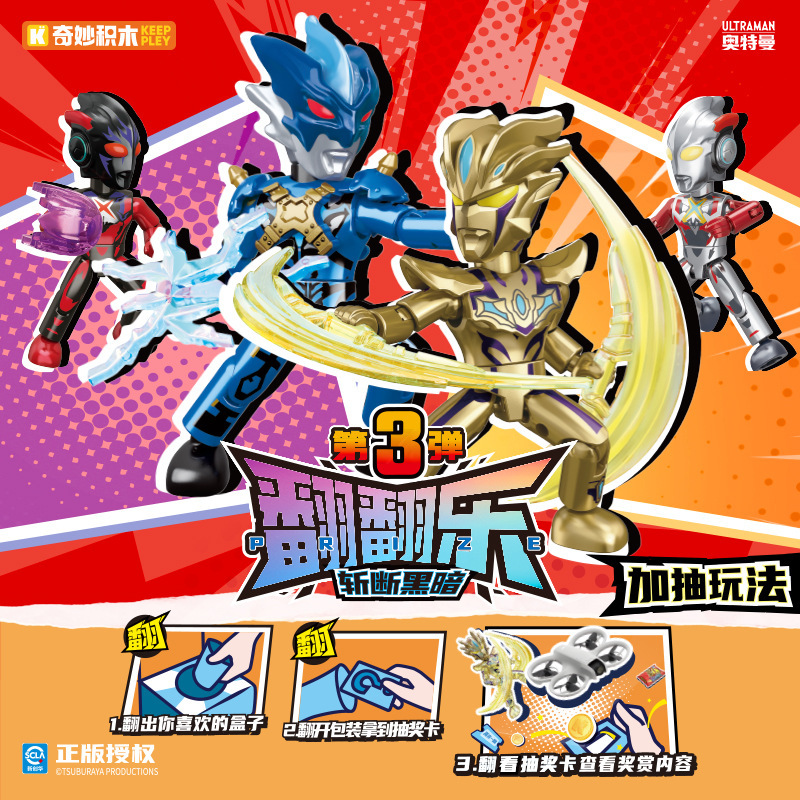 奇妙积木曼奥特翻翻乐盲盒第三弹玩具男孩赛罗积木人撕撕抽抽乐3
