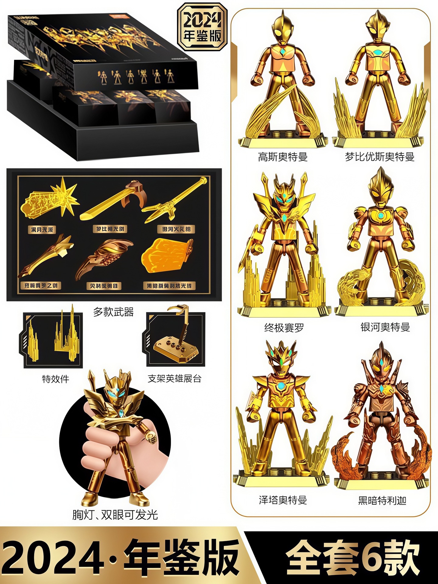 布鲁可积木人2024限定版奥特曼年鉴版金礼盒拼装发光儿童礼物玩具