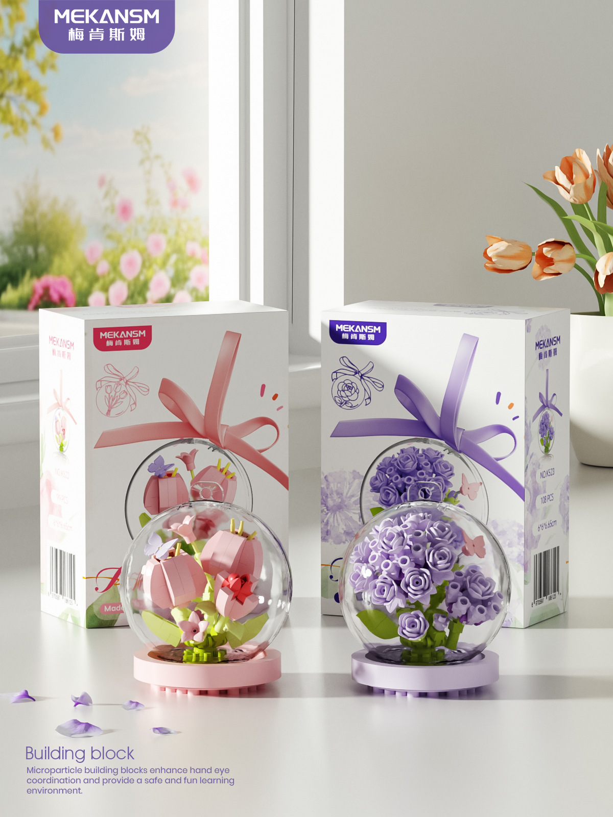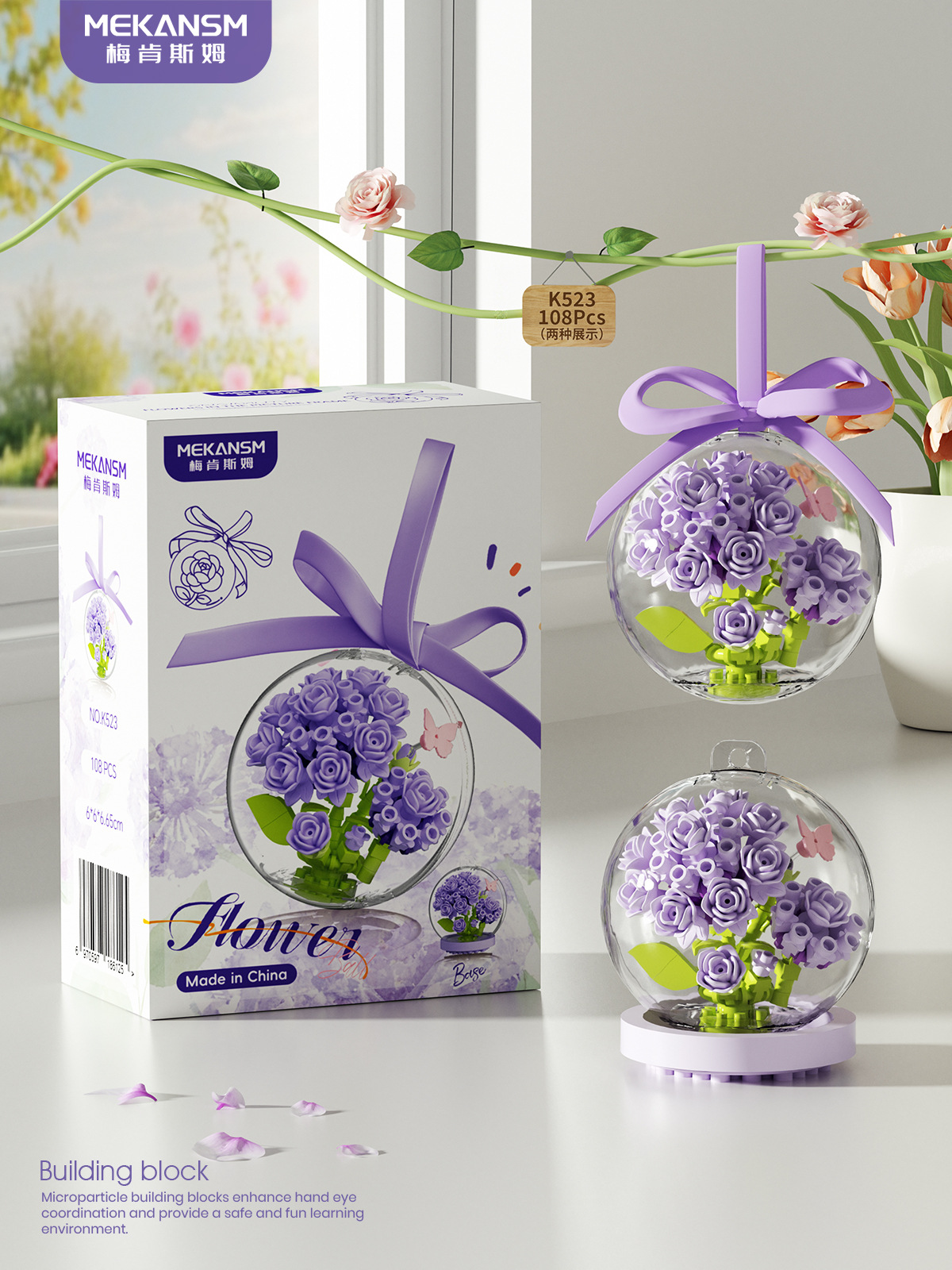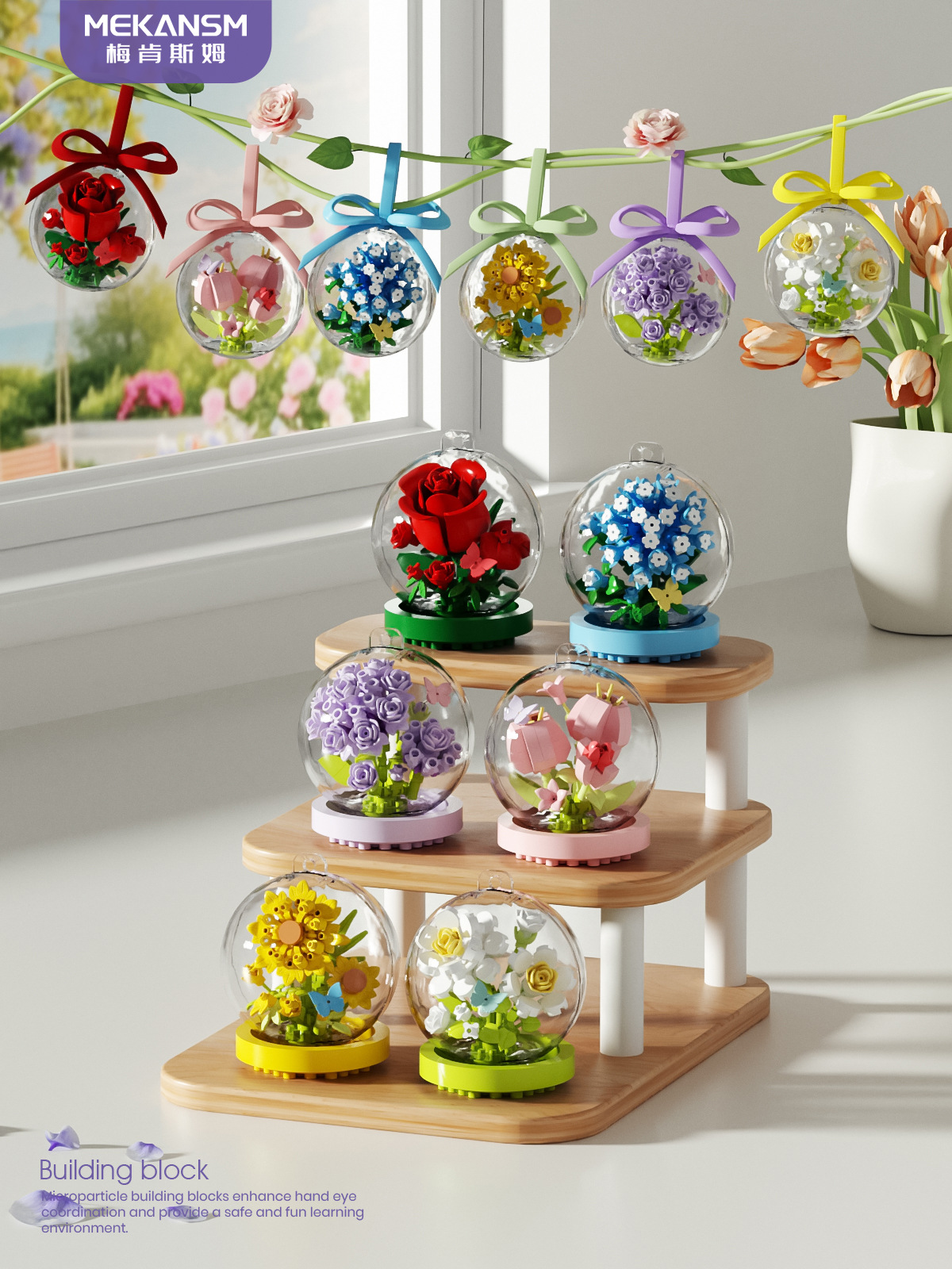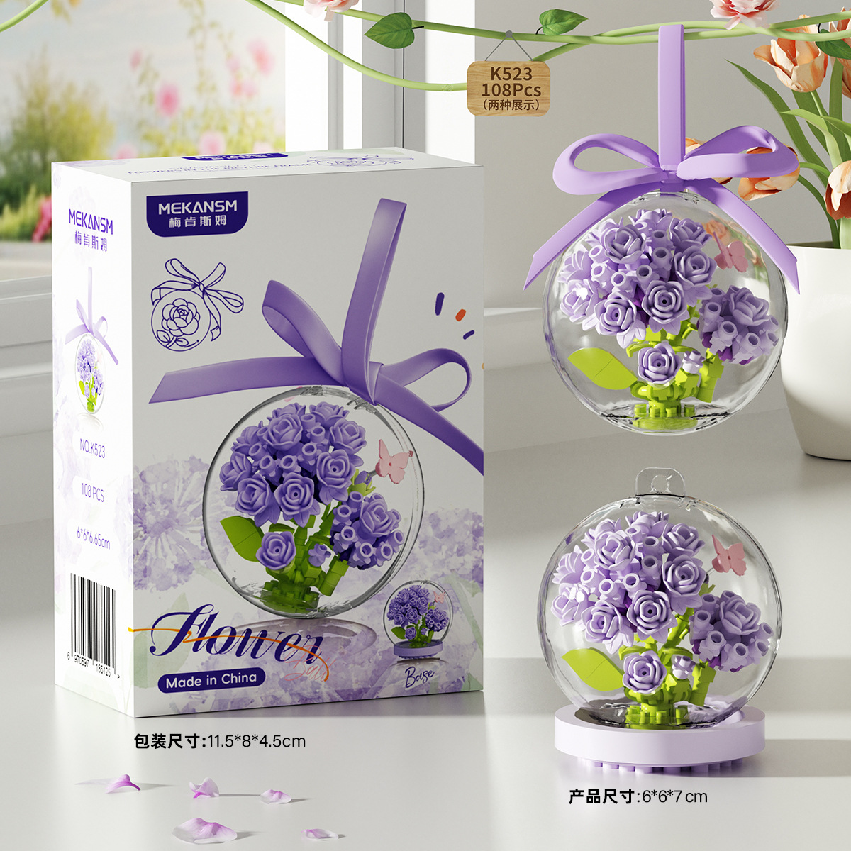 跨境批发代发K520-25星辰花愿水晶球积木女孩益智拼装小玩具花束