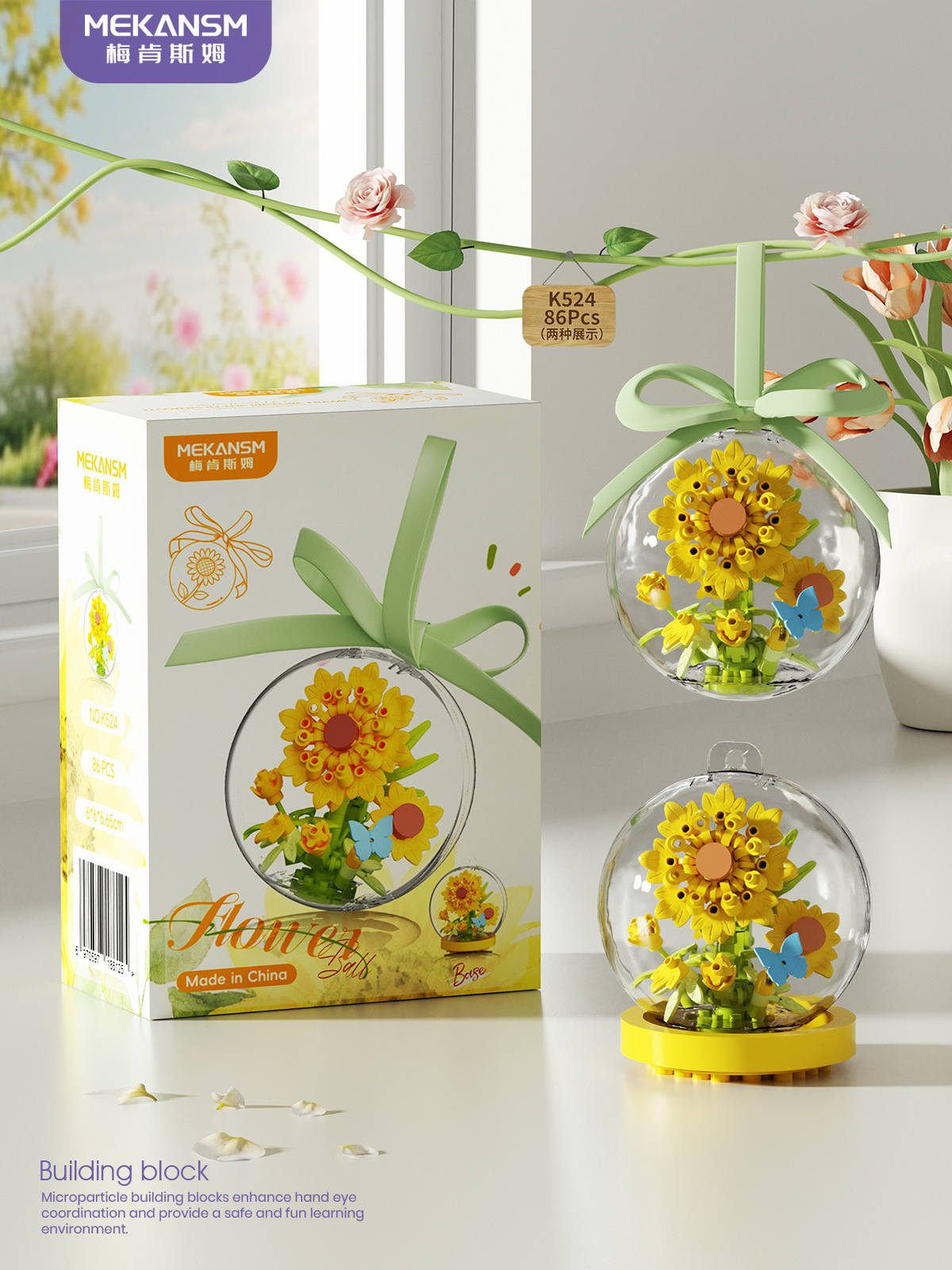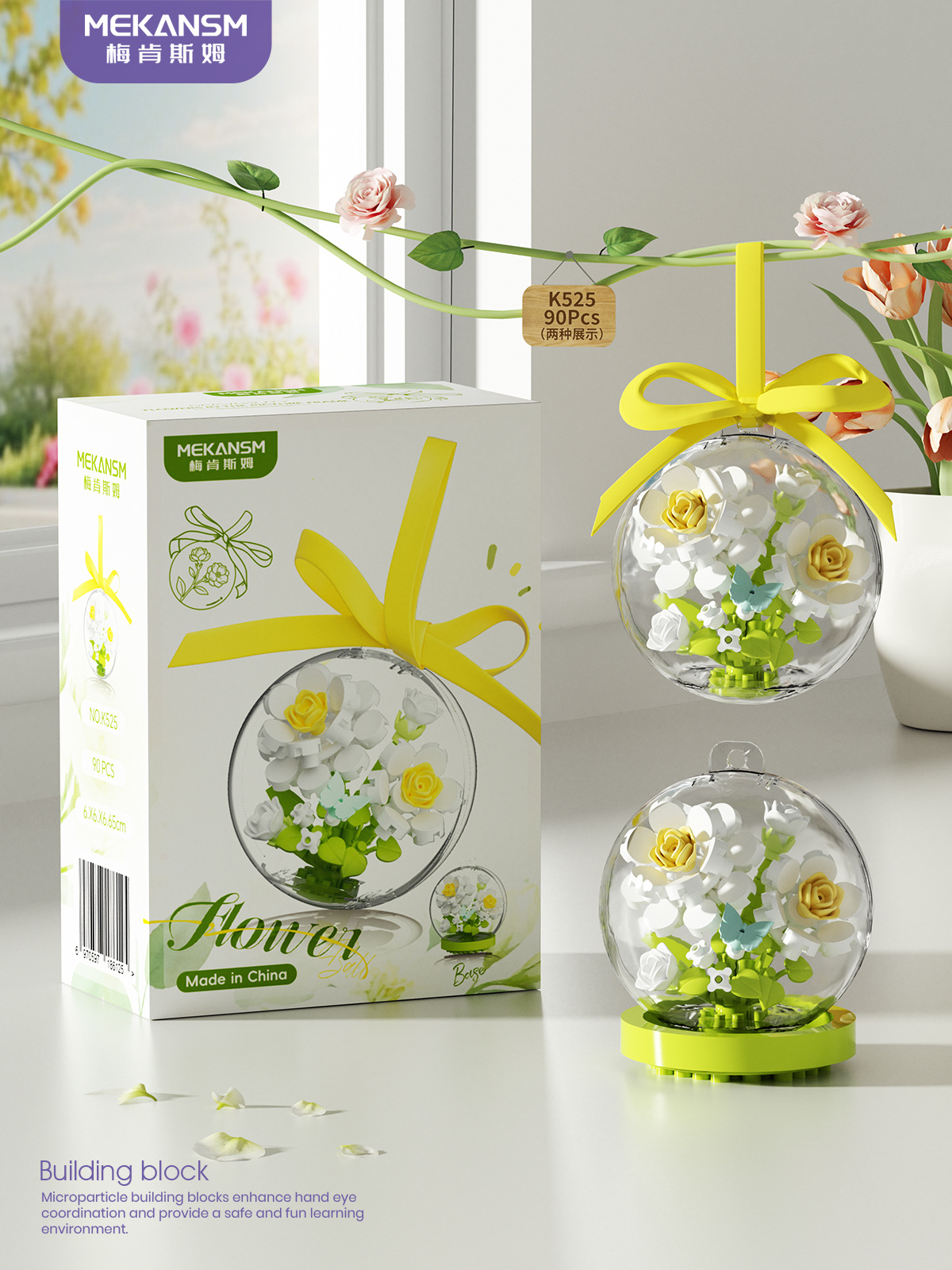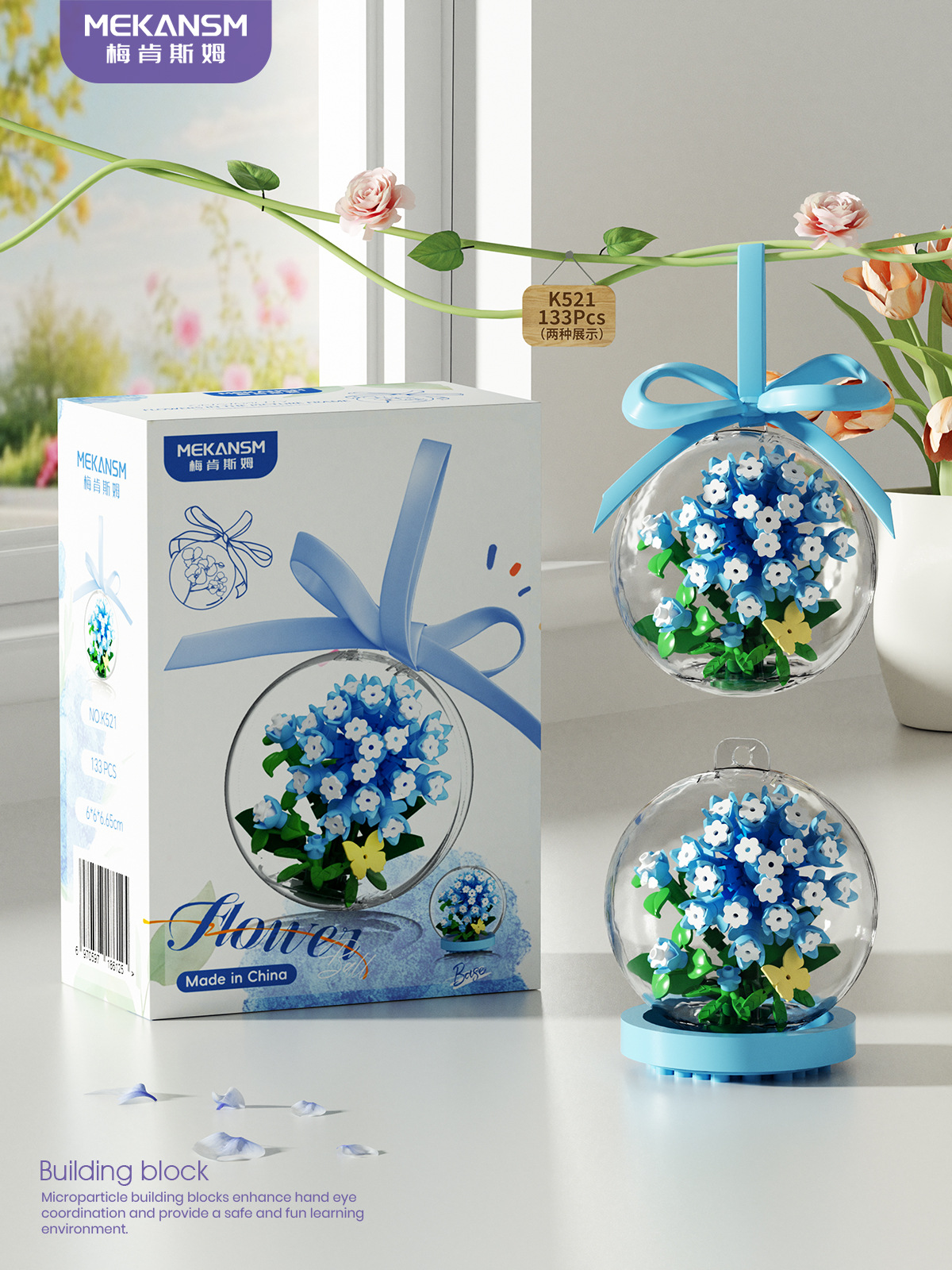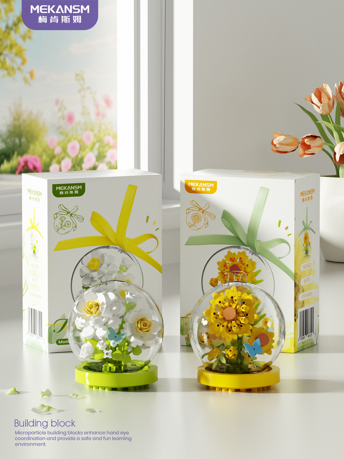 跨境批发代发K520-25星辰花愿水晶球积木女孩益智拼装小玩具花束