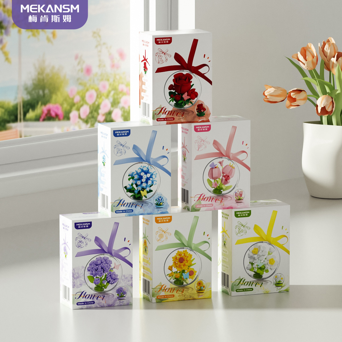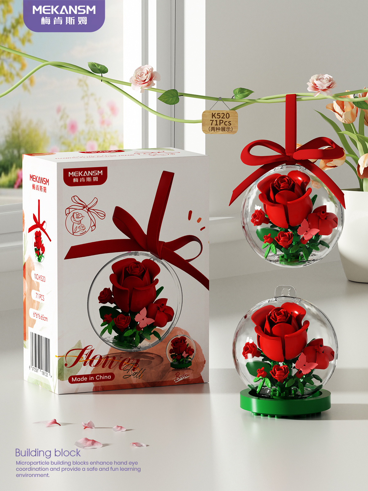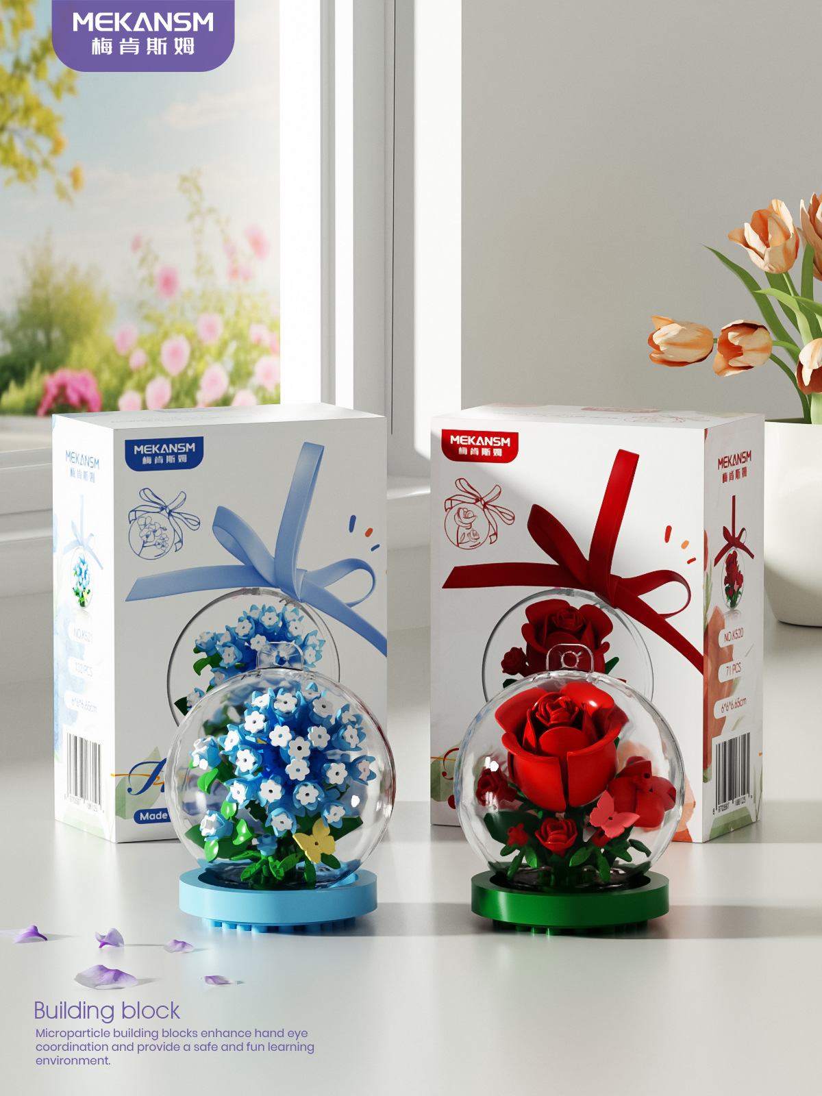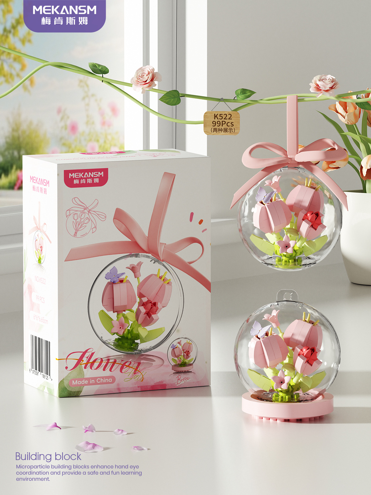 跨境批发代发K520-25星辰花愿水晶球积木女孩益智拼装小玩具花束