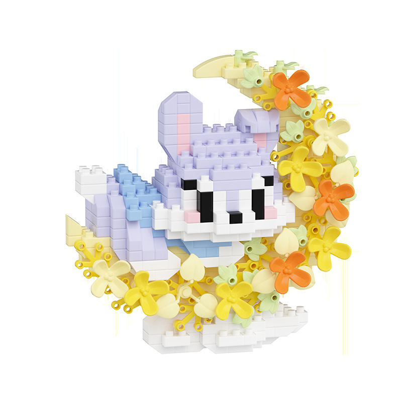 chao lecon under the moonlight by the flowers cartoon cute pet building blocks assembly children‘s toys compatible with lego ornaments cross-border wholesale