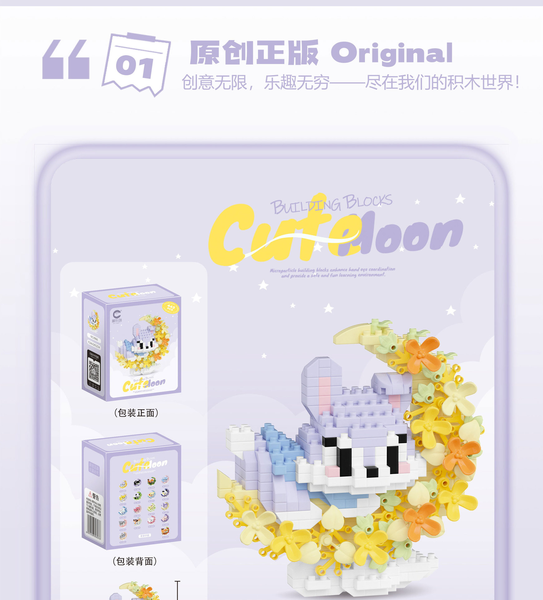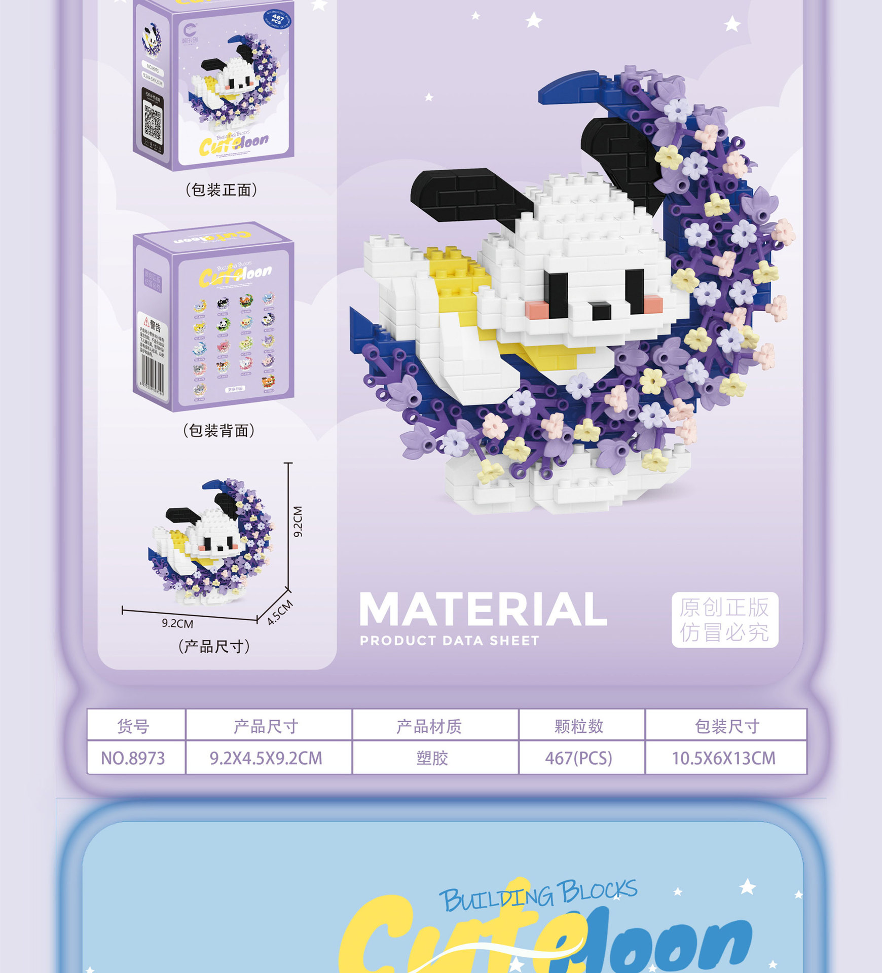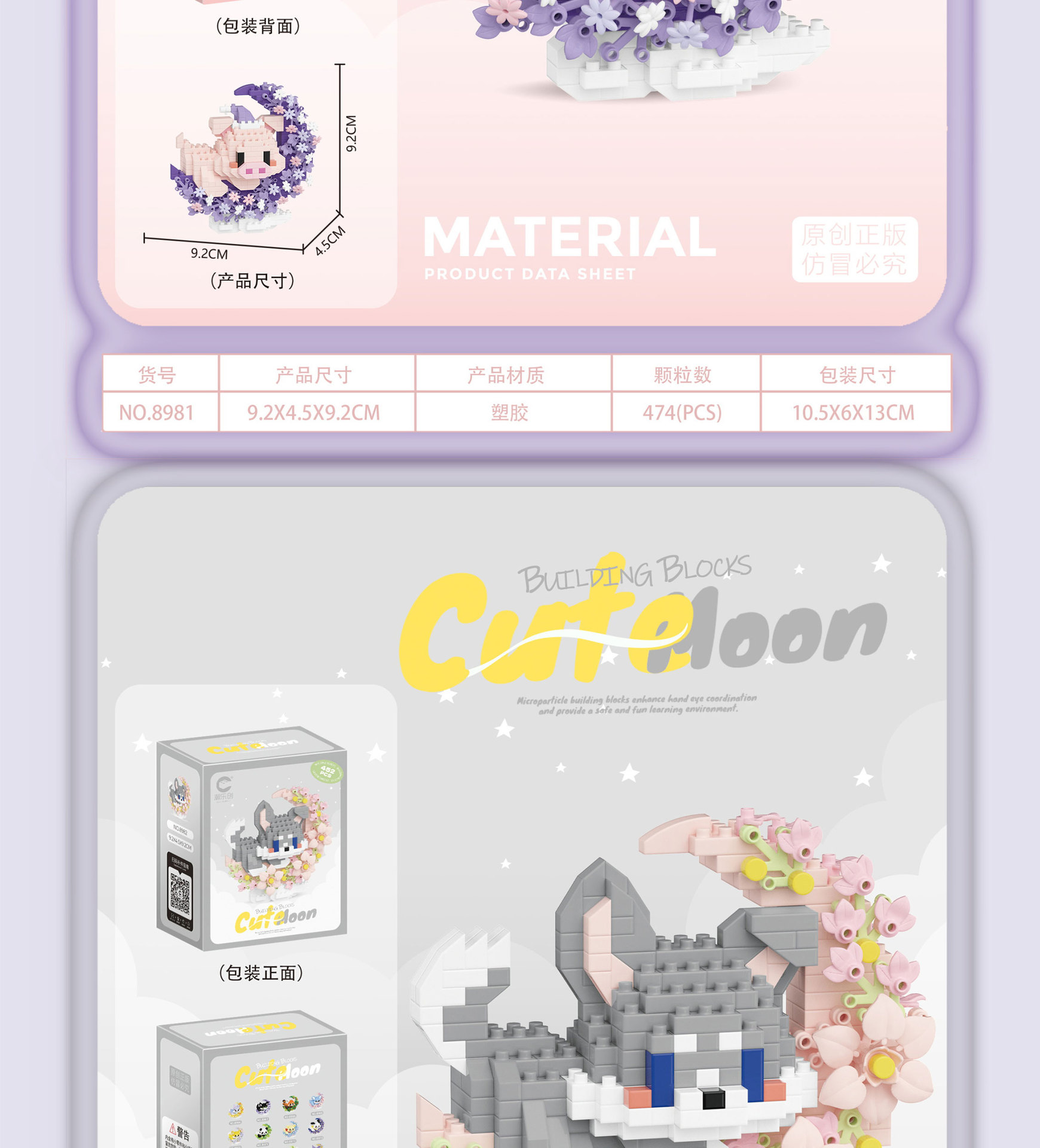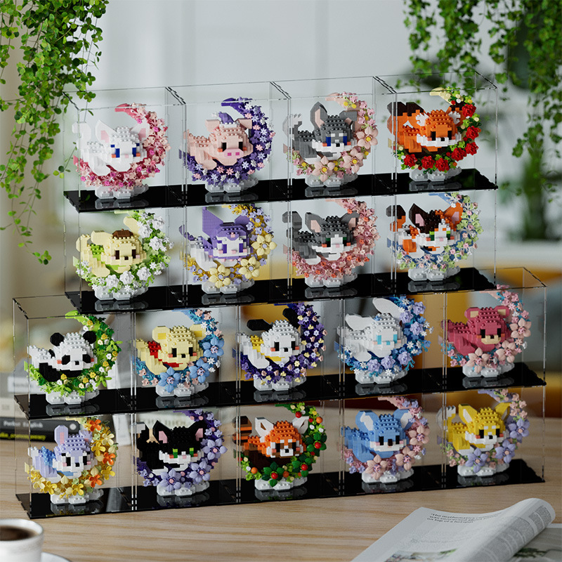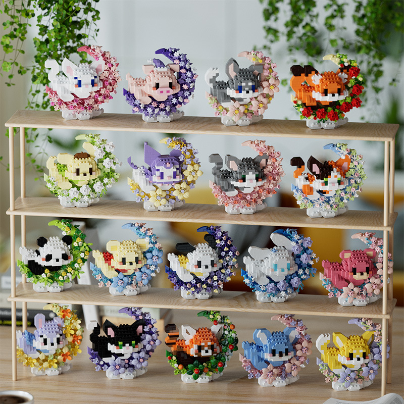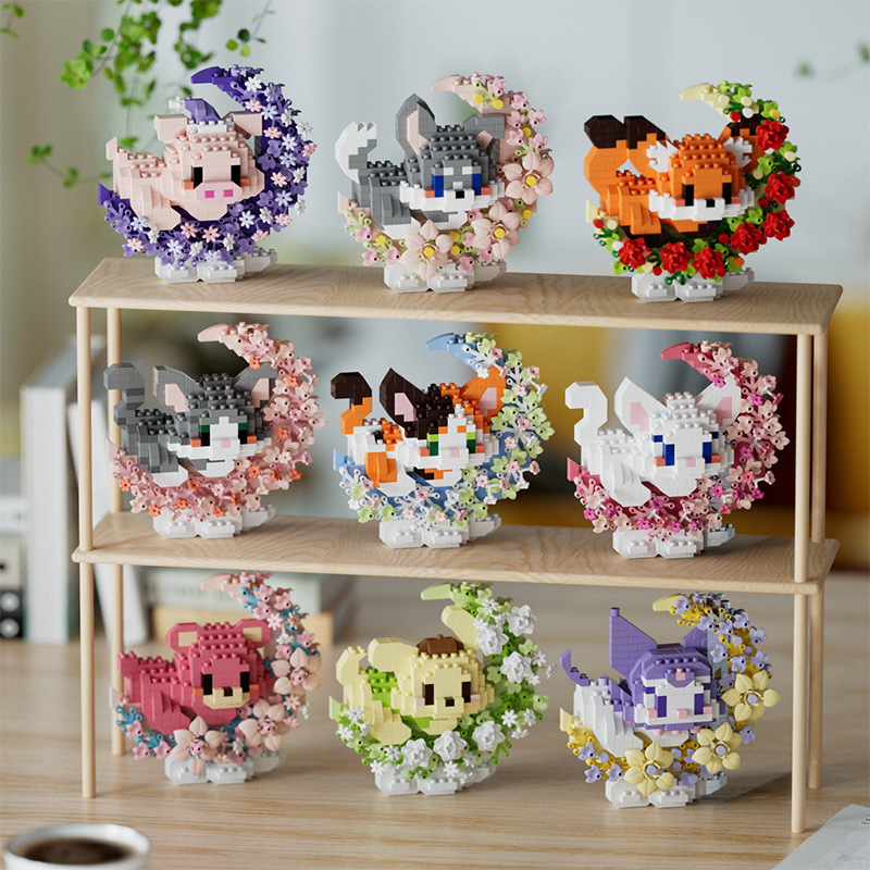潮乐创花前月下卡通萌宠积木拼装儿童玩具兼容乐高摆件跨境批发