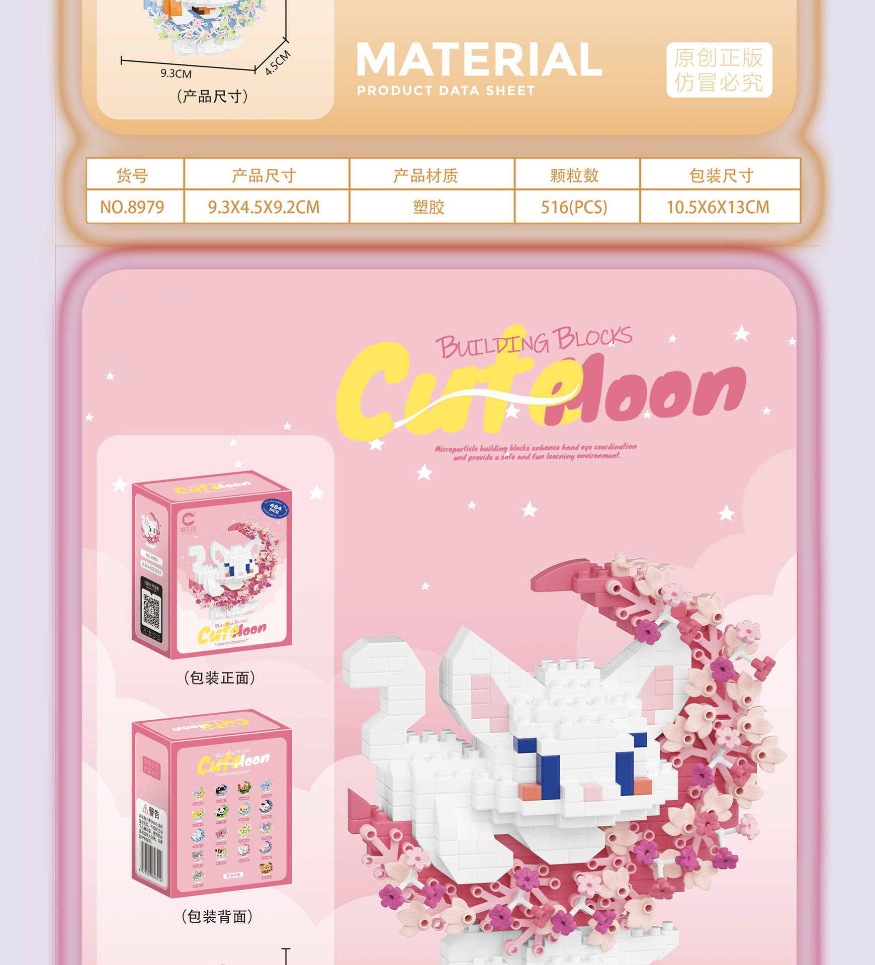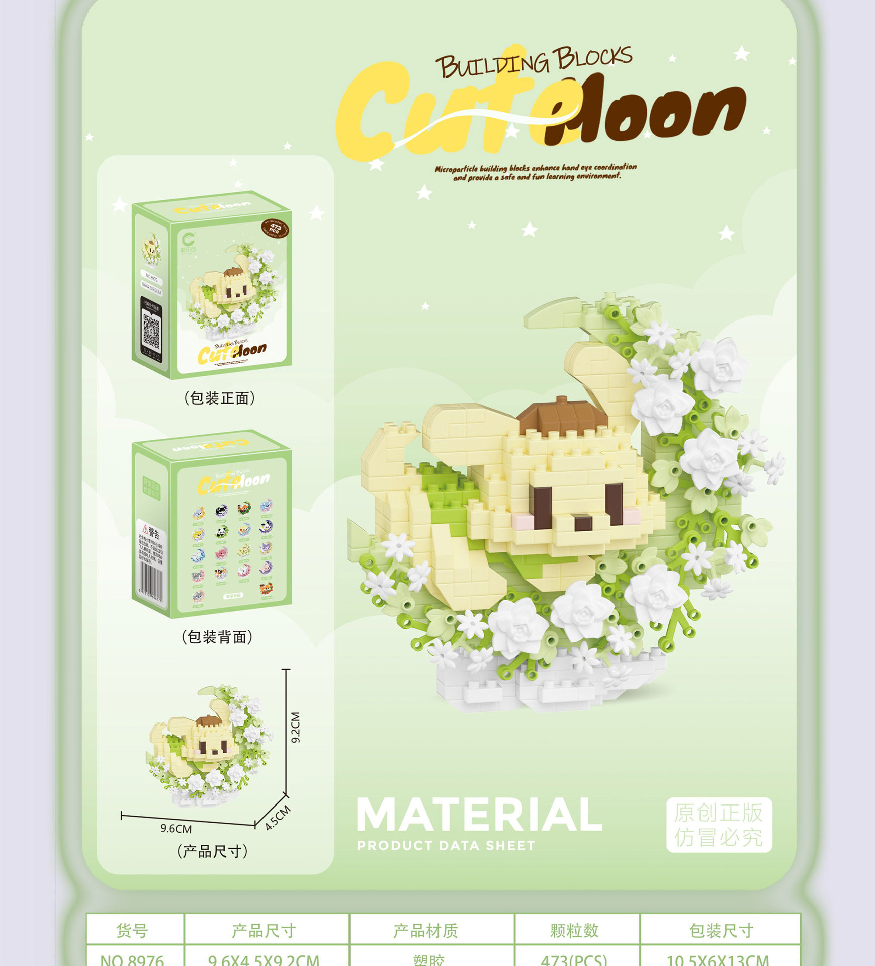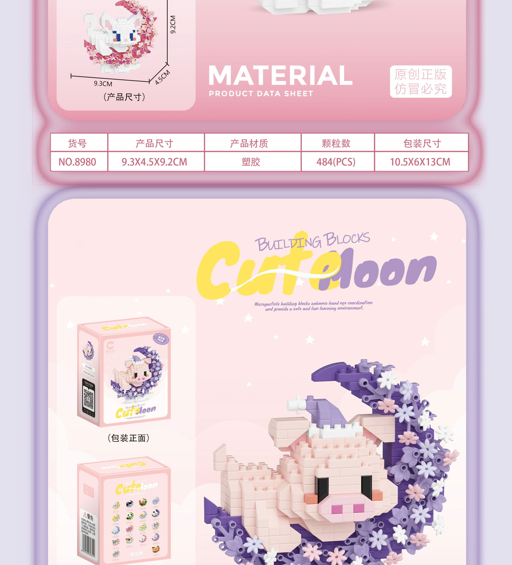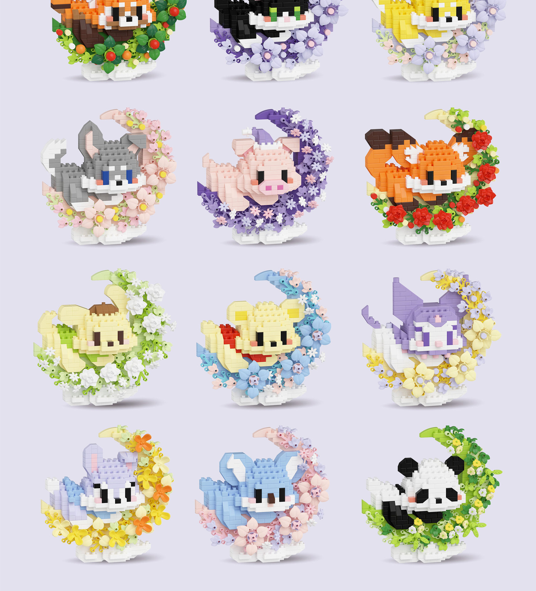 潮乐创花前月下卡通萌宠积木拼装儿童玩具兼容乐高摆件跨境批发