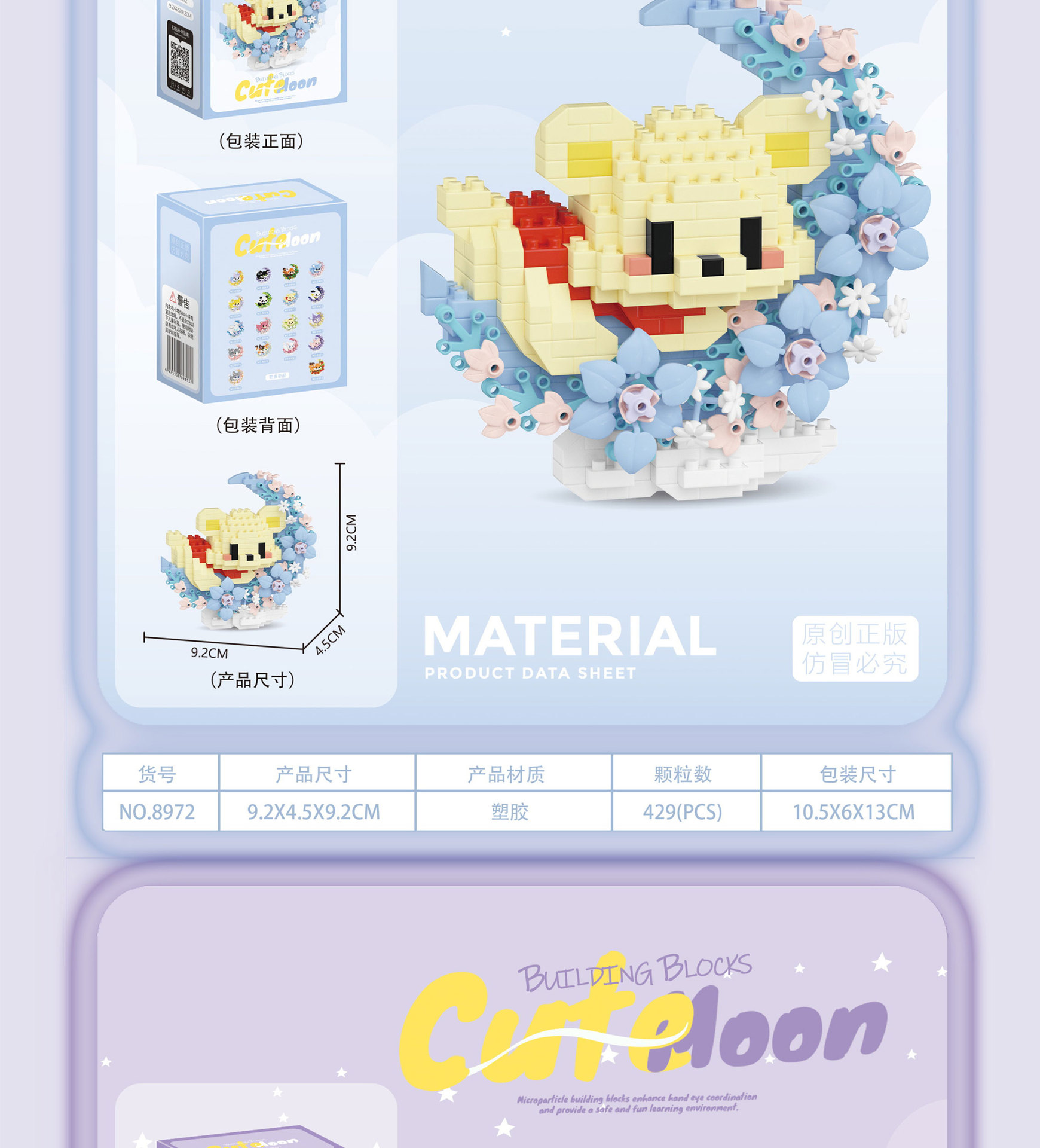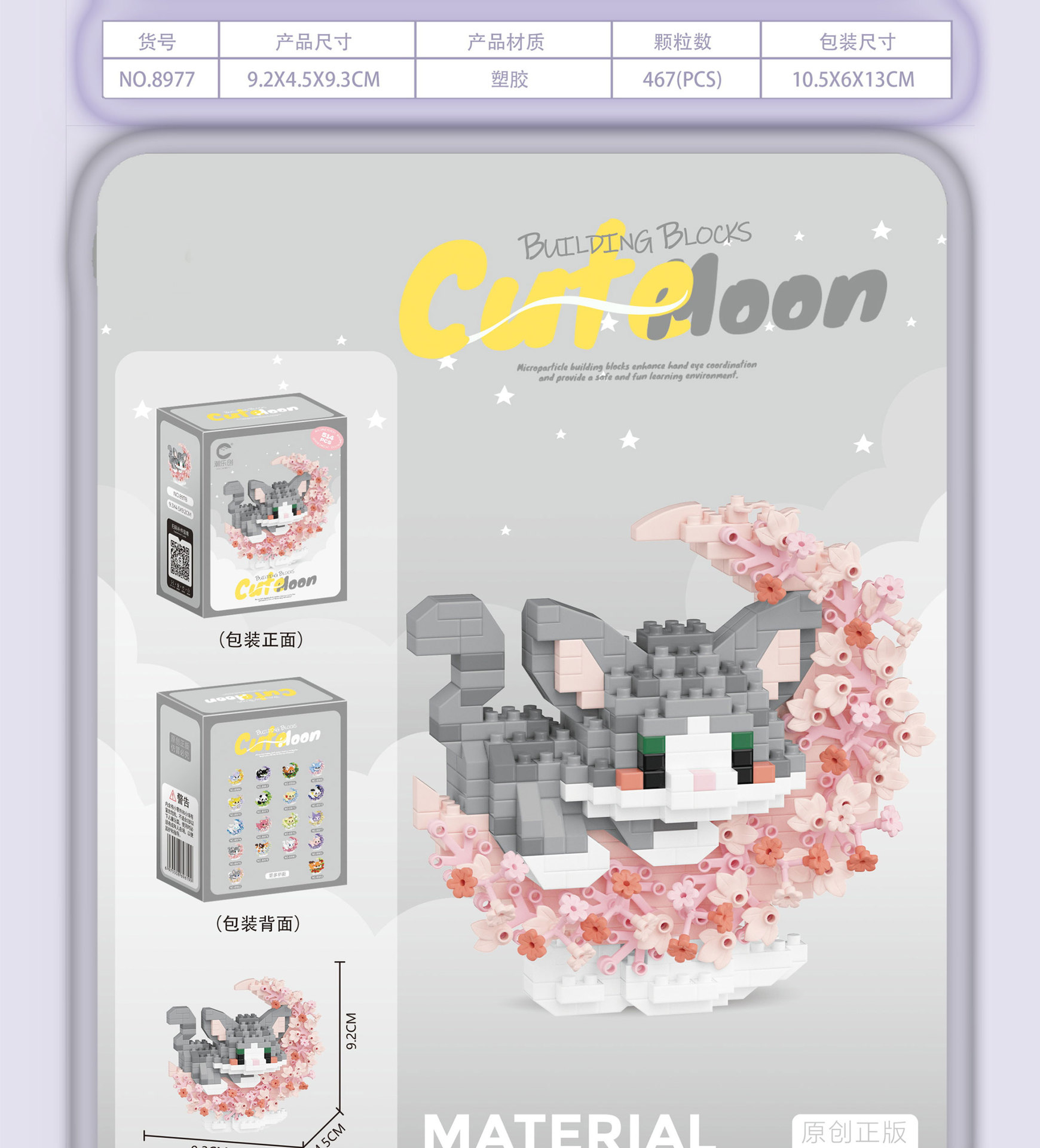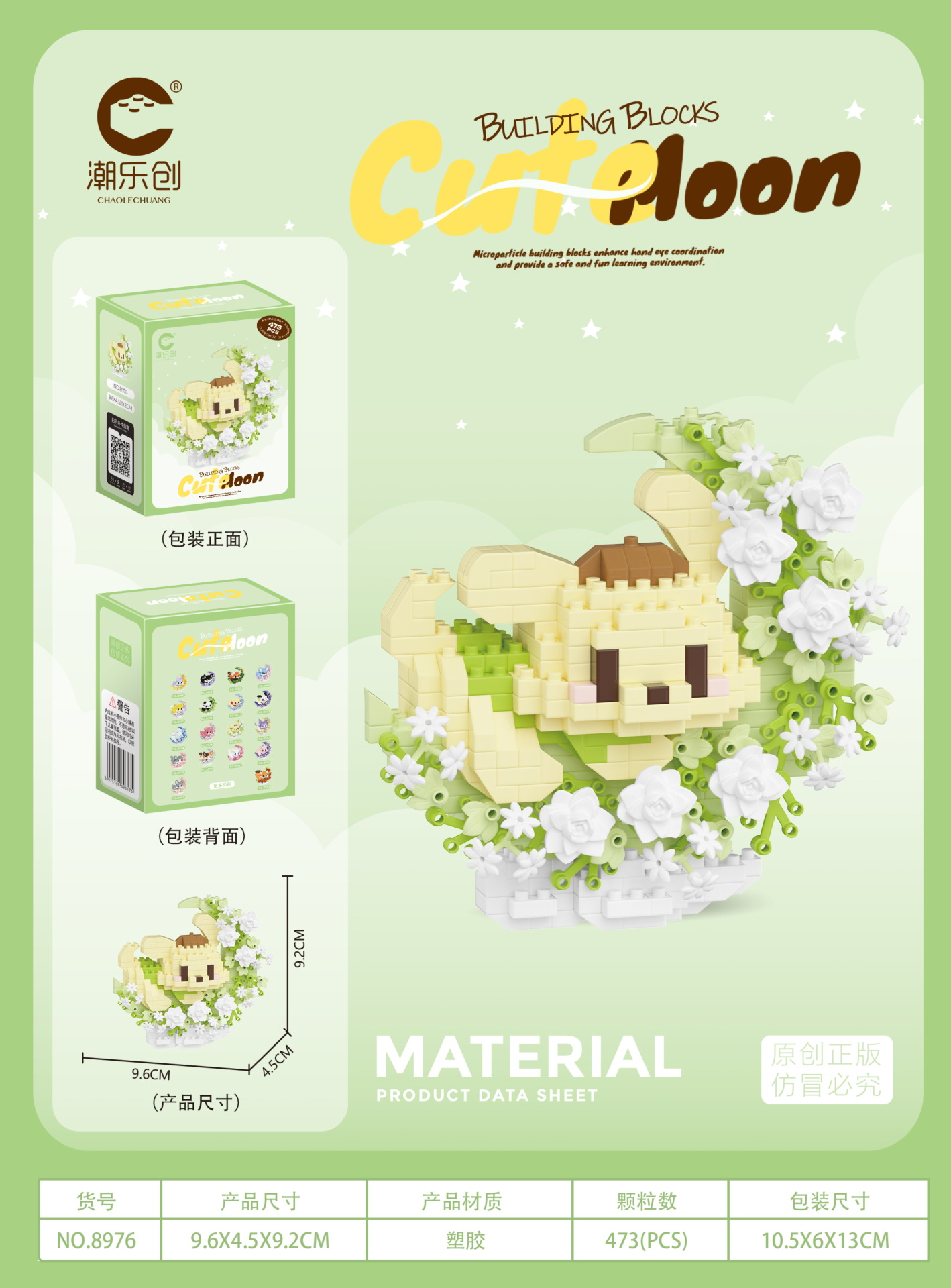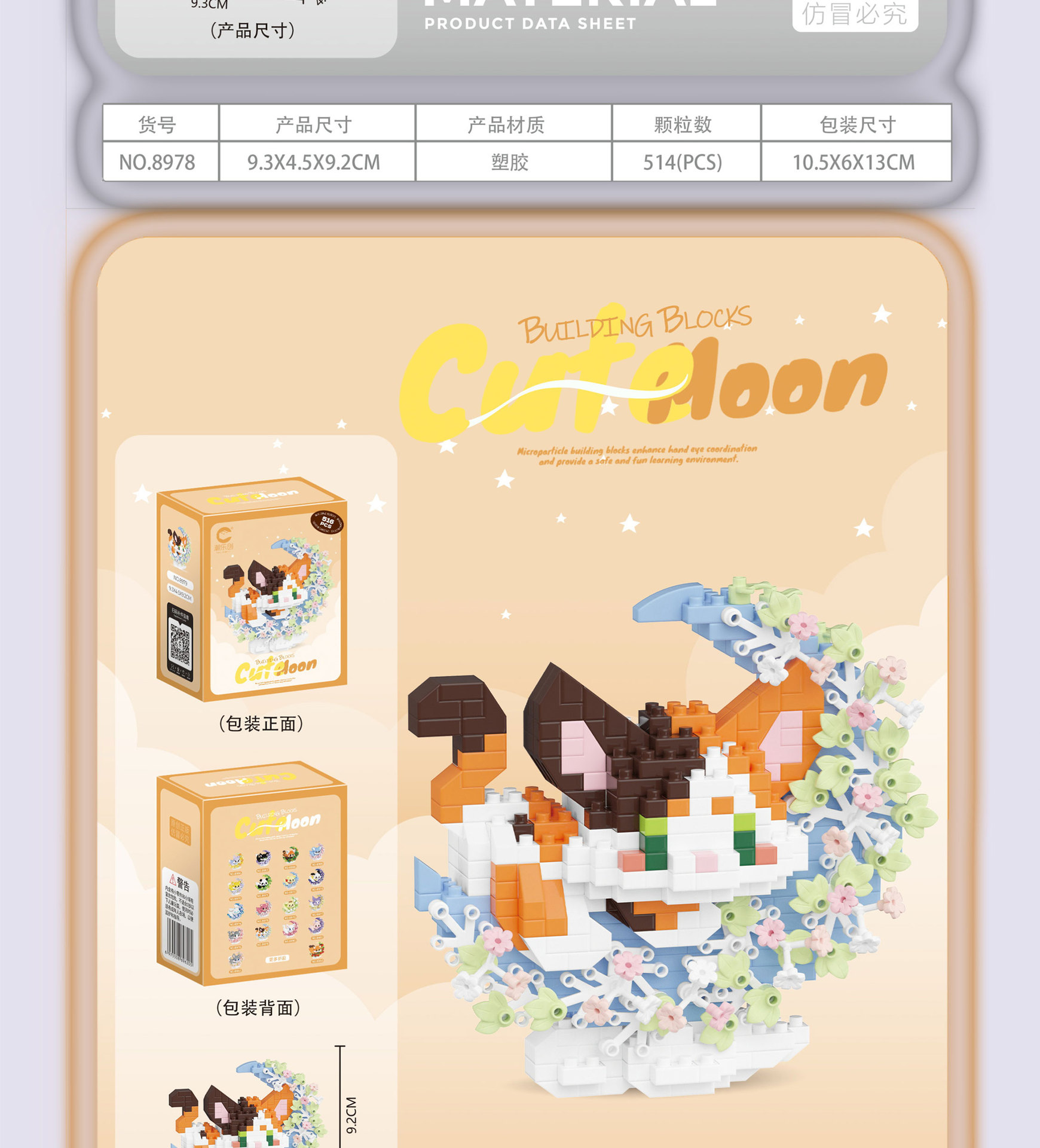 潮乐创花前月下卡通萌宠积木拼装儿童玩具兼容乐高摆件跨境批发