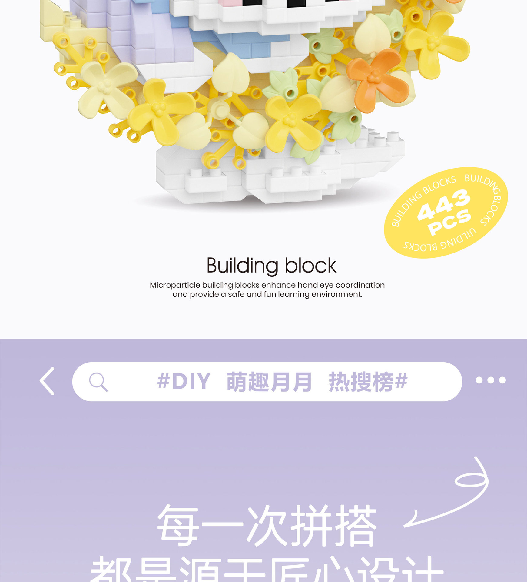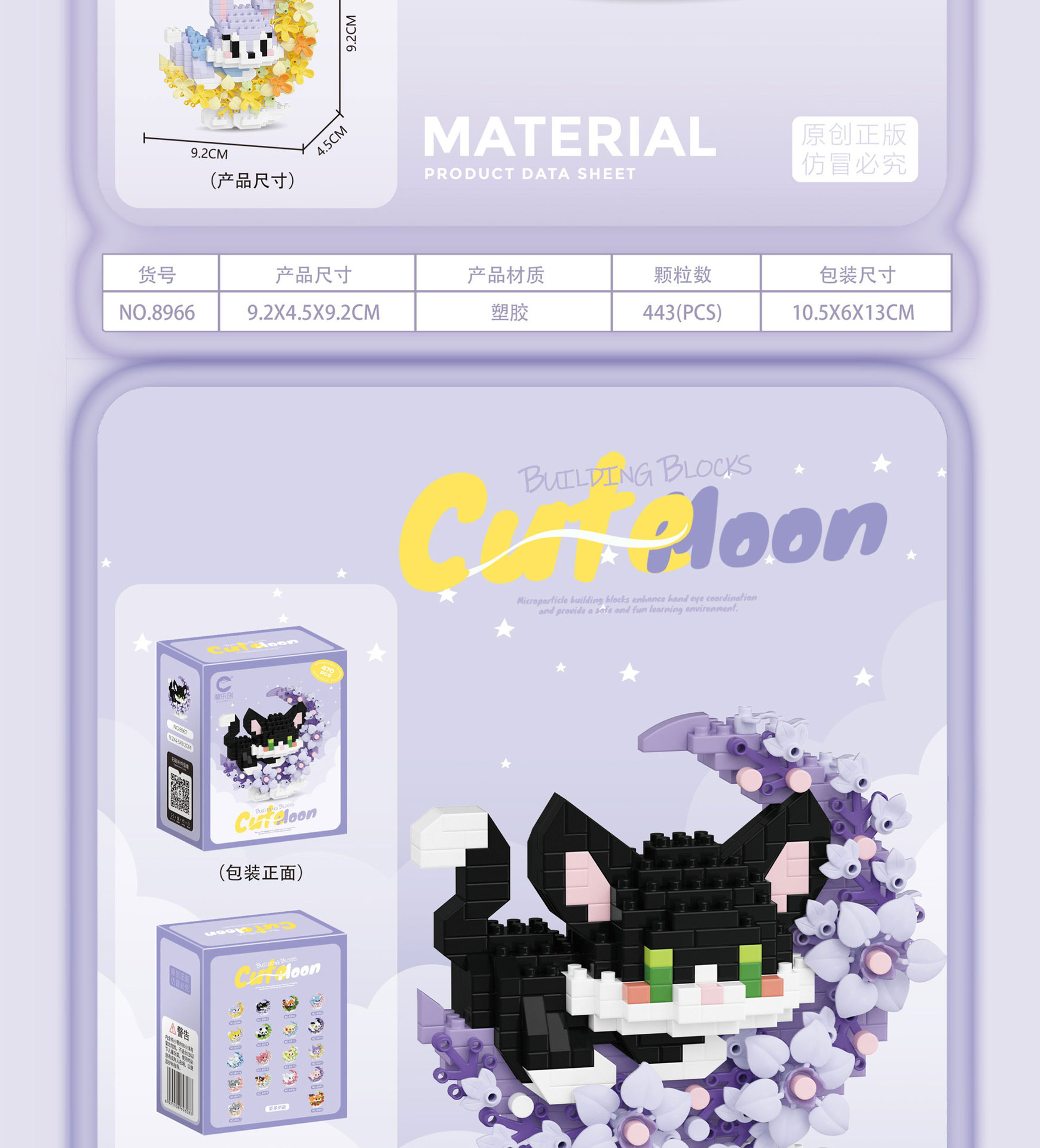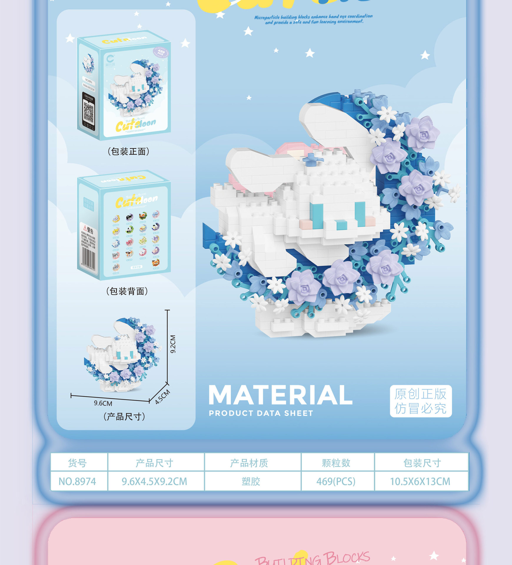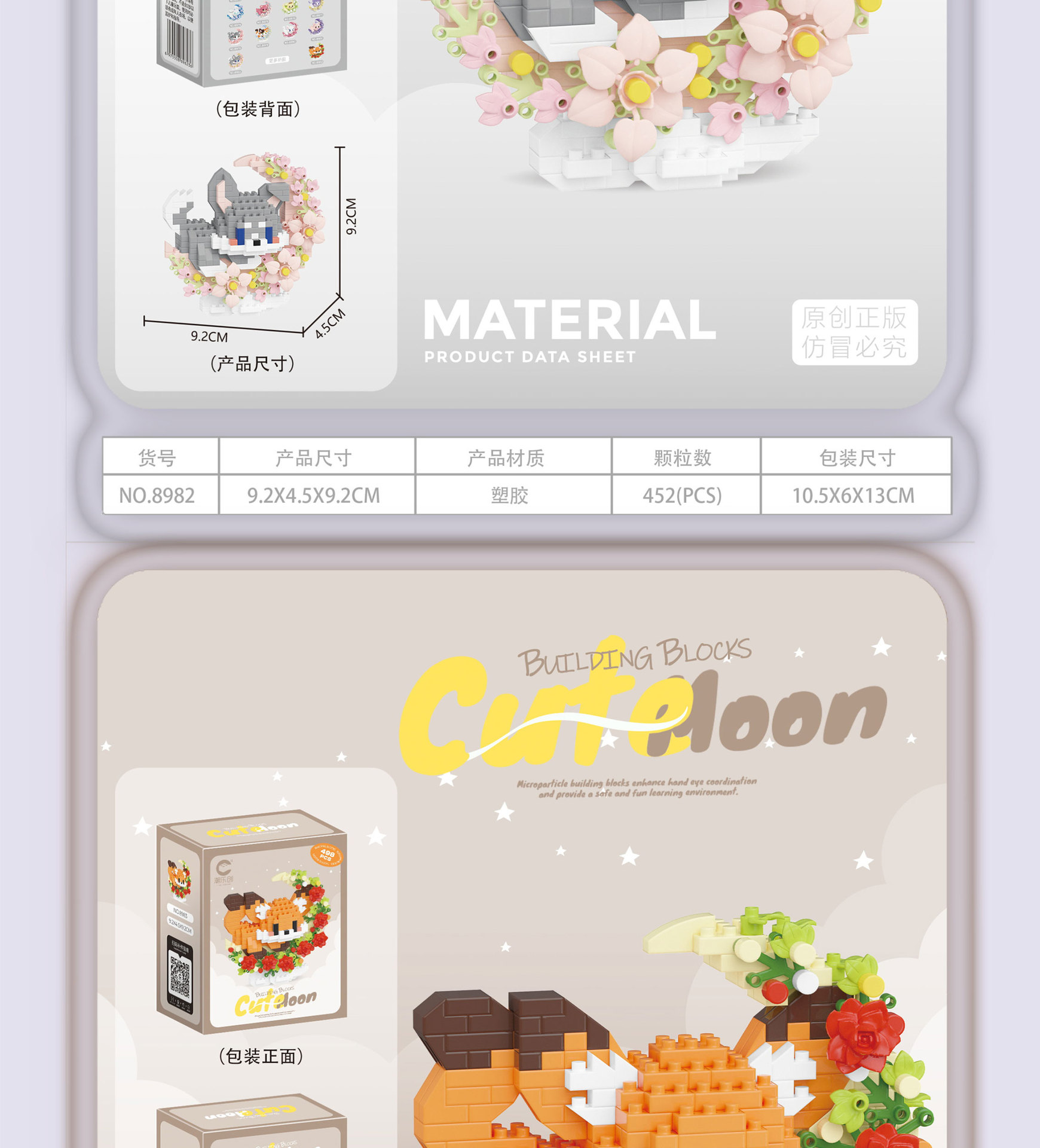潮乐创花前月下卡通萌宠积木拼装儿童玩具兼容乐高摆件跨境批发