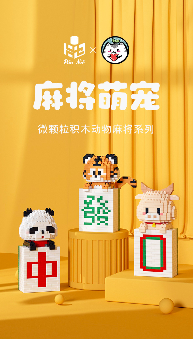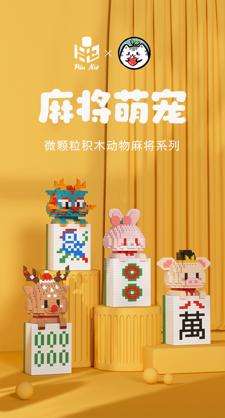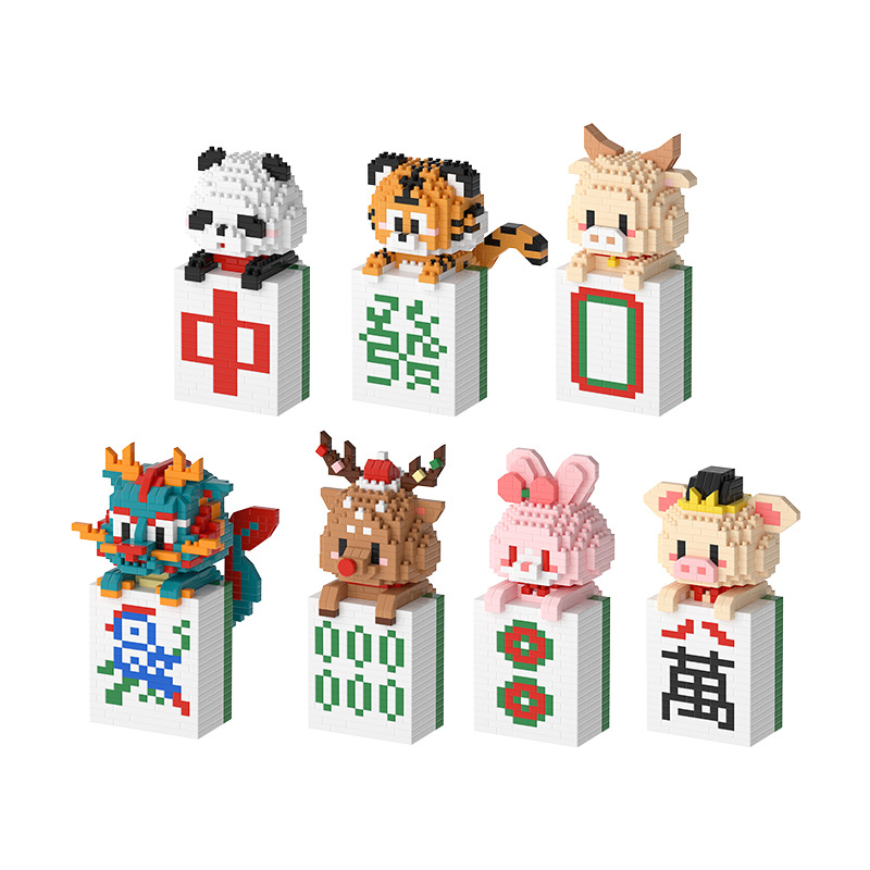 微小颗粒拼装积木玩具益智拼图动物麻将发财摆件玩具男孩女孩礼物