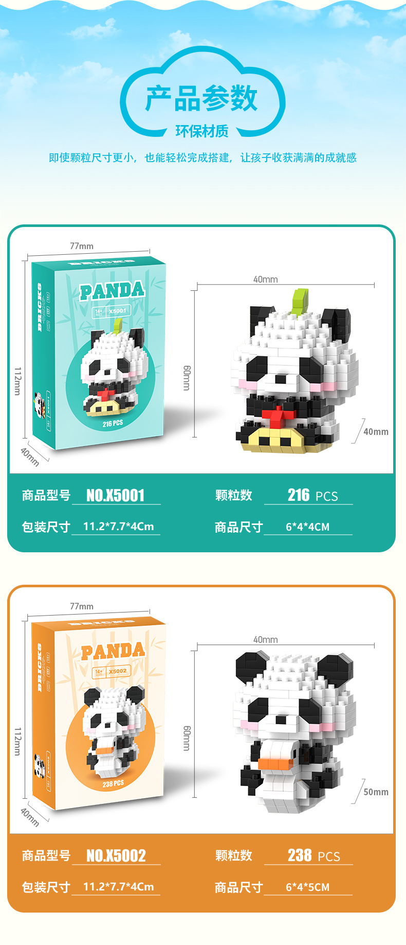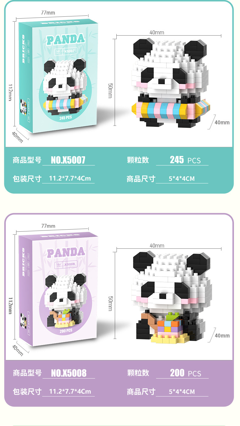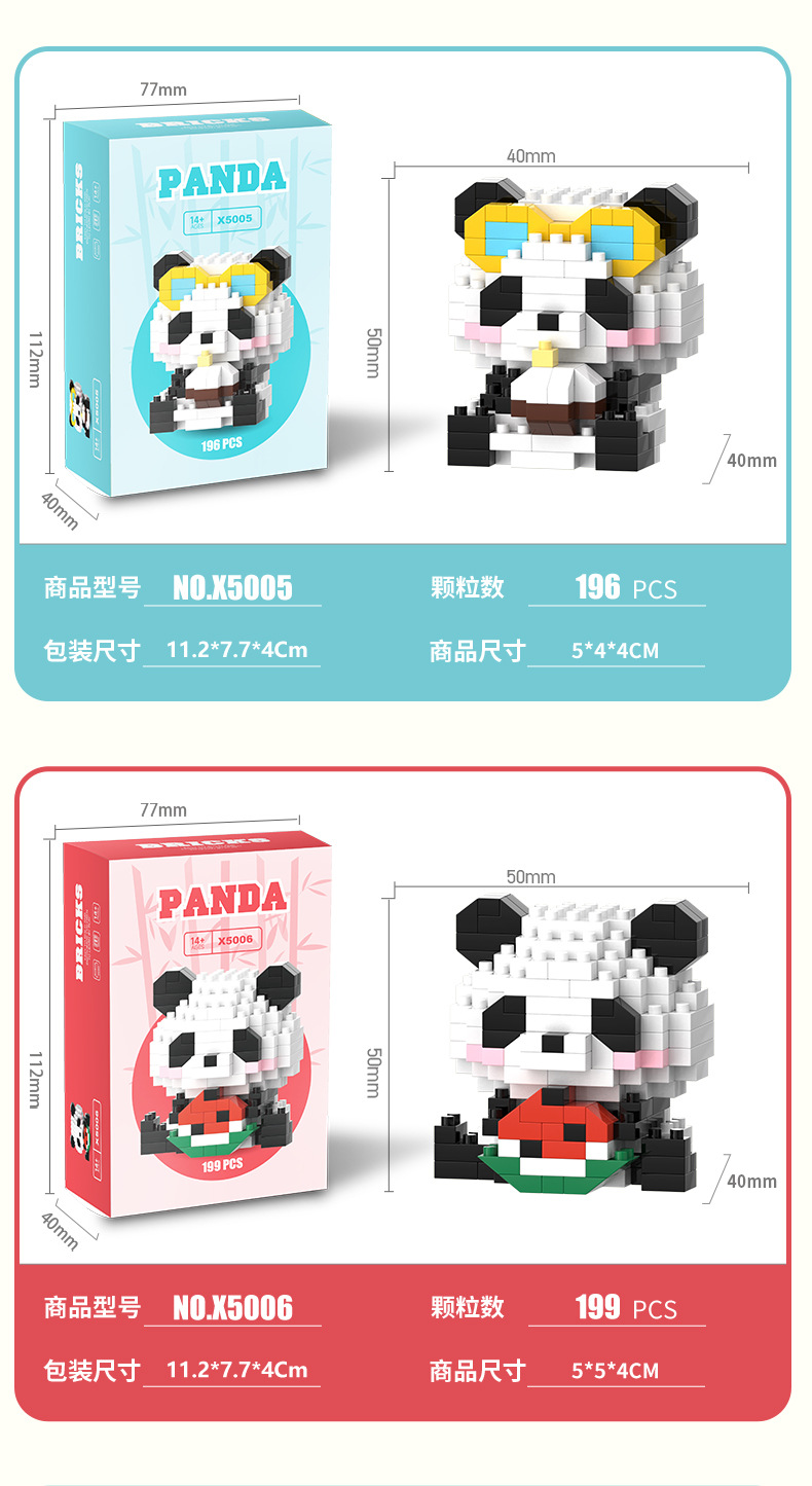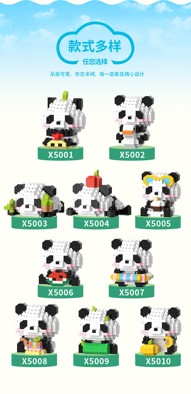 兼容乐高熊猫积木花花微颗粒积木公仔益智拼装积木礼物玩具批发