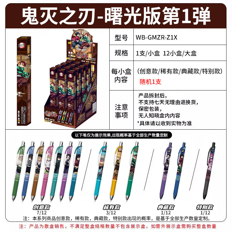 鬼灭之刃中性笔盲盒曙光版弹联名按动笔动漫学生周边文具其他黑色