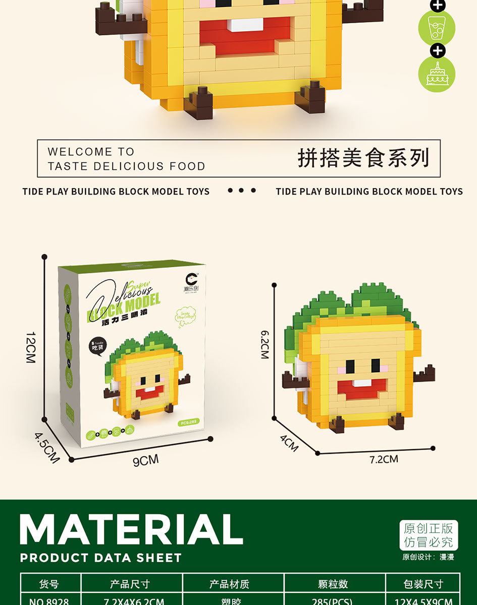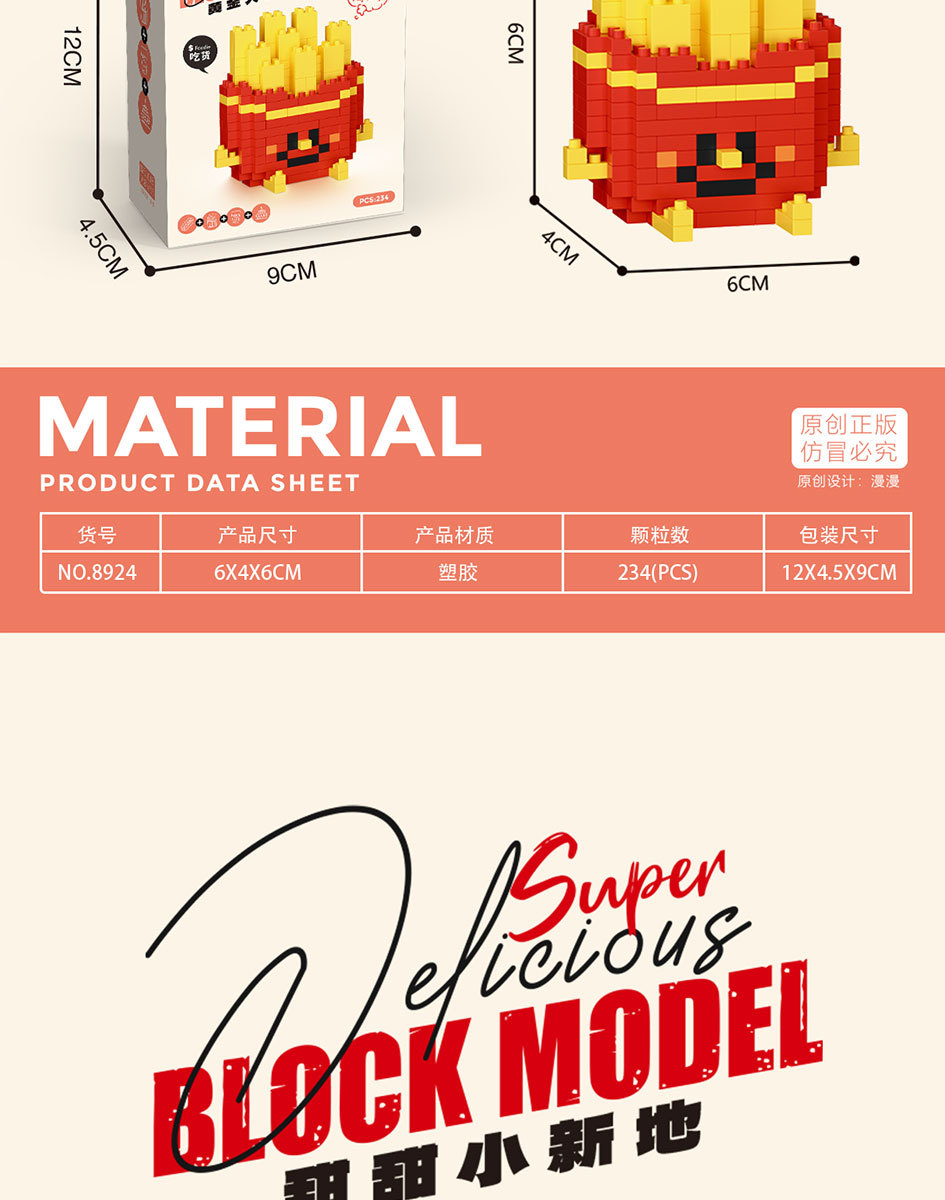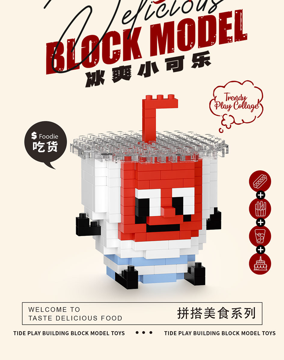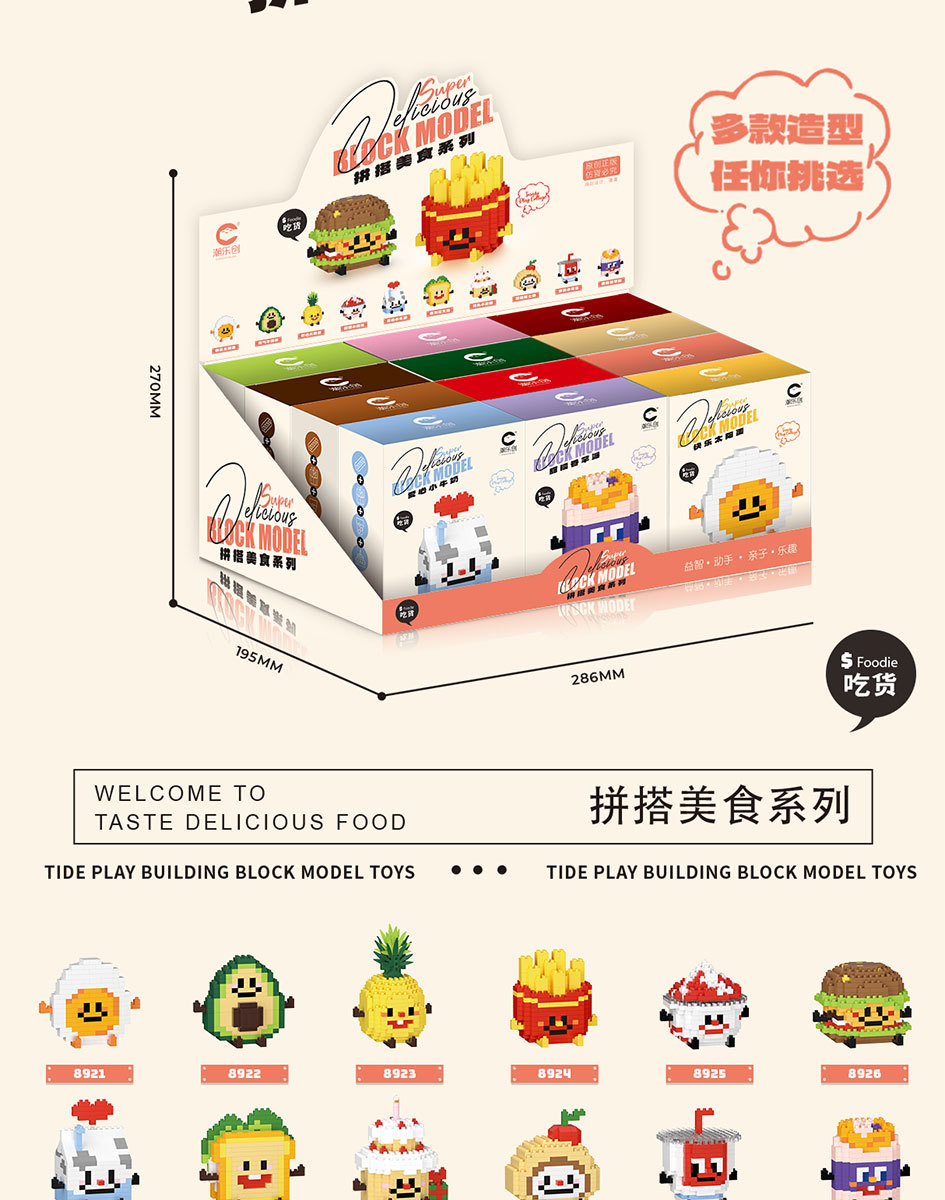 潮乐创8921-8932微小颗粒拼装积木玩具开心食玩薯条汉堡批发零售