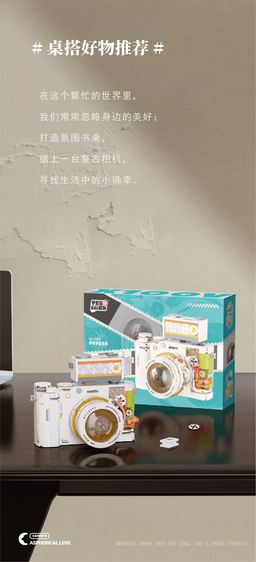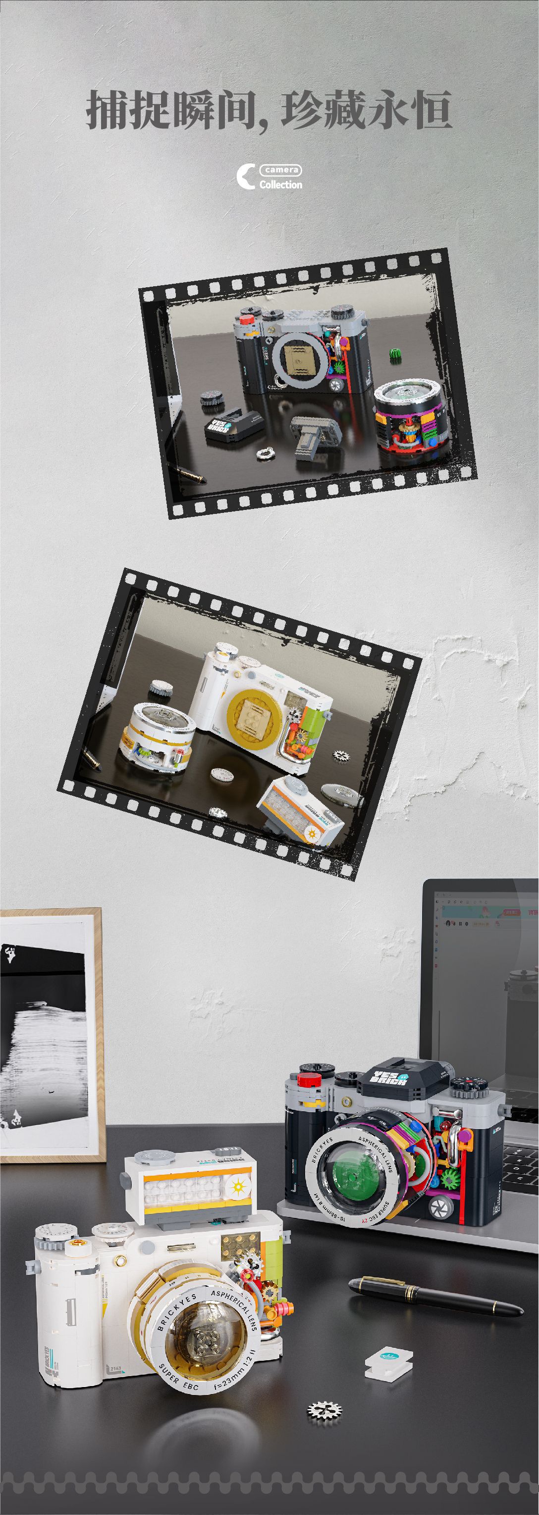 砖也新品2163-2164复古相机系列兼容乐高儿童益智拼装微颗粒积木