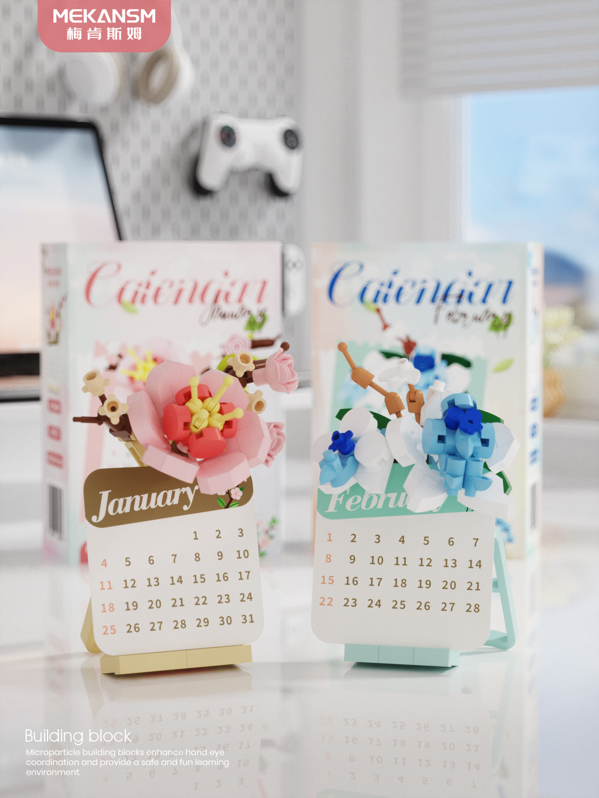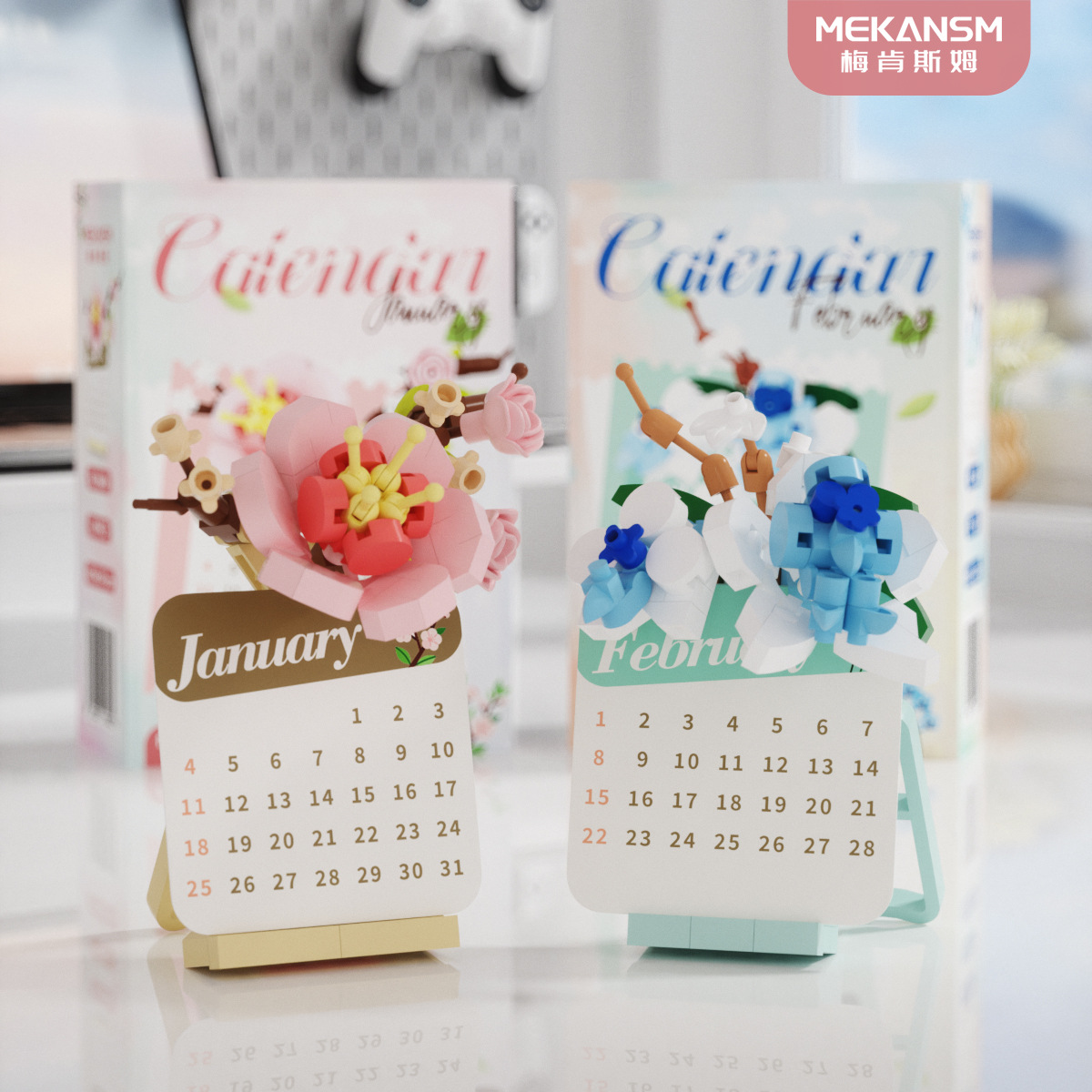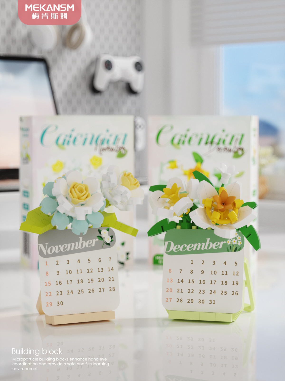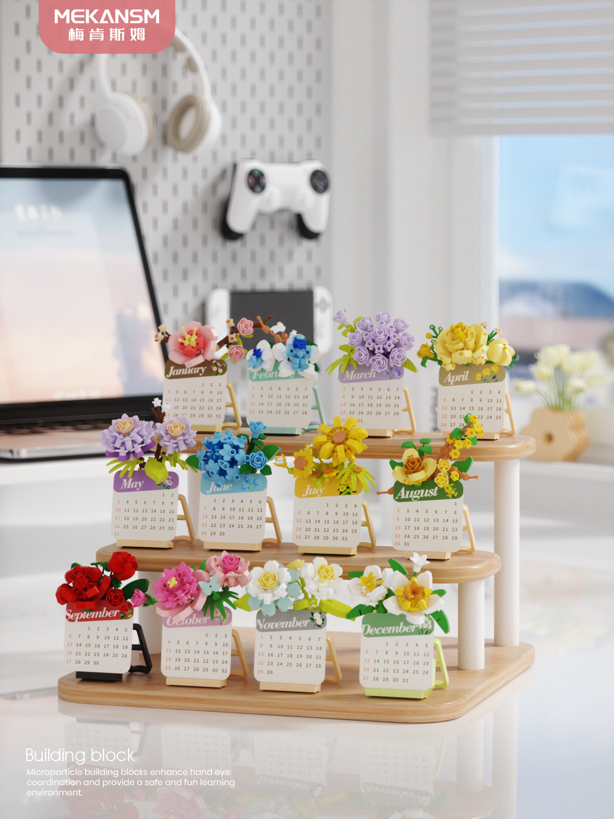 梅肯斯姆积木花万年历日历微颗粒玩具桌面摆件批发圣诞节礼物跨境