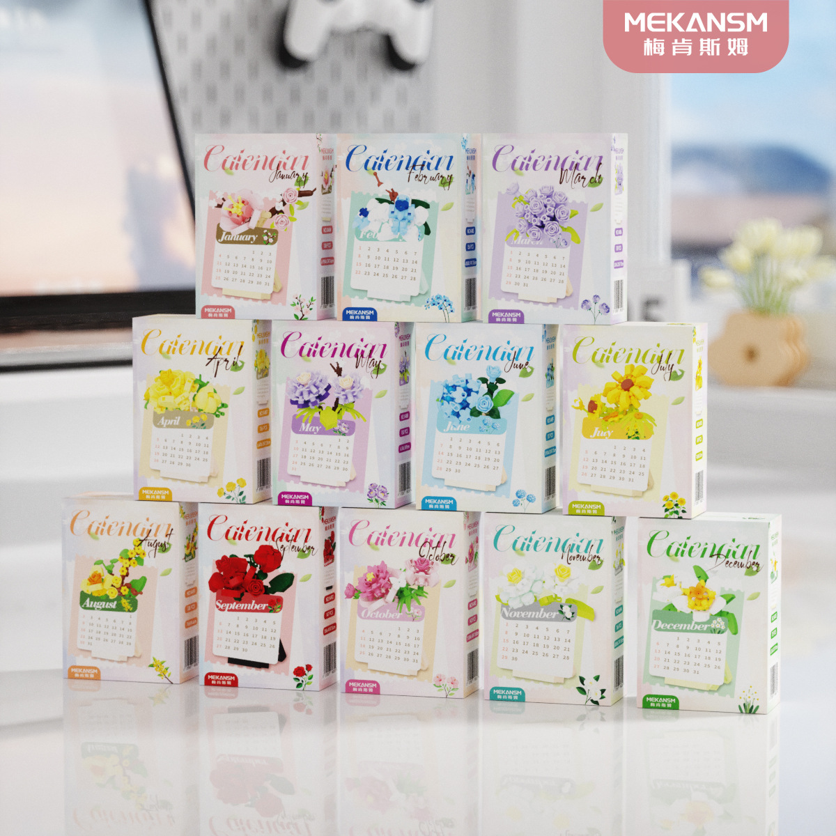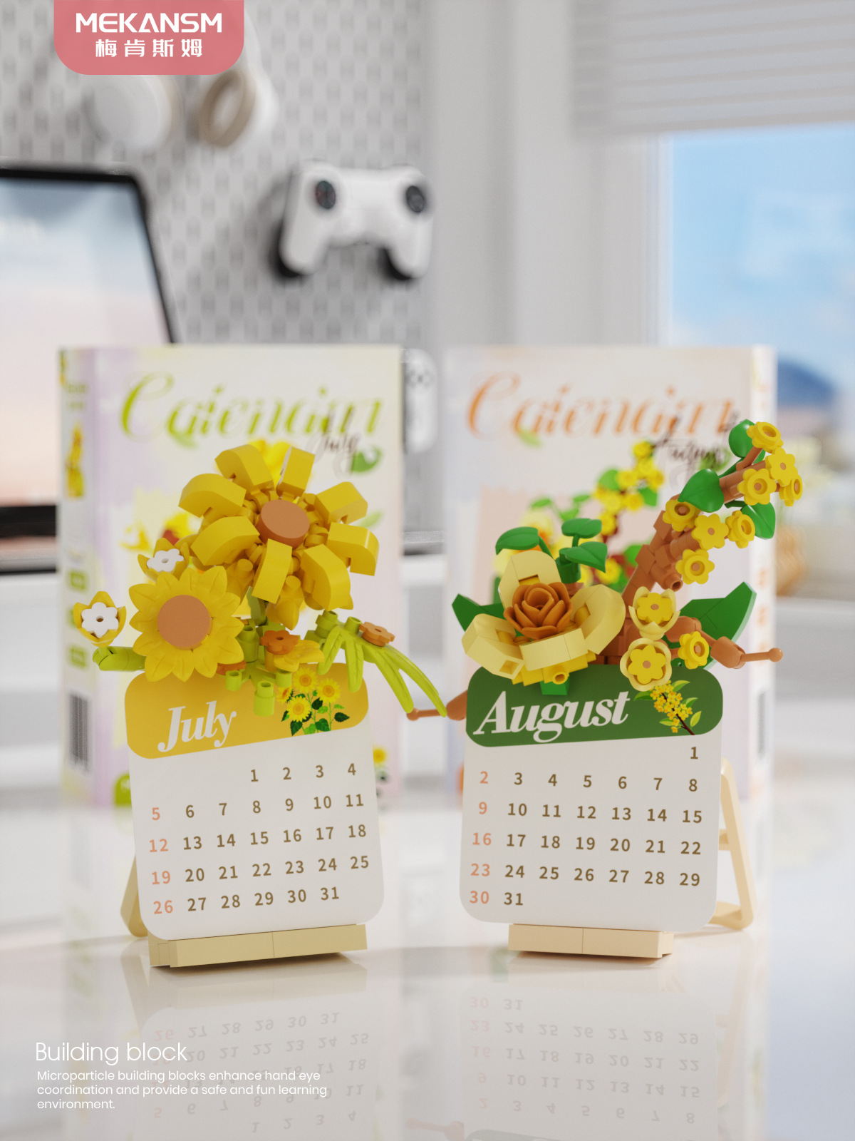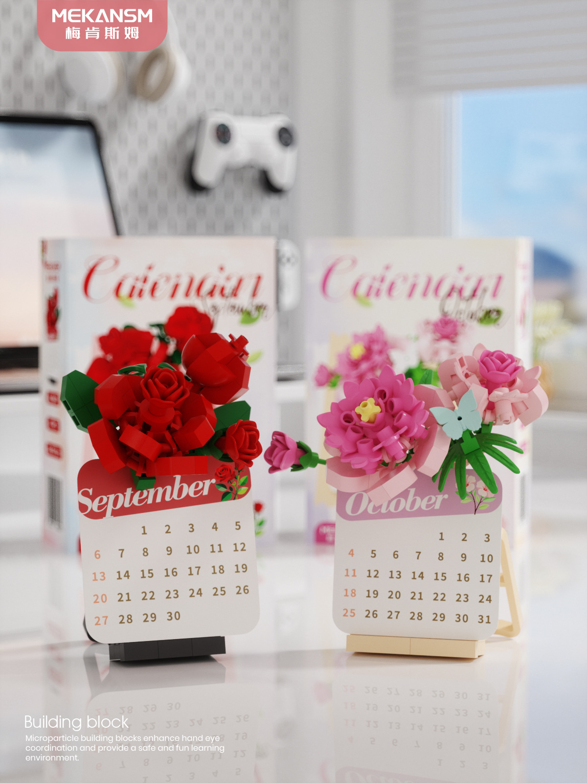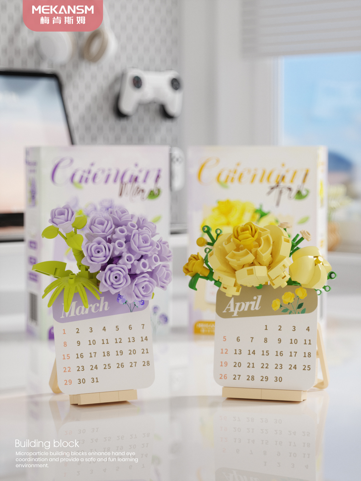 梅肯斯姆积木花万年历日历微颗粒玩具桌面摆件批发圣诞节礼物跨境