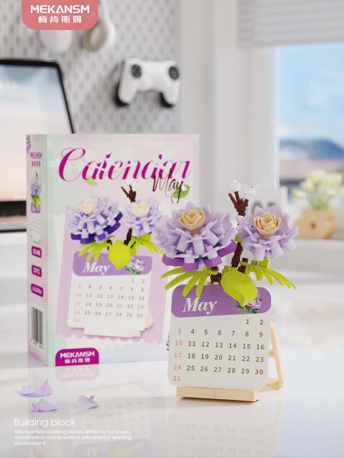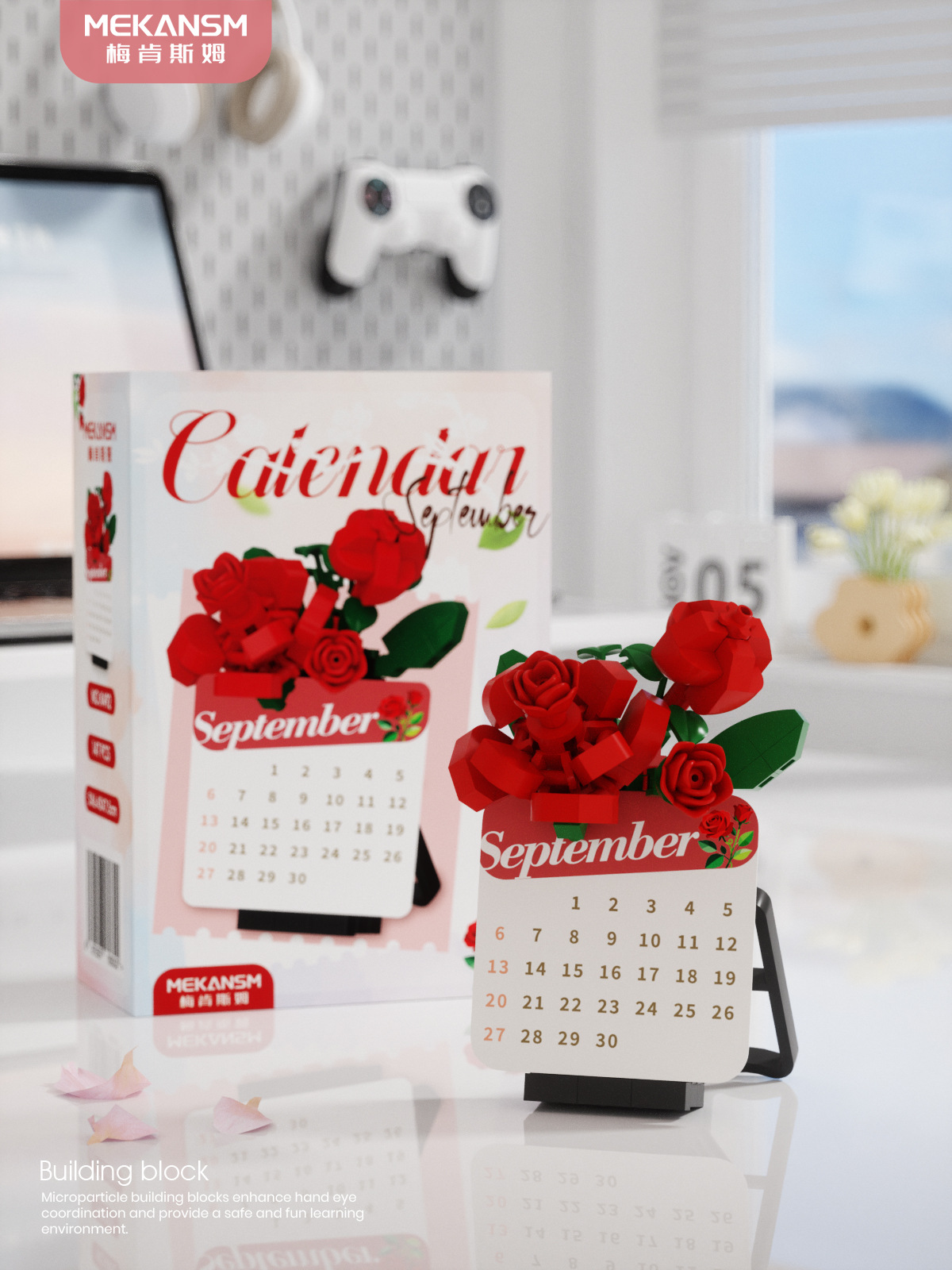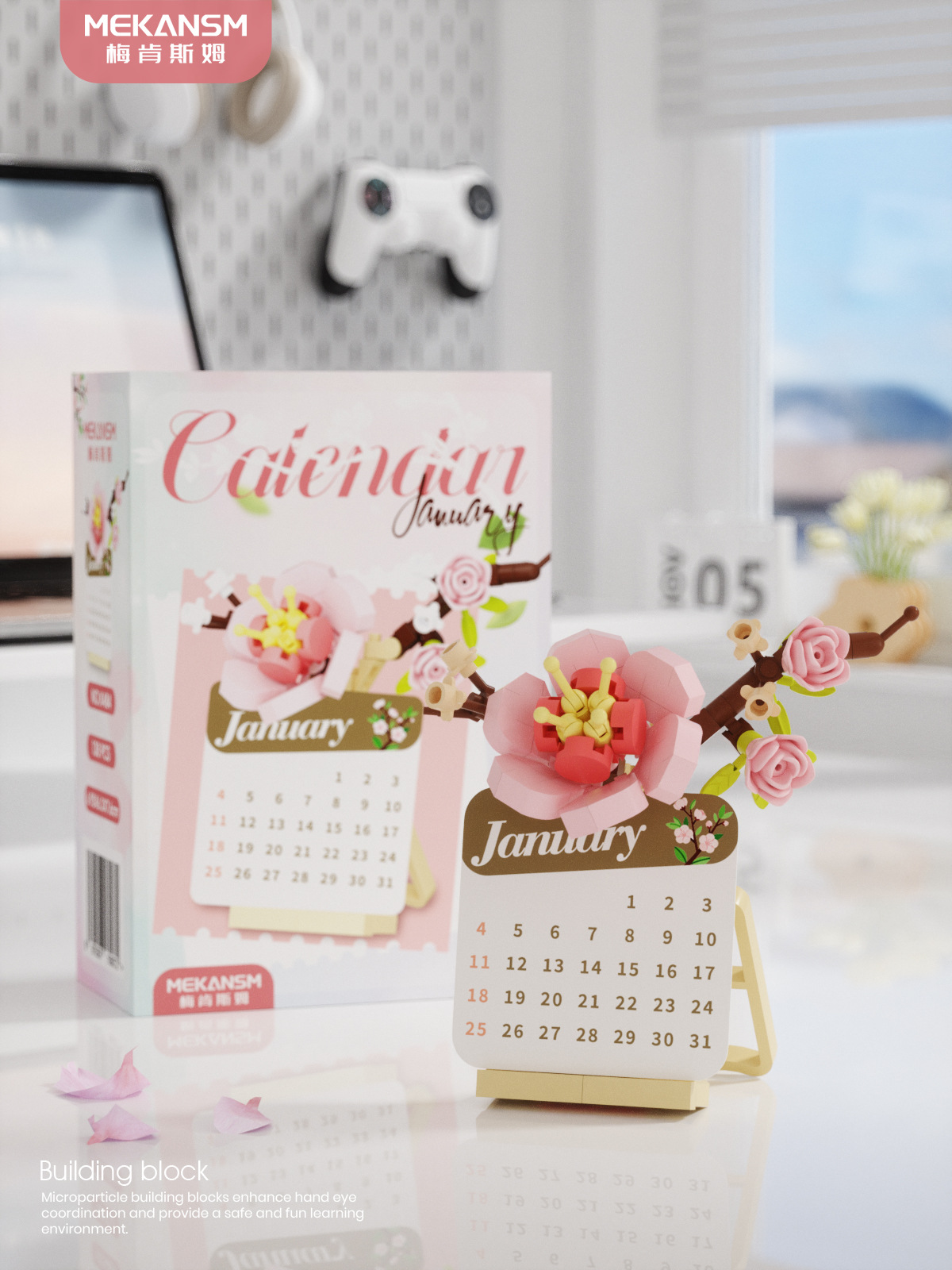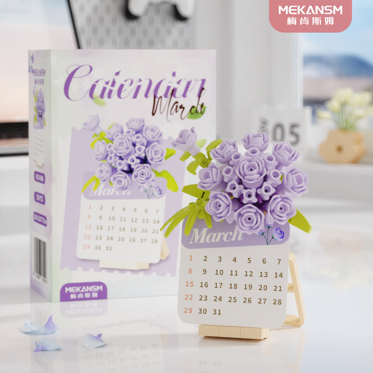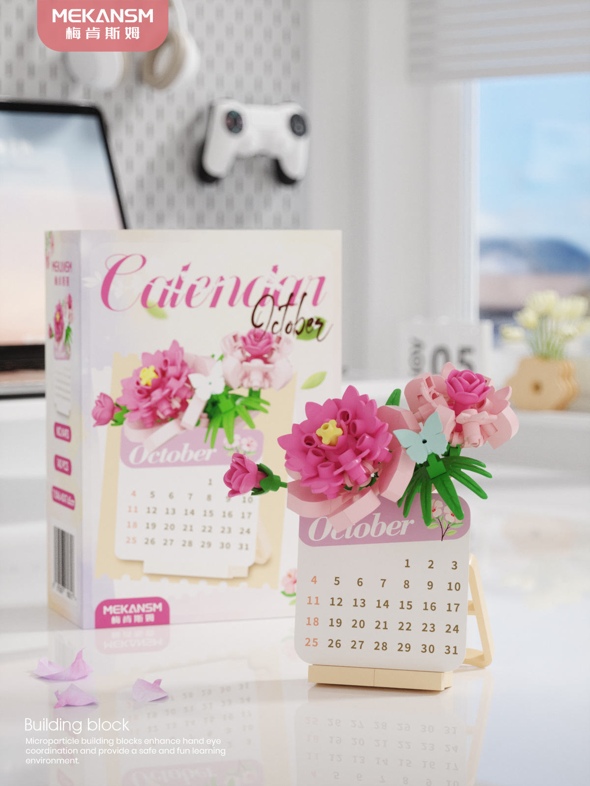 梅肯斯姆积木花万年历日历微颗粒玩具桌面摆件批发圣诞节礼物跨境