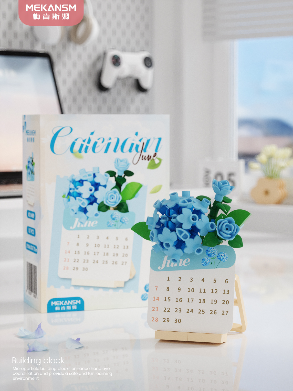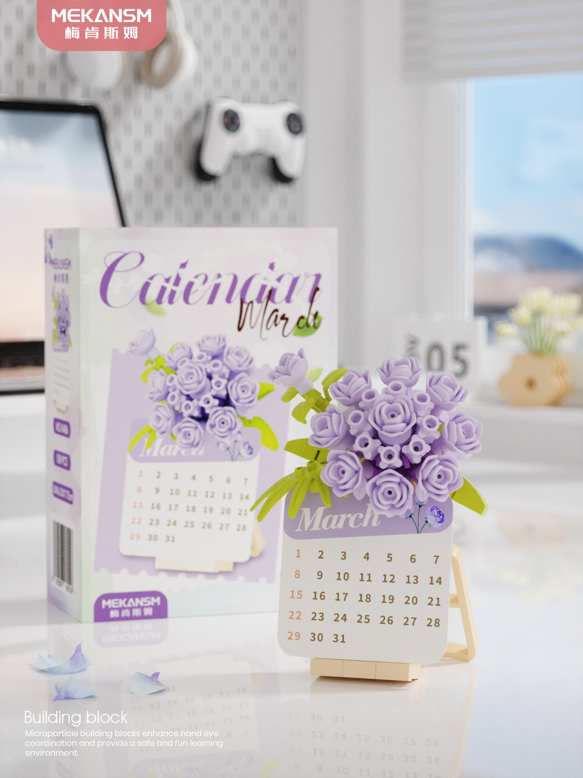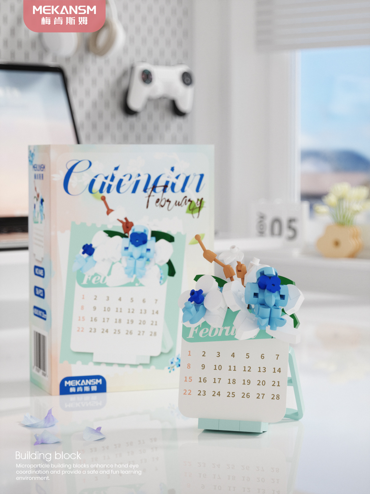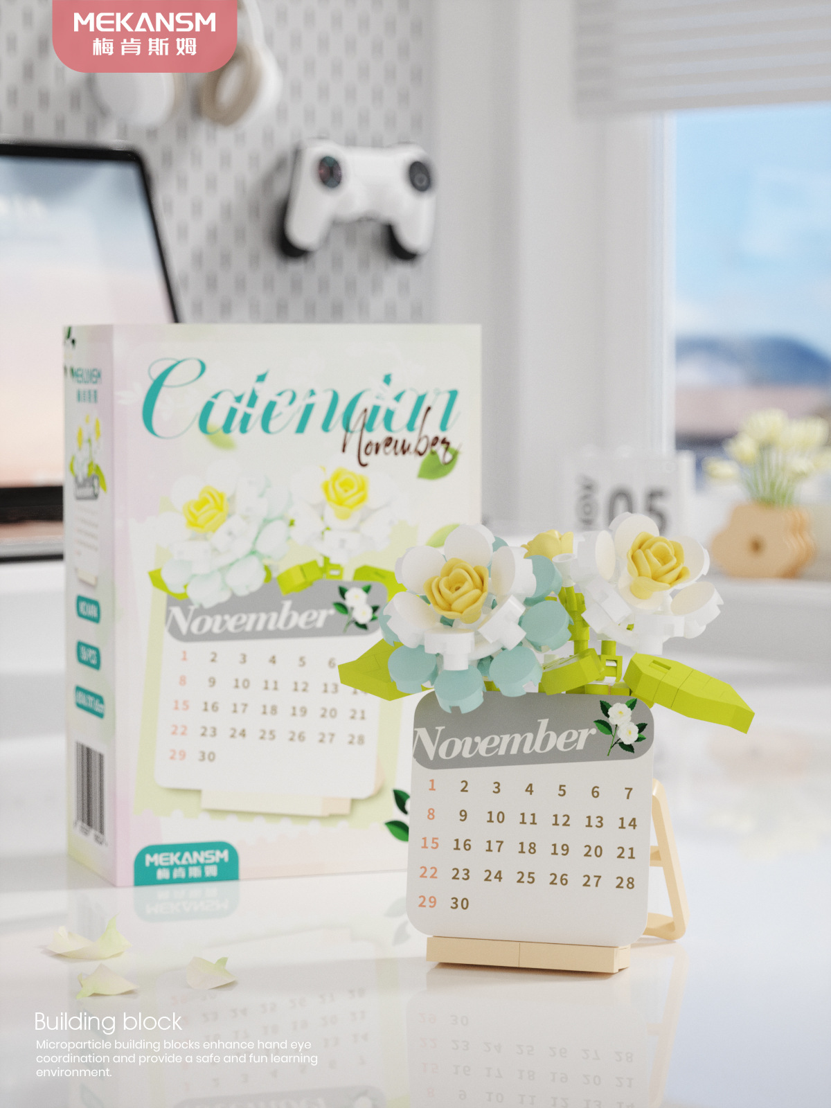 梅肯斯姆积木花万年历日历微颗粒玩具桌面摆件批发圣诞节礼物跨境