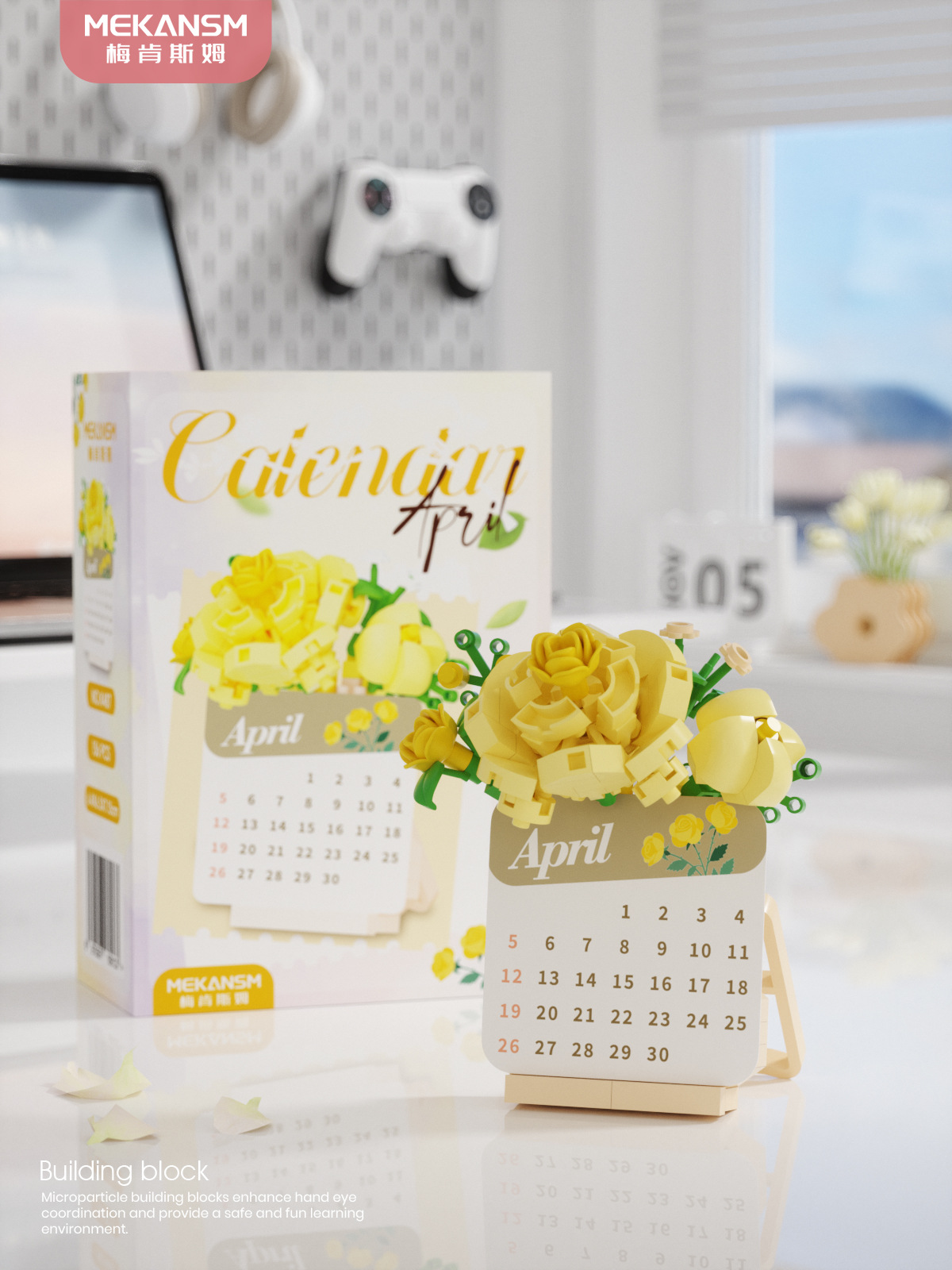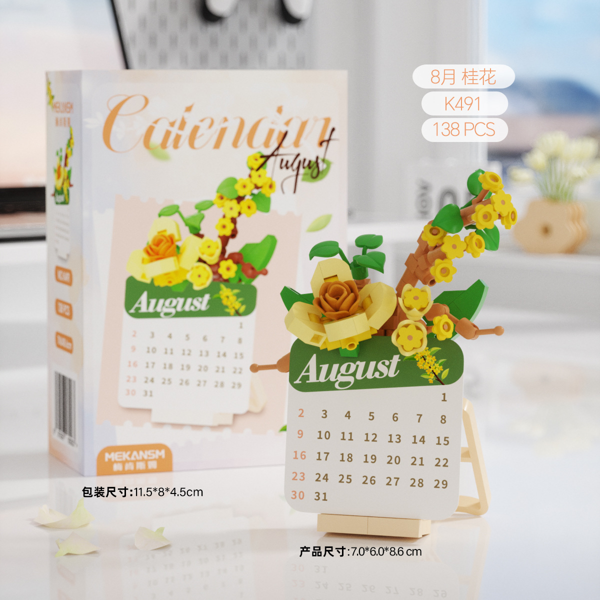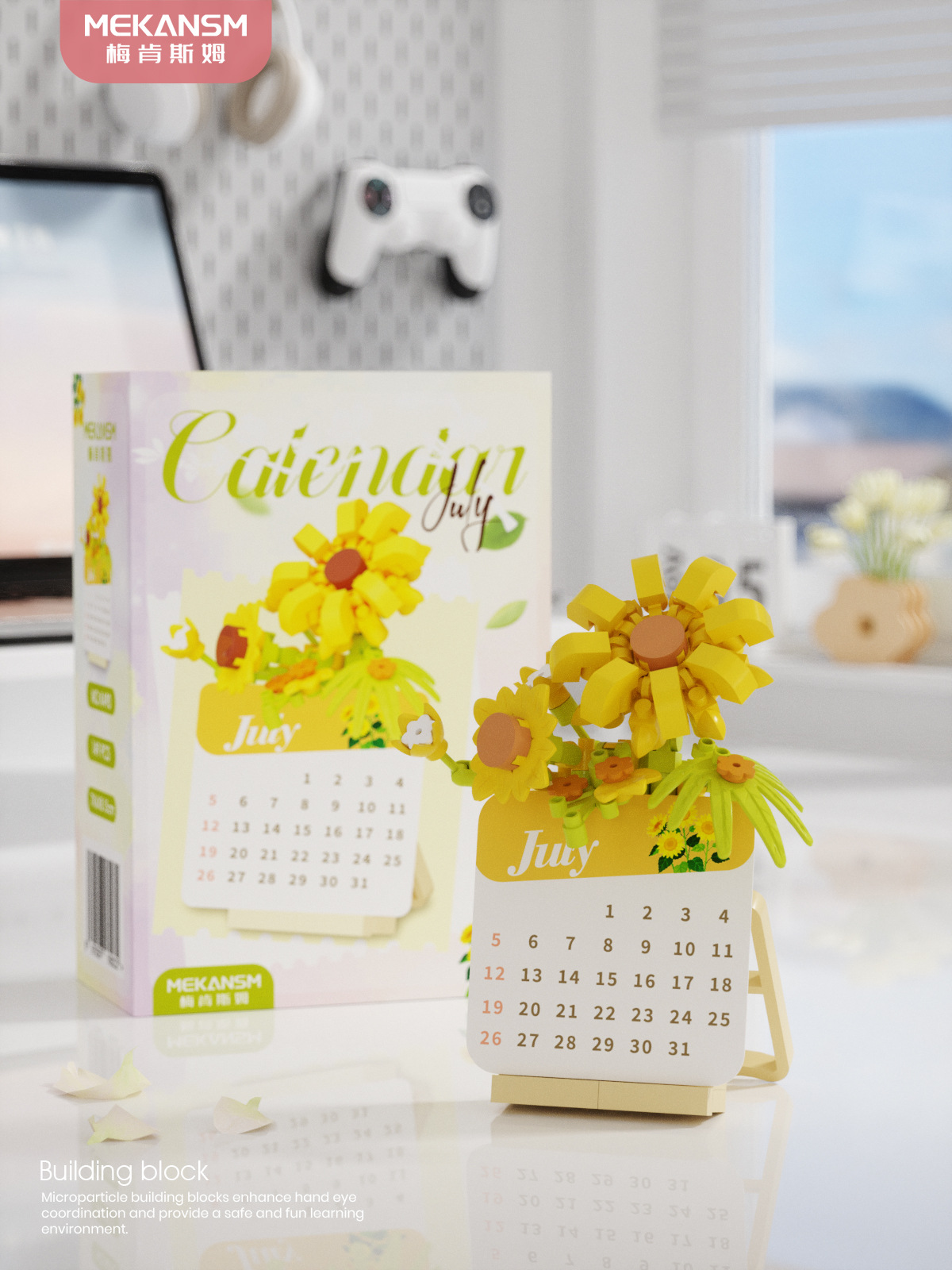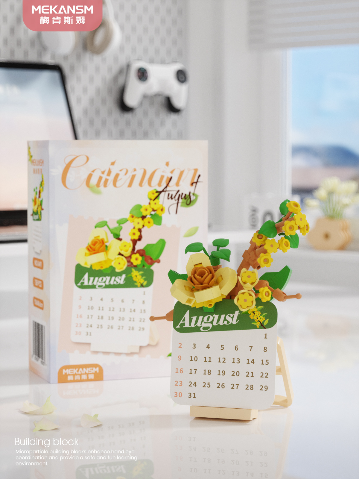 梅肯斯姆积木花万年历日历微颗粒玩具桌面摆件批发圣诞节礼物跨境