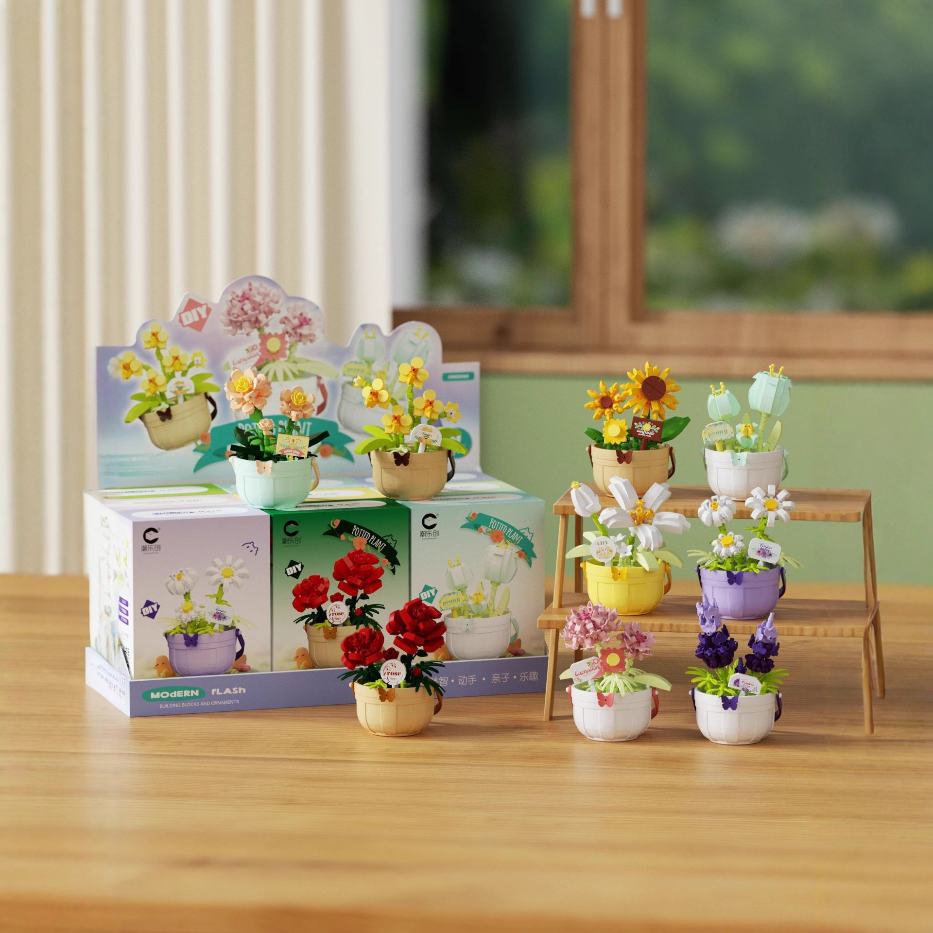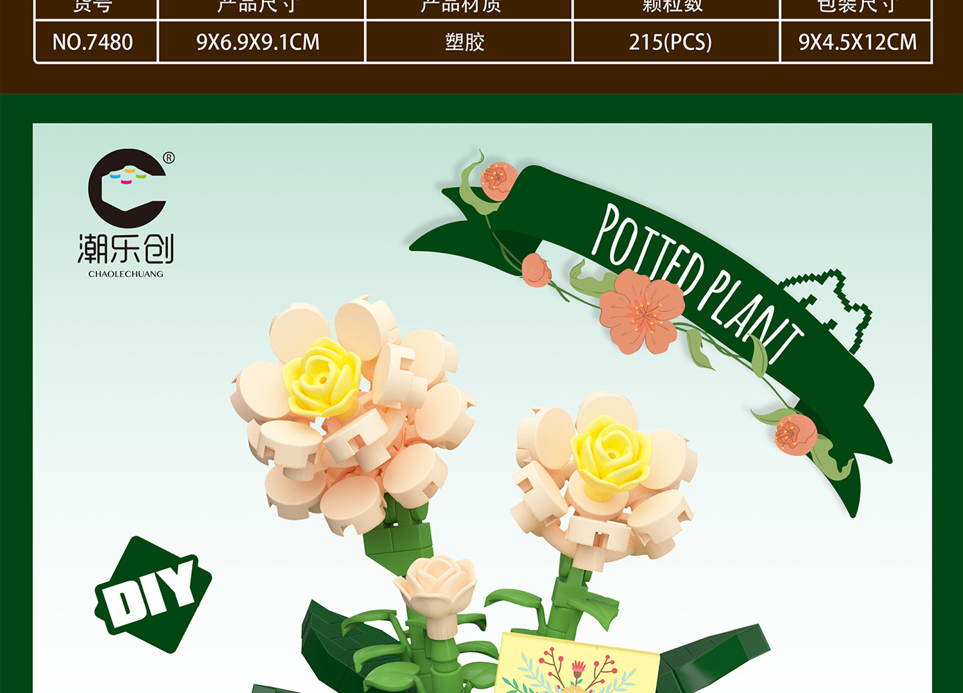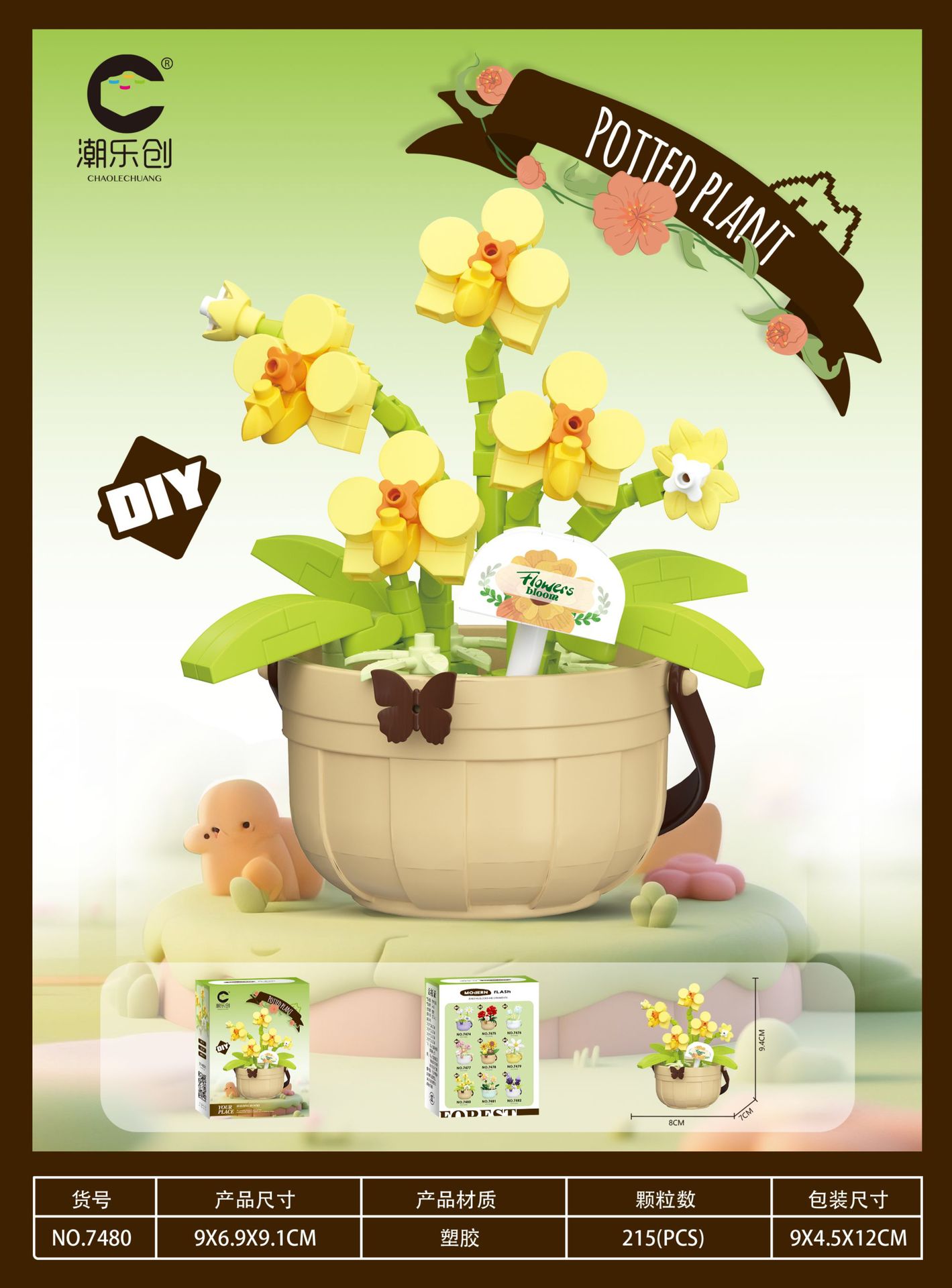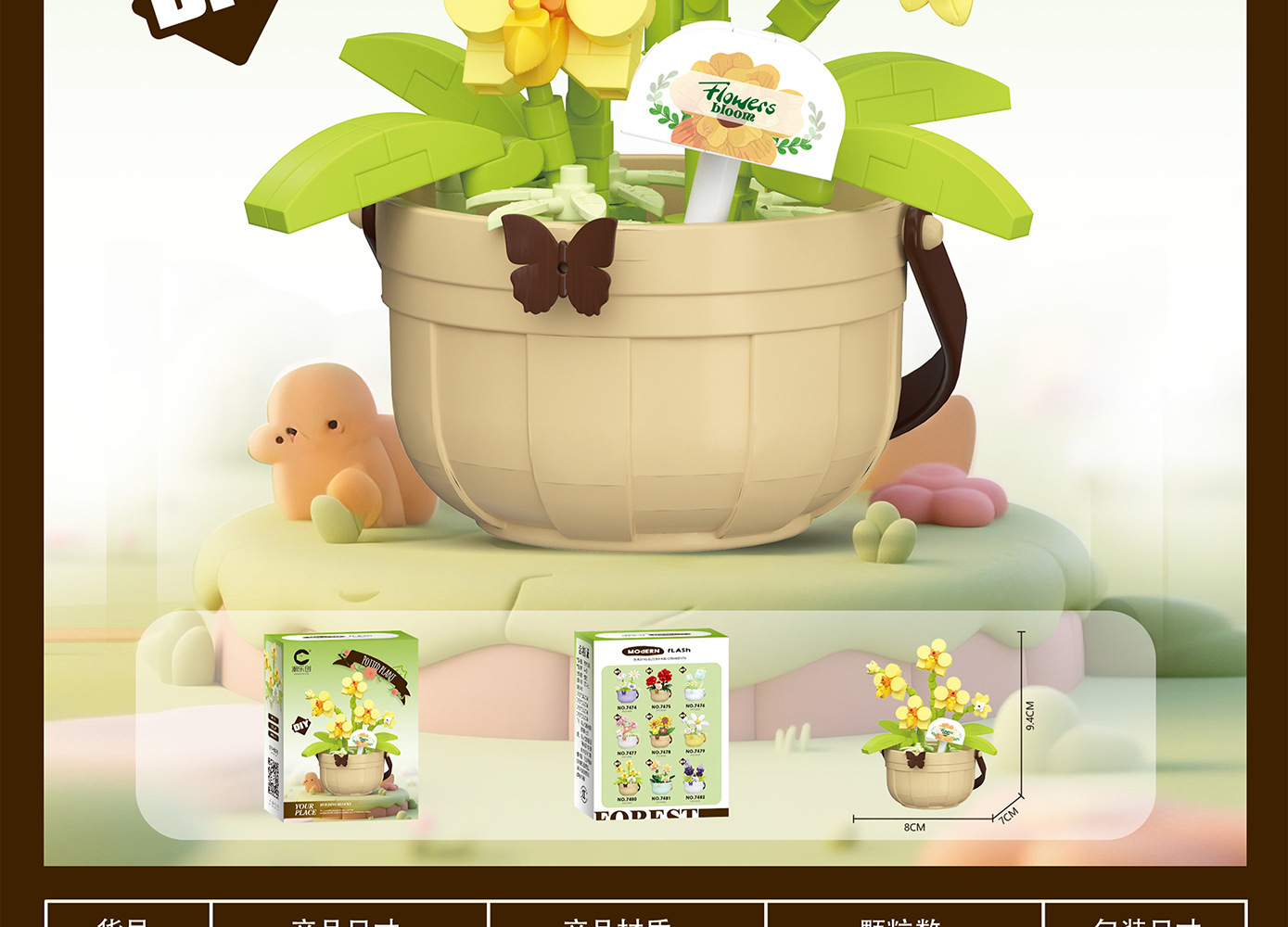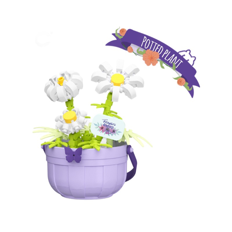 潮乐创微小颗粒拼装积木玩具7474-7482花篮物语摆件跨境批发代发