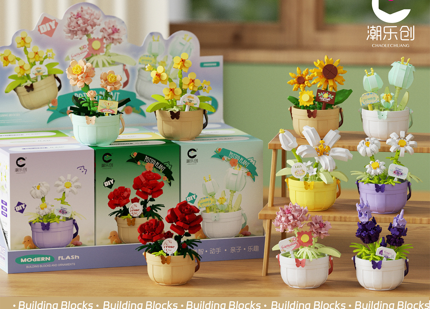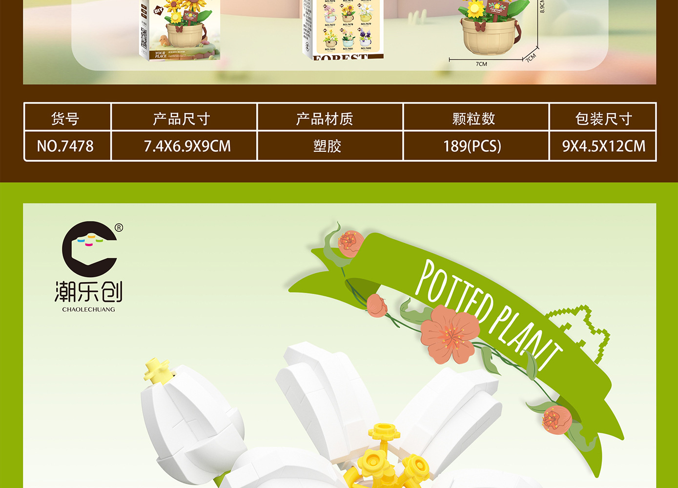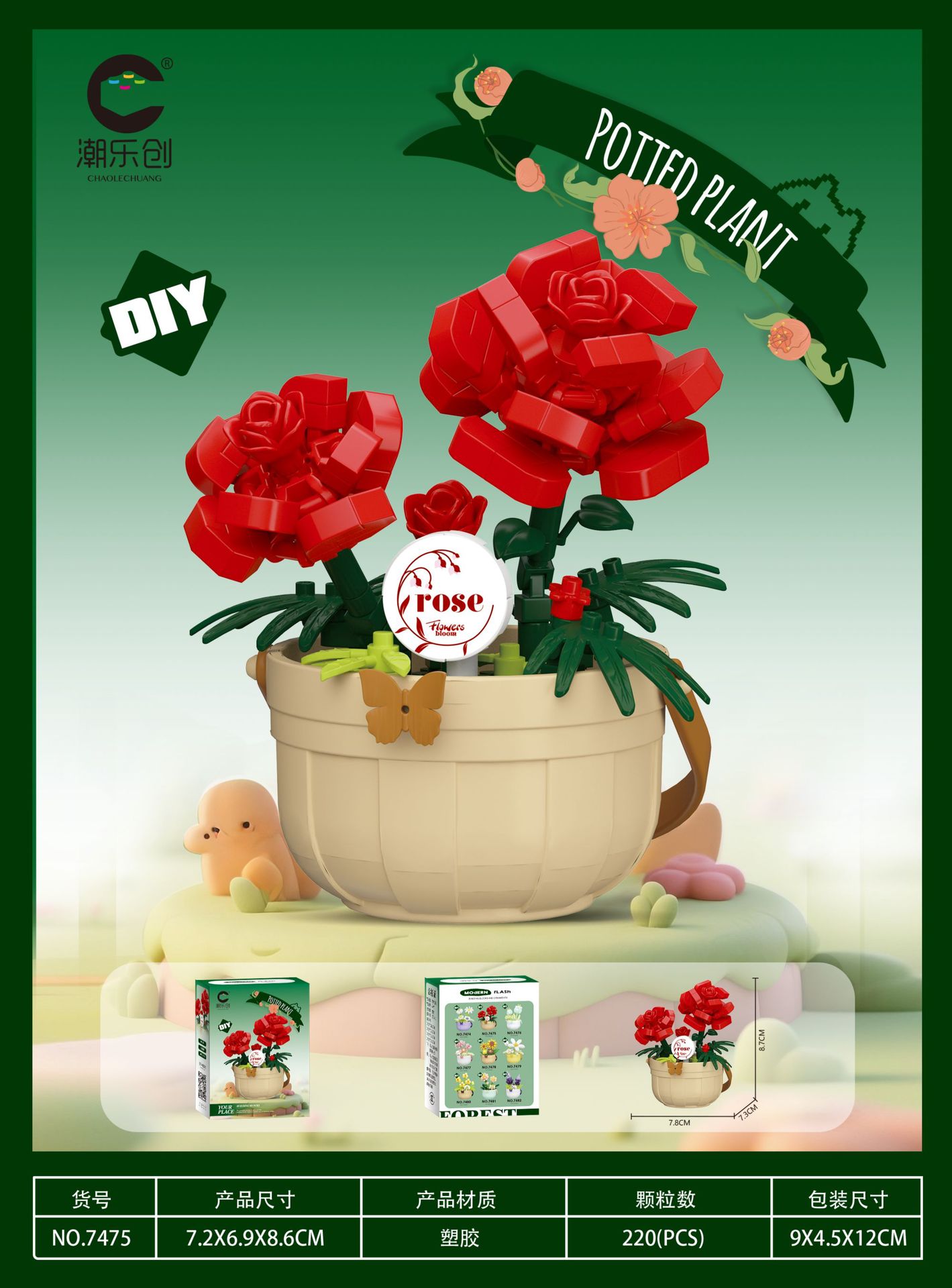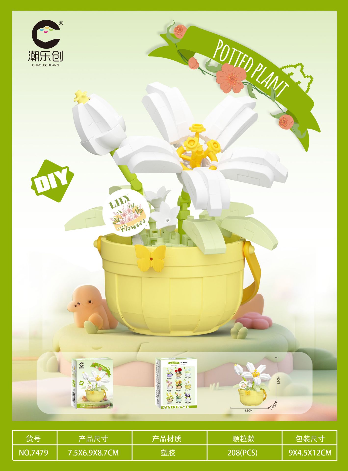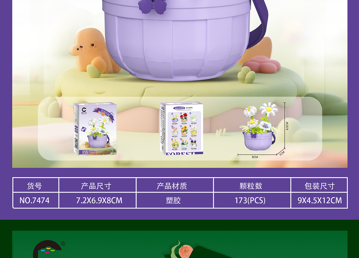 潮乐创微小颗粒拼装积木玩具7474-7482花篮物语摆件跨境批发代发