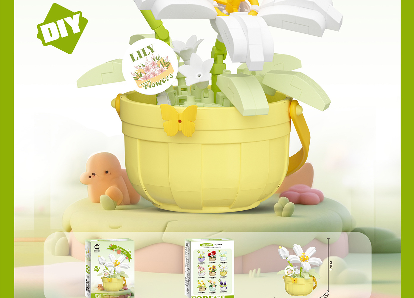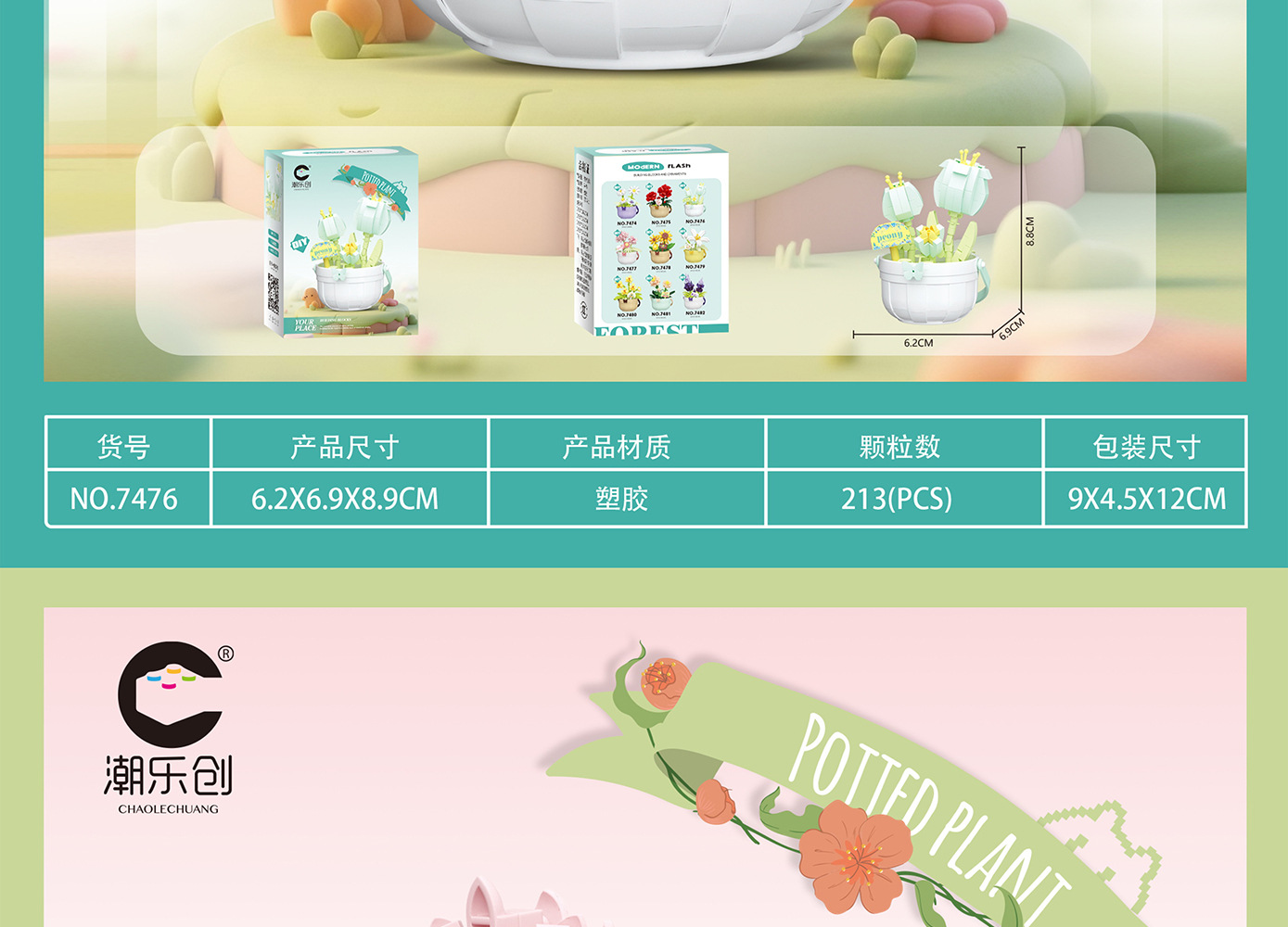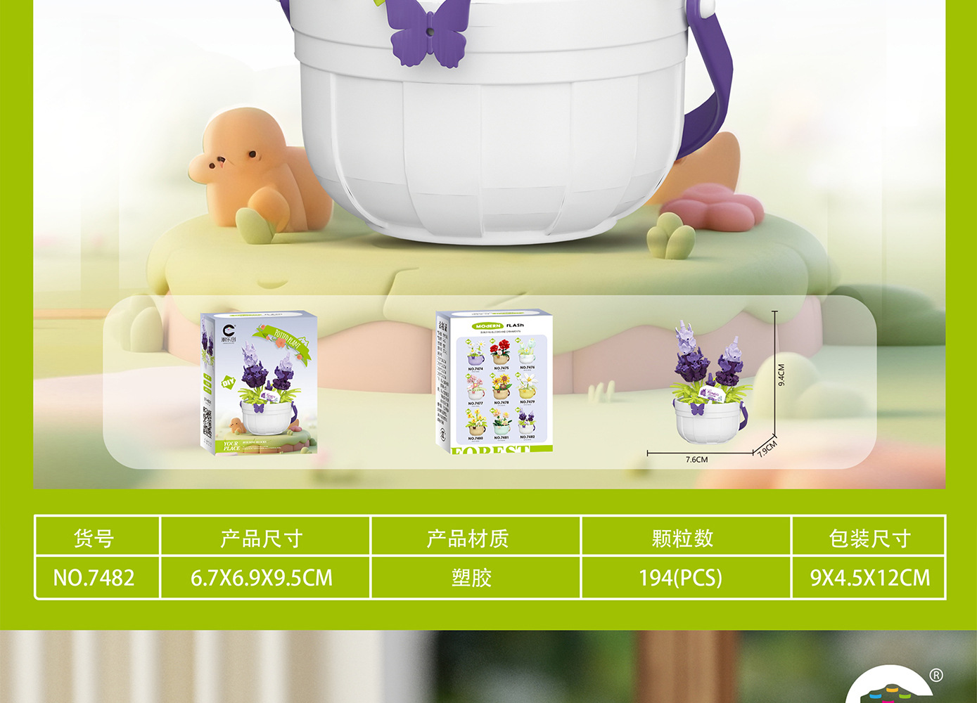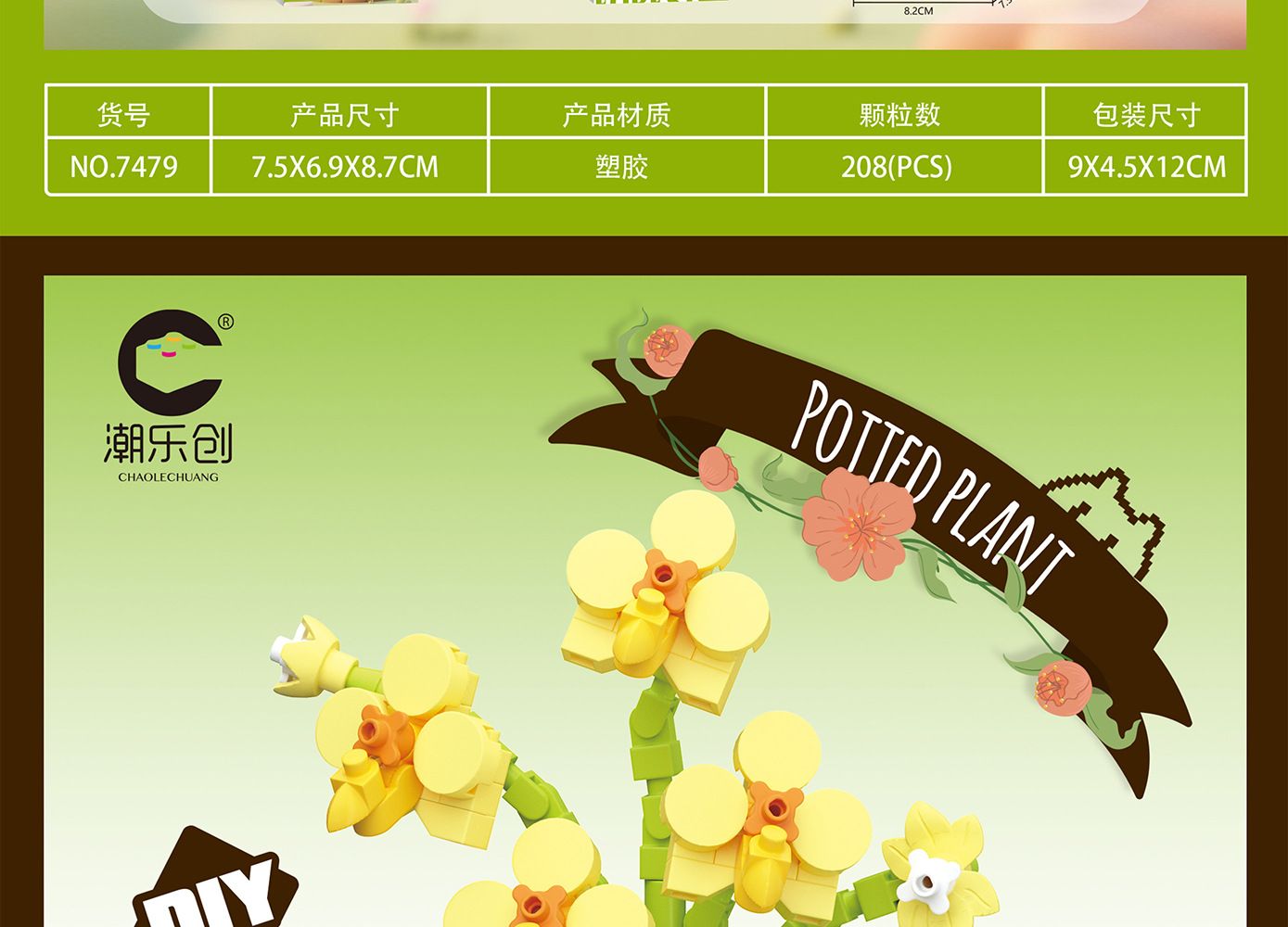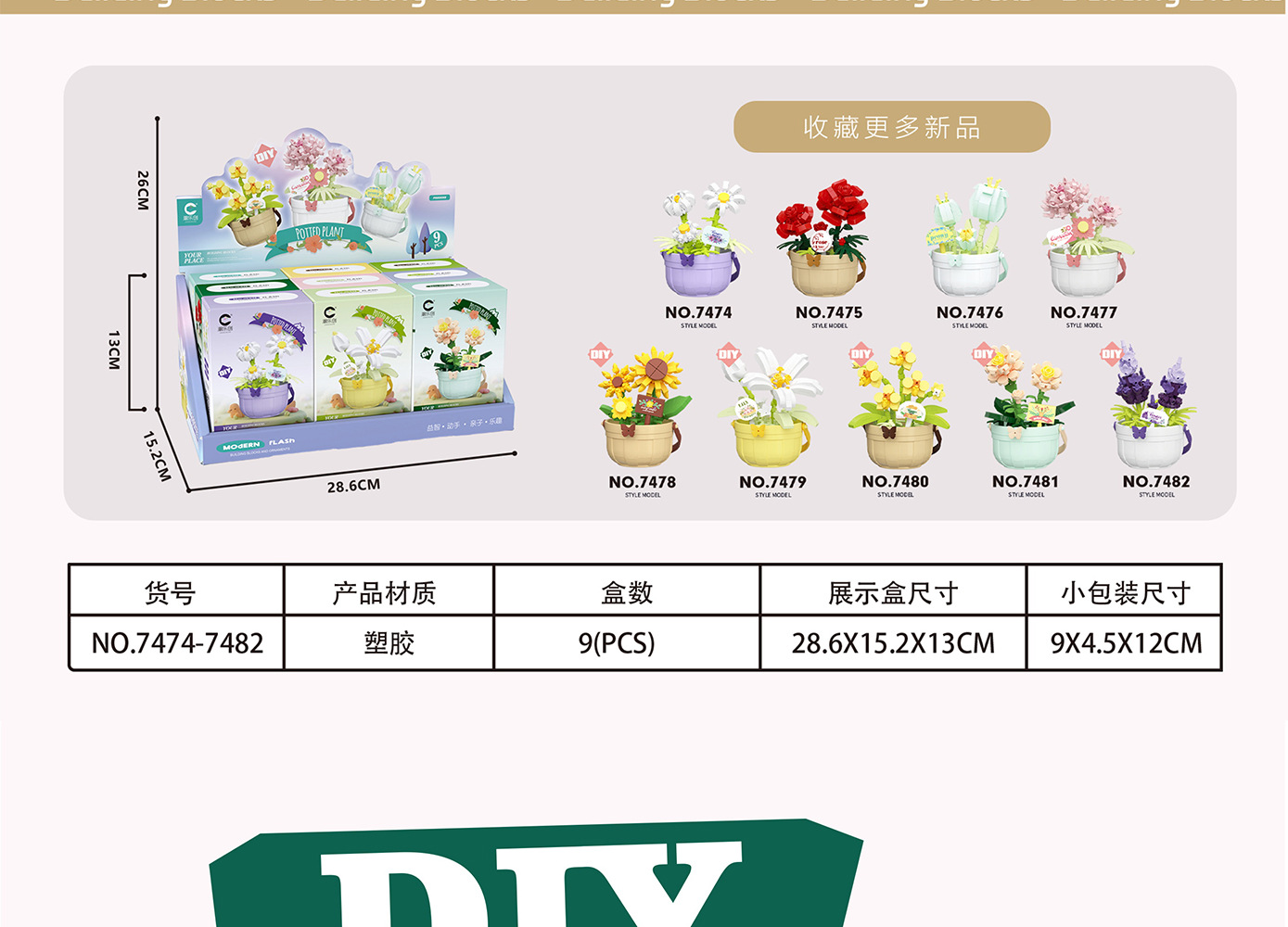 潮乐创微小颗粒拼装积木玩具7474-7482花篮物语摆件跨境批发代发